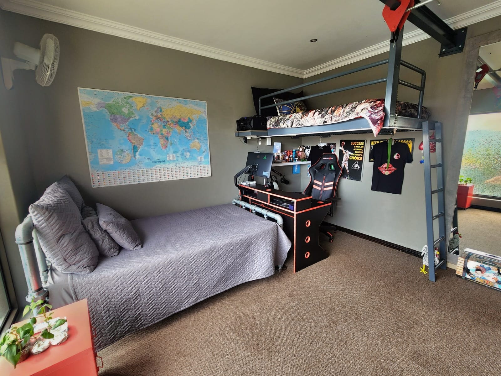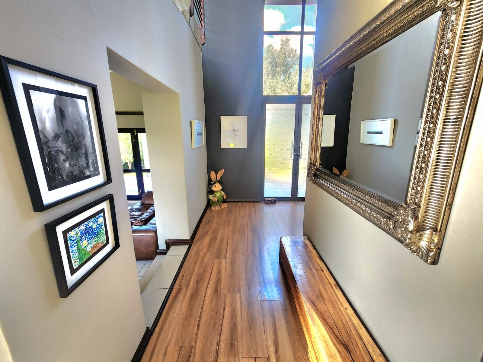 Discover your dream home in the luxurious and secure Aquavista Mountain Estate. This stunning 5-bedroom, 3.5-bathroom house is perfect for families and those who love to entertain. The property boasts modern finishes throughout, enhancing its elegance and sophistication. As you step inside, you're greeted by a grand entrance hall that sets the tone for the rest of the house. The yard is incredibly spacious, providing ample room for outdoor activities and relaxation. The house includes 2 double garages, offering plenty of space for vehicles and storage, as well as additional parking on the driveway for your guests. Enjoy the solar-heated pool all year round and host amazing gatherings in the outdoor braai room. The automated sprinkler system makes it easy to maintain the lush garden, while the in-ground trampoline provides fun for kids and adults alike. The master bedroom is a true retreat, complete with a balcony, walk-in dressing room, and closet. Take in the breathtaking dam views from the upstairs rooms. Within the estate, you can enjoy fishing and boat launching facilities, as well as a boathouse and picnic area for leisurely activities. Don't miss out on this exceptional property – contact us today to schedule a viewing and make this dream home yours! Solar system not include in price, but the owners is open for negotiation.