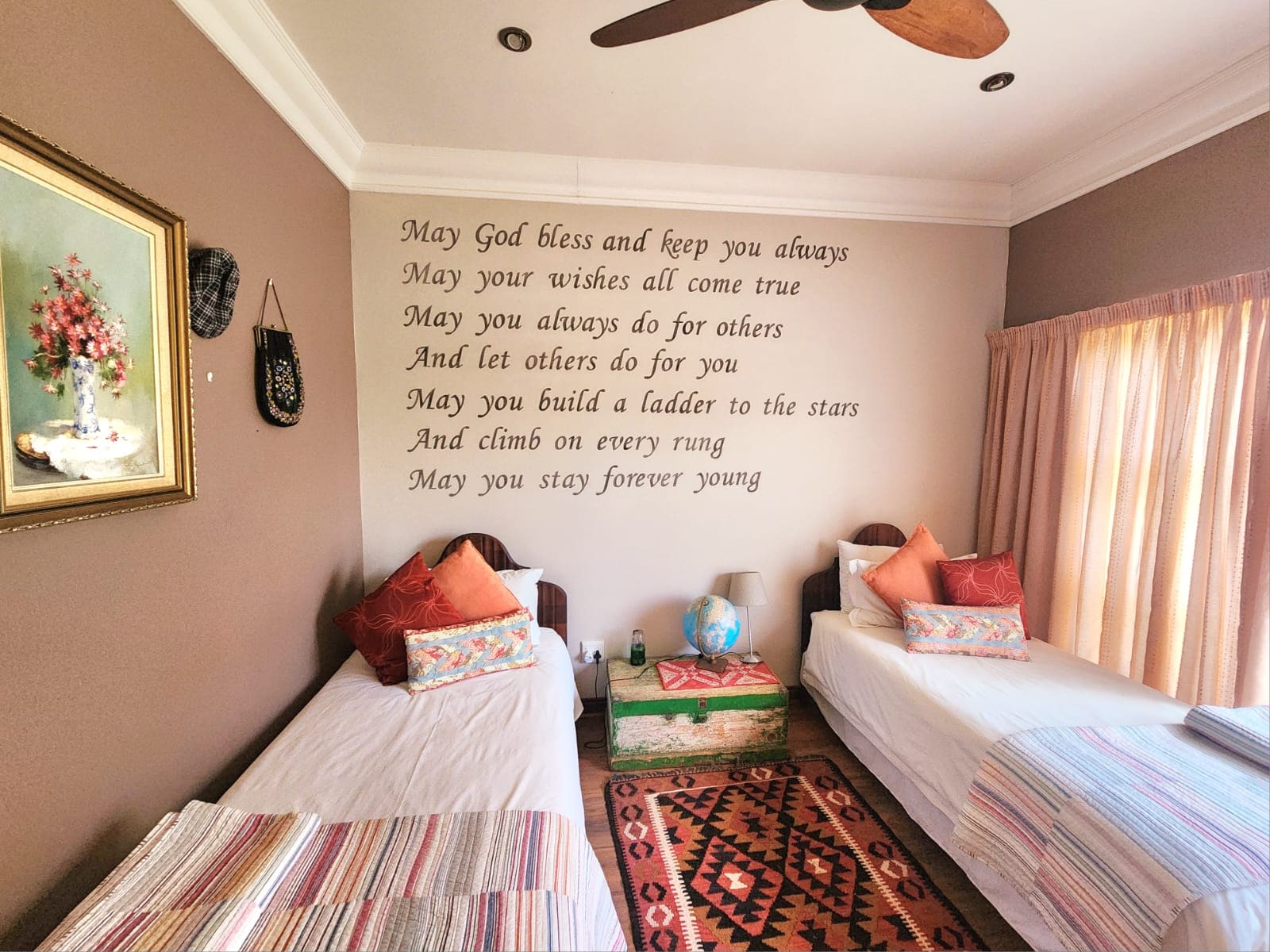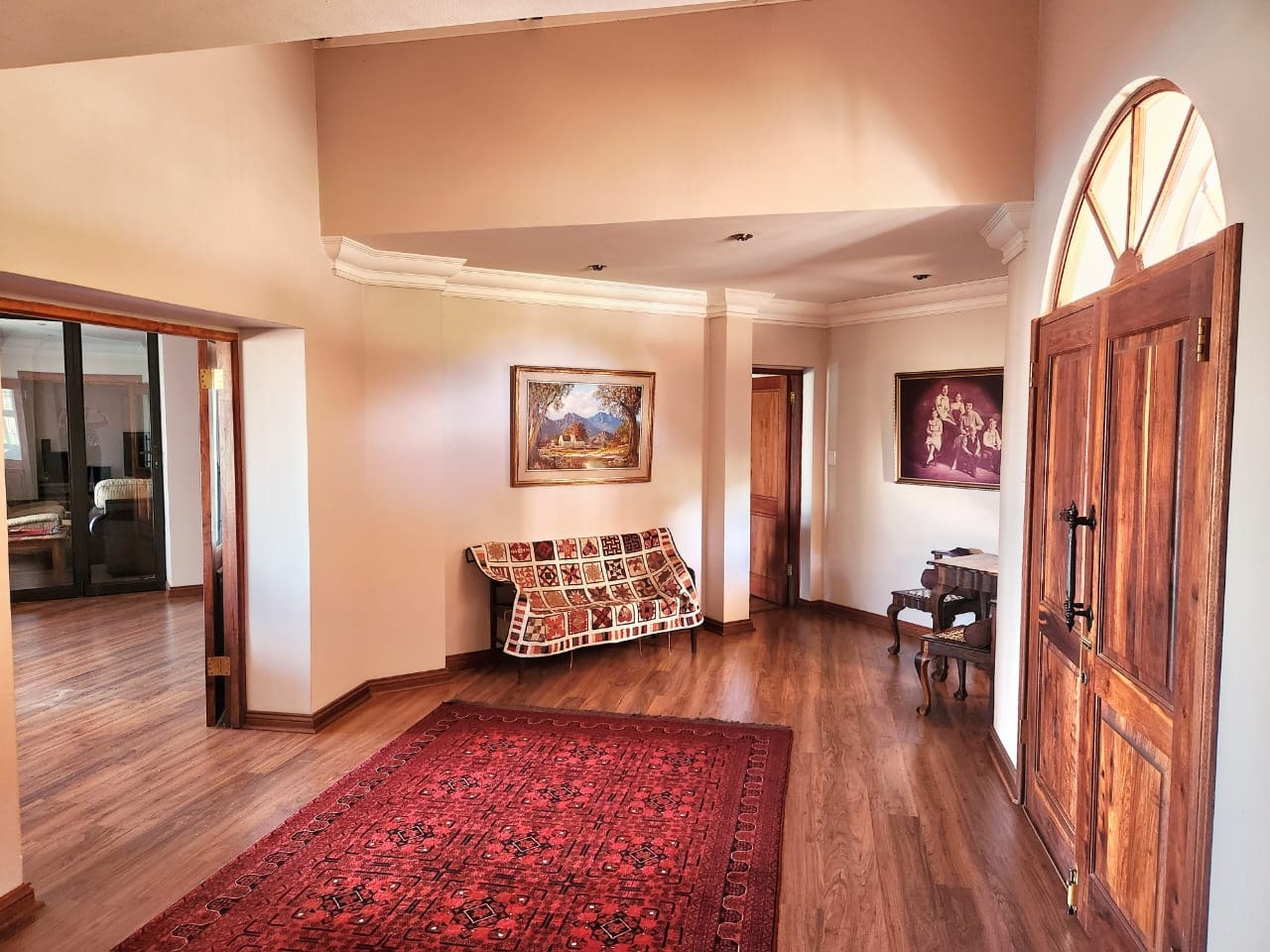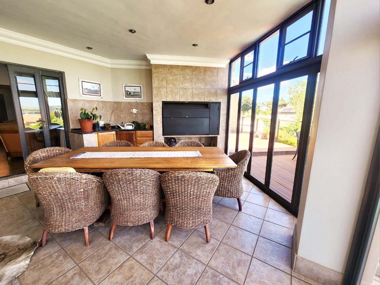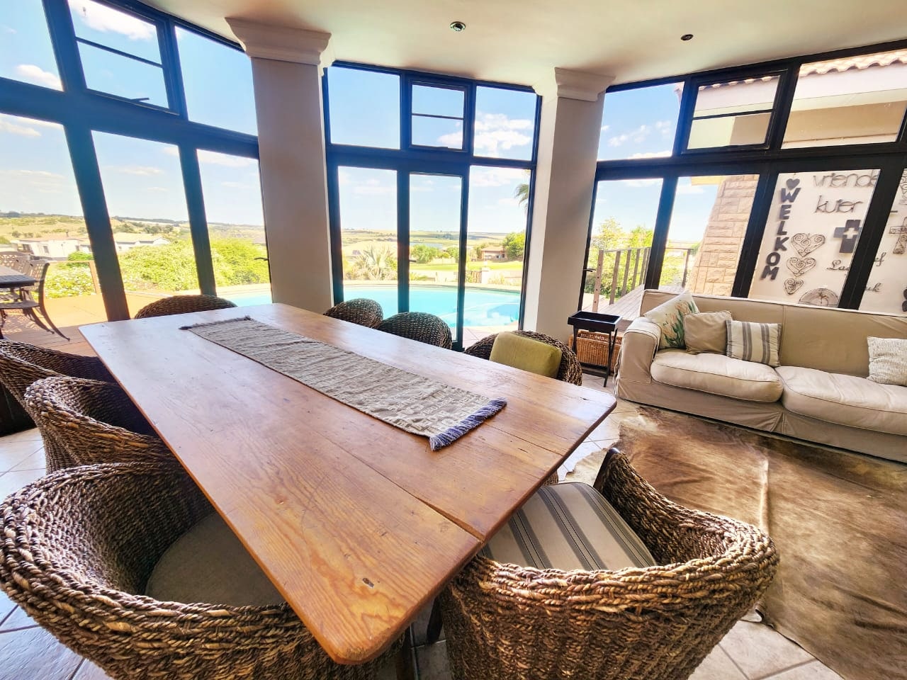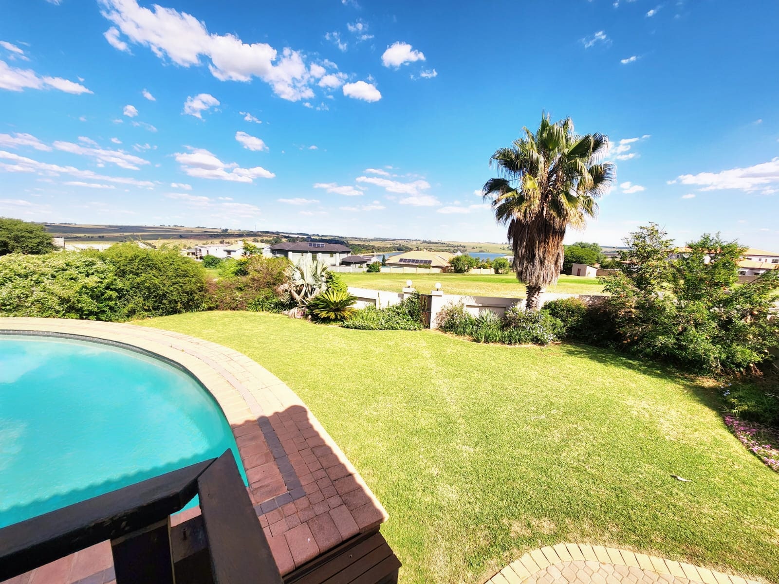 Discover this beautiful and spacious home in Aqua Vista Mountain Estate, perfect for a large family. Enjoy serene views, dam access, and boating adventures. The single-level layout offers an inviting entrance hall, interconnected living spaces, and privacy with two wings. One wing features the main en-suite bedroom and kitchen, while the other has three bedrooms. Additional highlights include underfloor heating, a fireplace, a study, a guest bathroom, and a swimming pool terrace. The home is equipped with solar geysers and an extra flatlet. Experience secure, country living with picturesque views at Aqua Vista Mountain Estate. Schedule your viewing today!