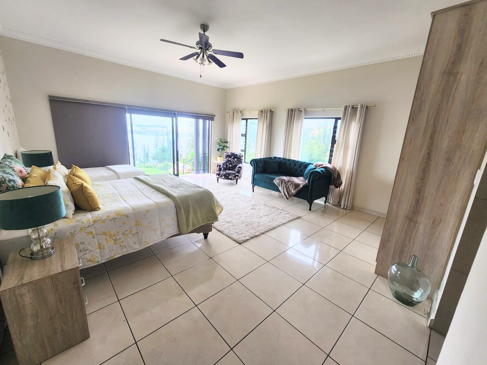 Each of the four bedrooms is en-suite and designed for privacy and relaxation. Elevated baths, stylish columns, and private balconies offer a touch of luxury, while the dam views add a sense of calm and connection to nature. Outdoors, the sparkling pool and private super tube bring fun and flair to the property—perfect for families or guests who enjoy a playful twist on luxury.