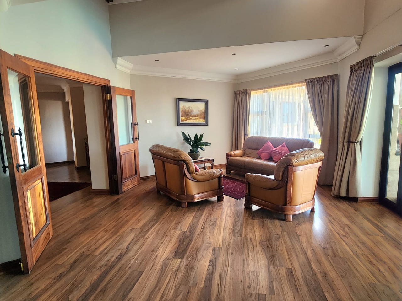 Discover this beautiful and spacious home in Aqua Vista Mountain Estate, perfect for a large family. Enjoy serene views, dam access, and boating adventures. The single-level layout offers an inviting entrance hall, interconnected living spaces, and privacy with two wings. One wing features the main en-suite bedroom and kitchen, while the other has three bedrooms. Additional highlights include underfloor heating, a fireplace, a study, a guest bathroom, and a swimming pool terrace. The home is equipped with solar geysers and an extra flatlet. Experience secure, country living with picturesque views at Aqua Vista Mountain Estate. Schedule your viewing today!