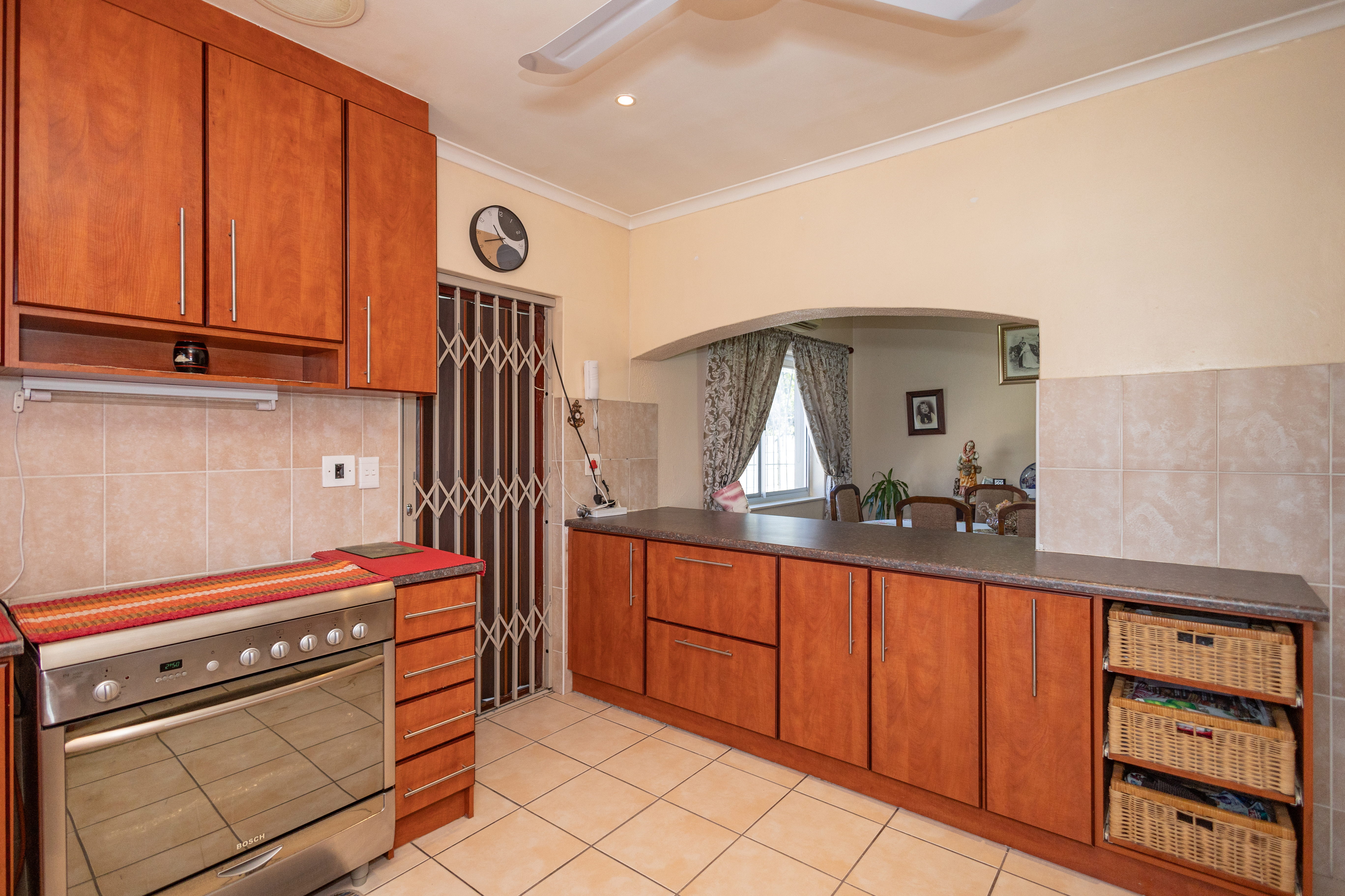 Step into a spacious living room ideal for relaxing or welcoming guests. The separate dining room creates a natural flow for enjoying family dinners. The kitchen is functional and comes complete with a gas installation for the stove, making cooking convenient even during load-shedding.
