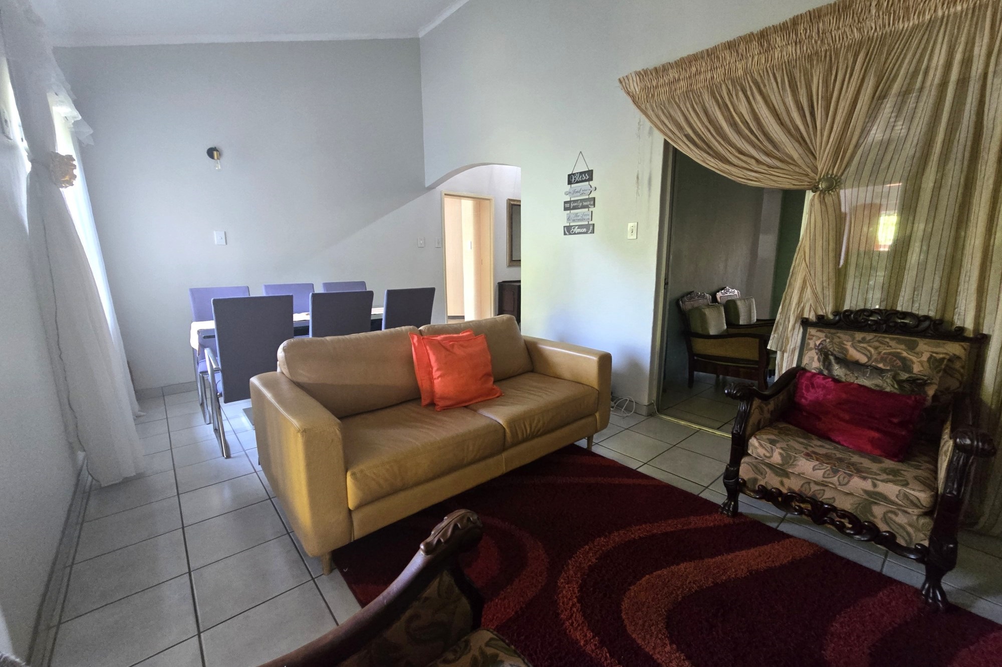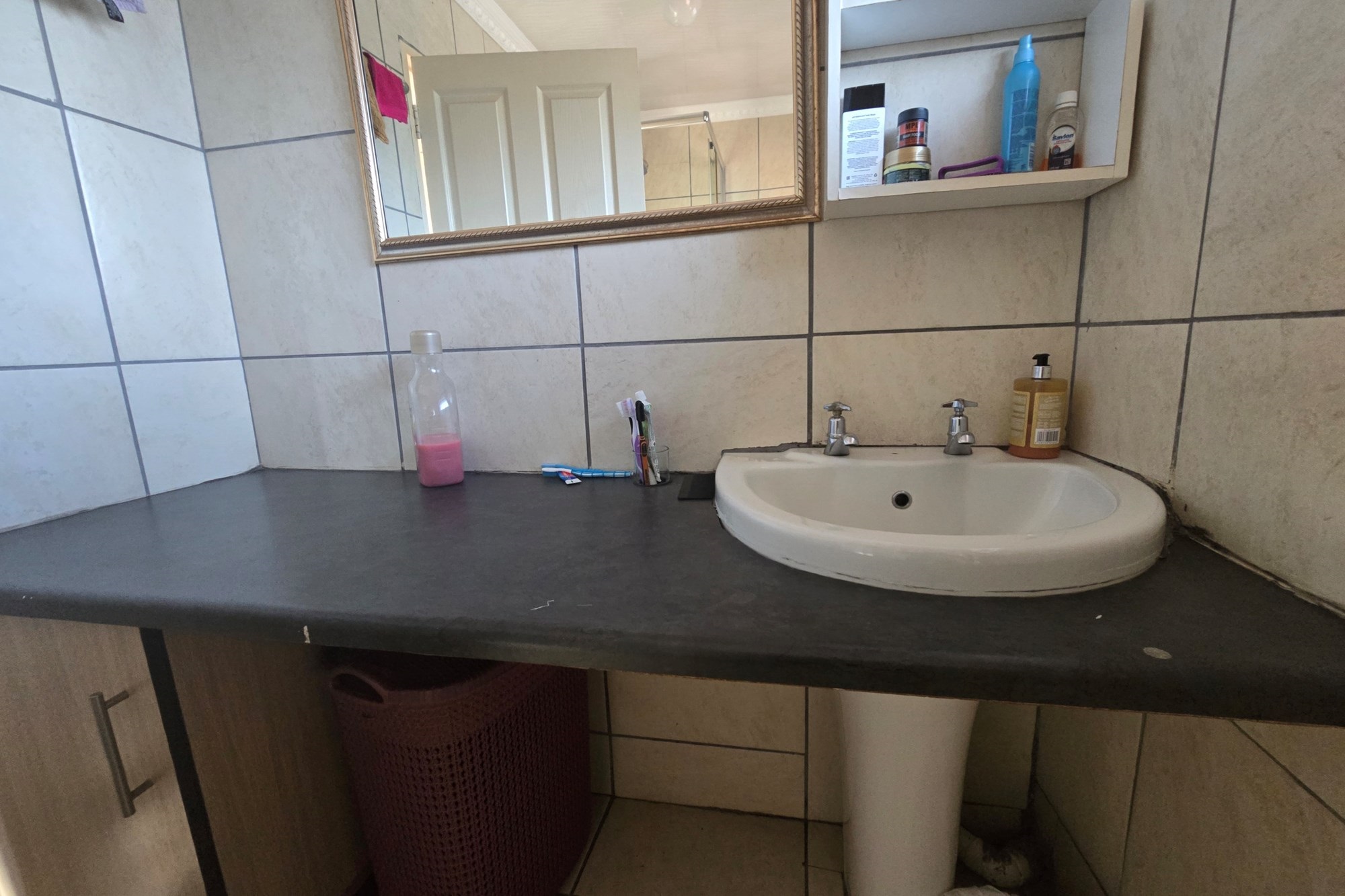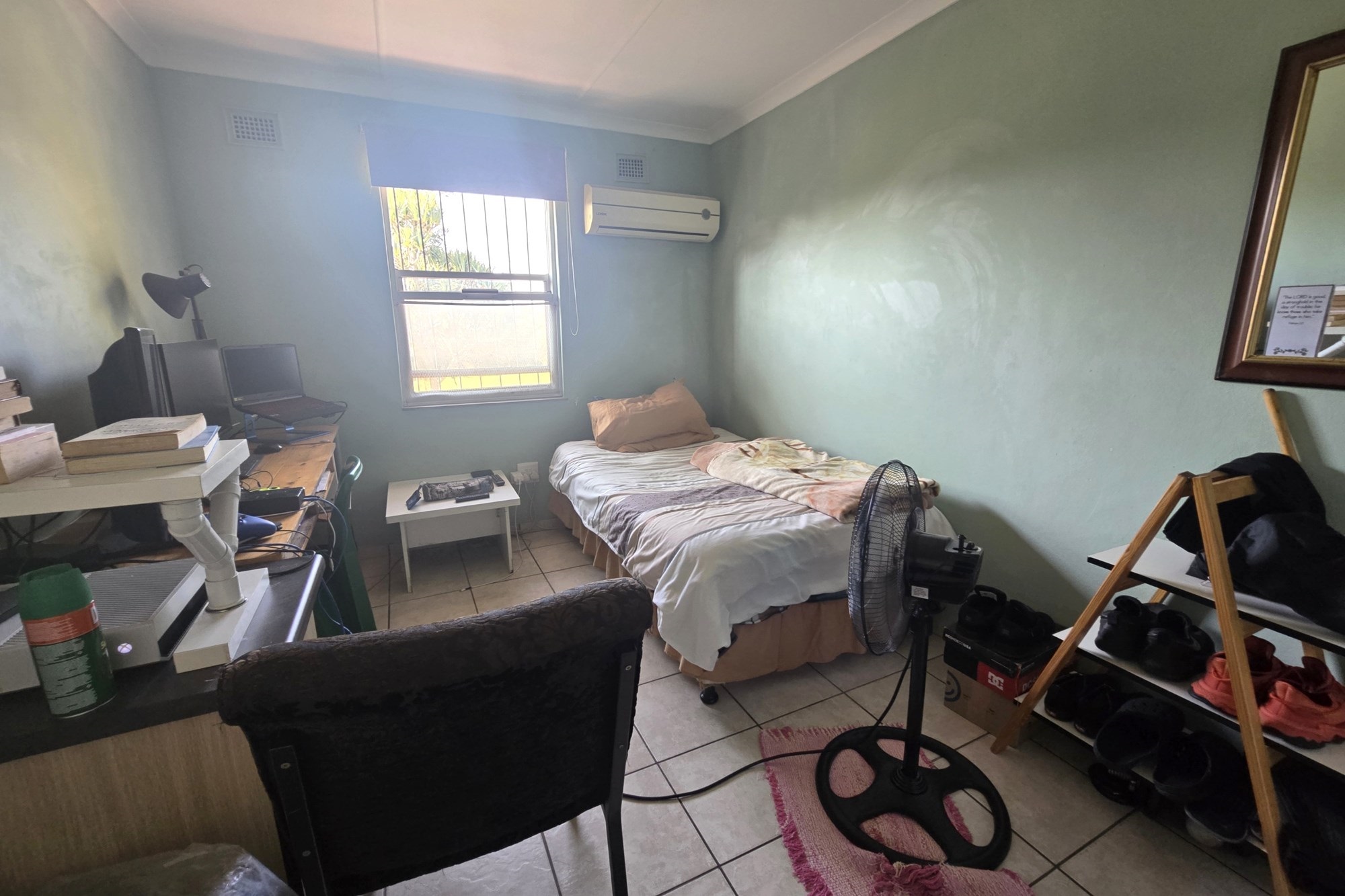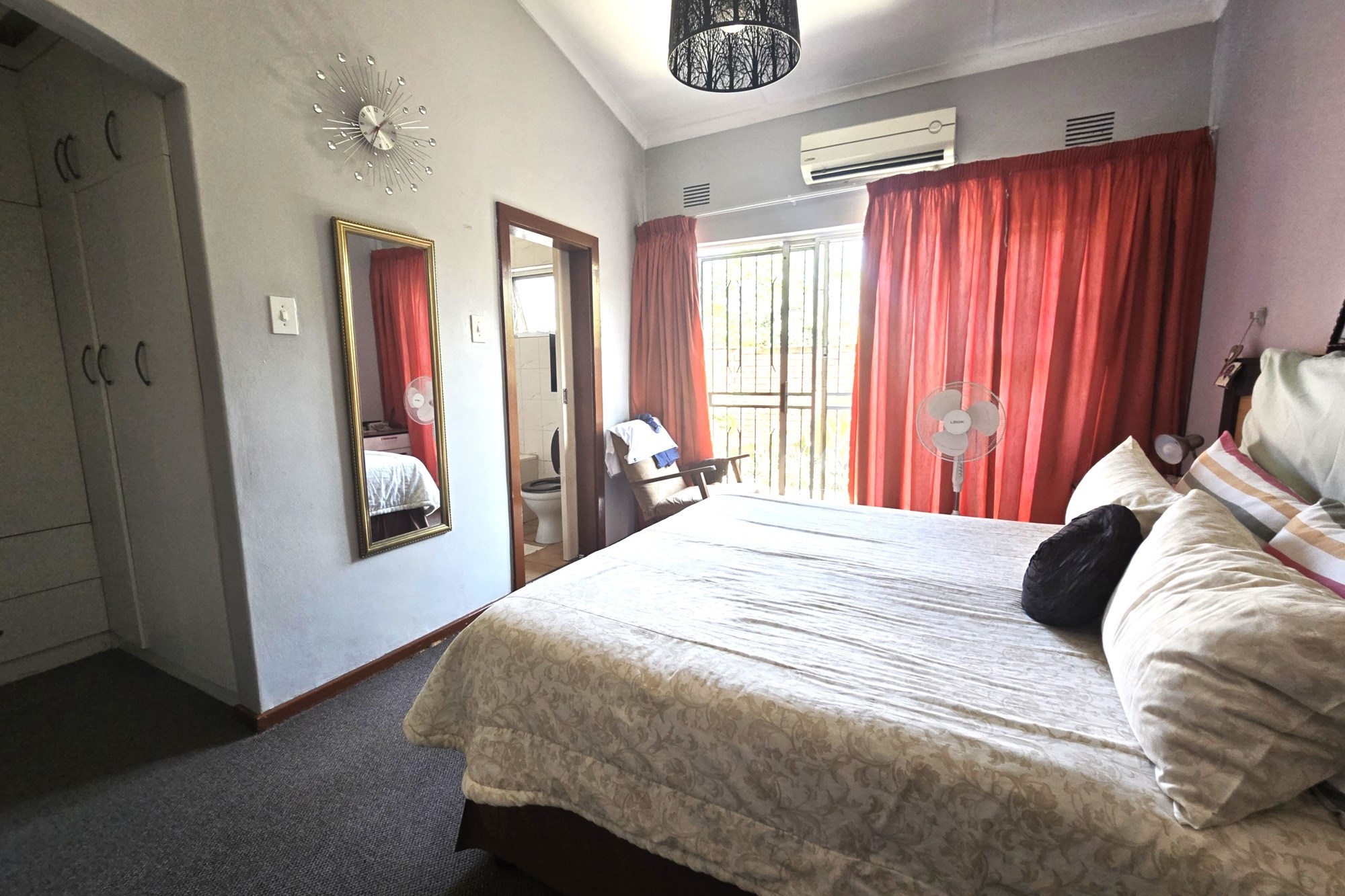 Upstairs, you’ll find three additional bedrooms, a lounge, and a full bathroom with bath, shower, basin, and toilet. This unit also offers a lock-up garage with built-in cupboards, an extra open parking space, and a second private garden with a patio and built in braai.
