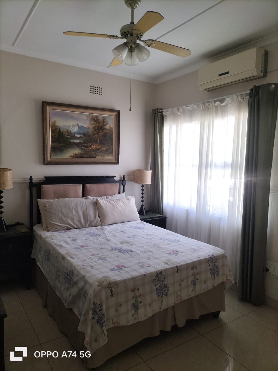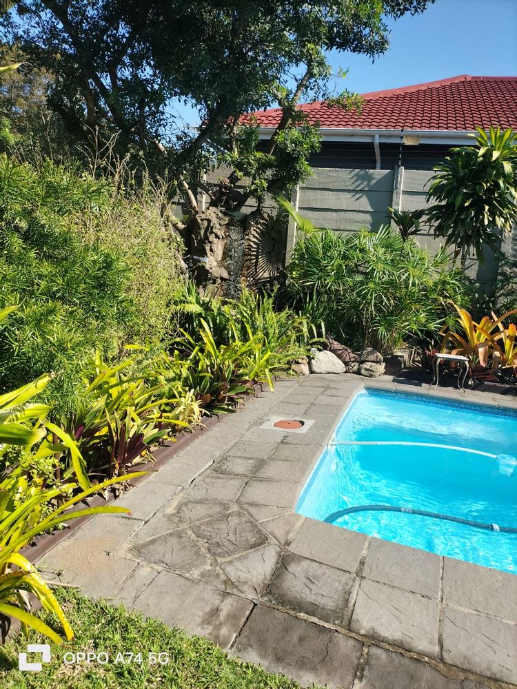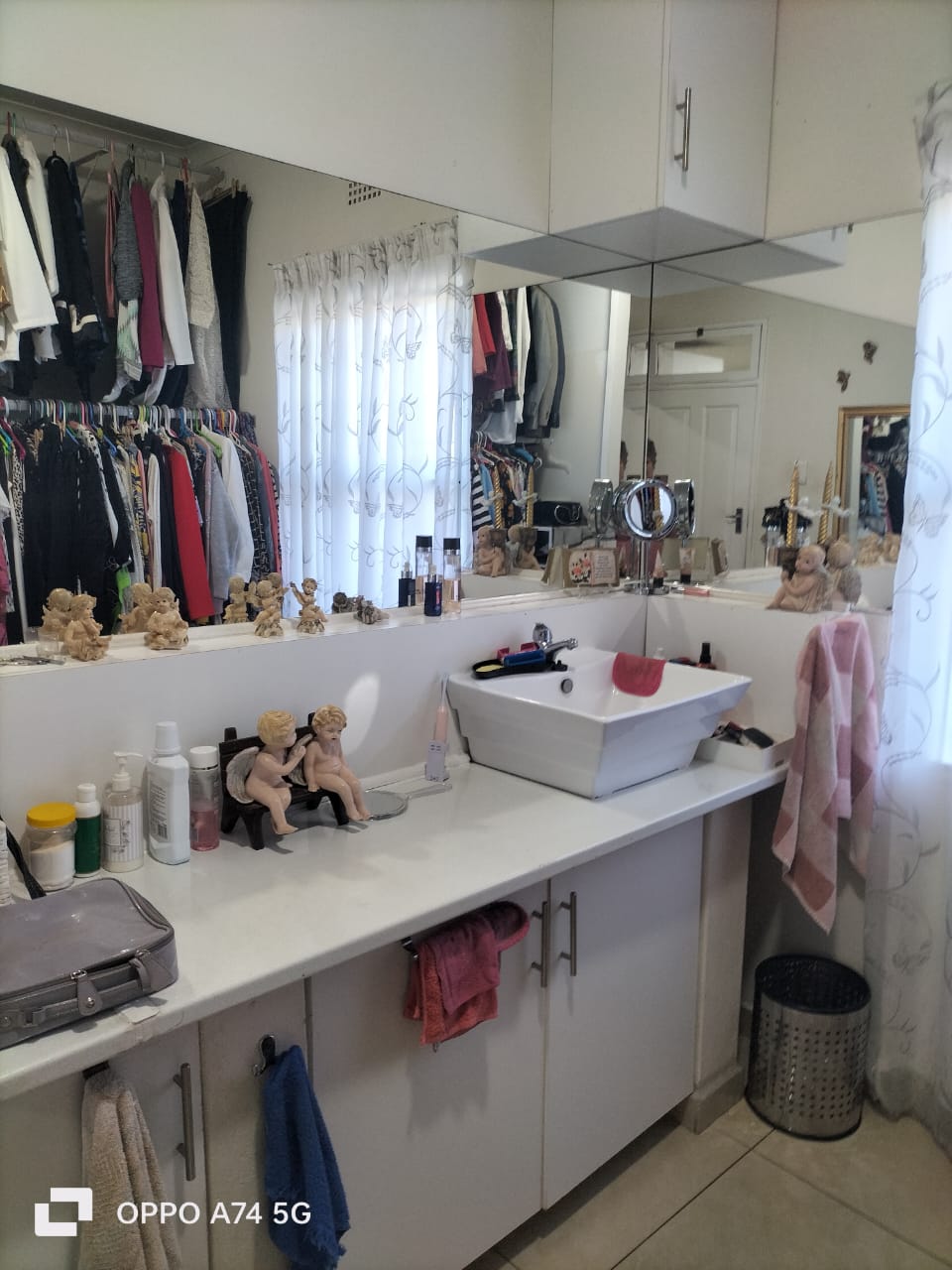 The fully fitted kitchen offers ample cupboard space, ideal for anyone who enjoys cooking and entertaining. Step outside to the covered entertainment area with a built-in braai, overlooking a beautiful garden that enhances the home’s welcoming atmosphere.