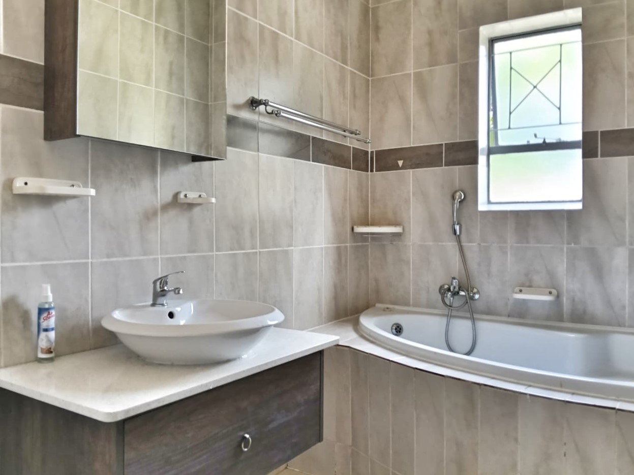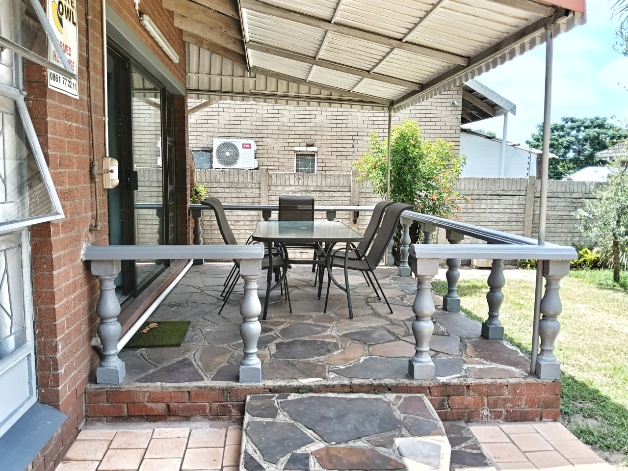 Step outside to a relaxing back patio overlooking a lush garden and braai area—perfect for unwinding in the evenings. An open carport accommodates up to five vehicles. The rental includes excellent extras such as security, WiFi, a smart TV with Netflix, all linen (changed weekly), weekly garden service, and a washing machine. An optional cleaning service is also available at an additional cost for extra cleaning or laundry, making this an effortless and well-appointed business stay.