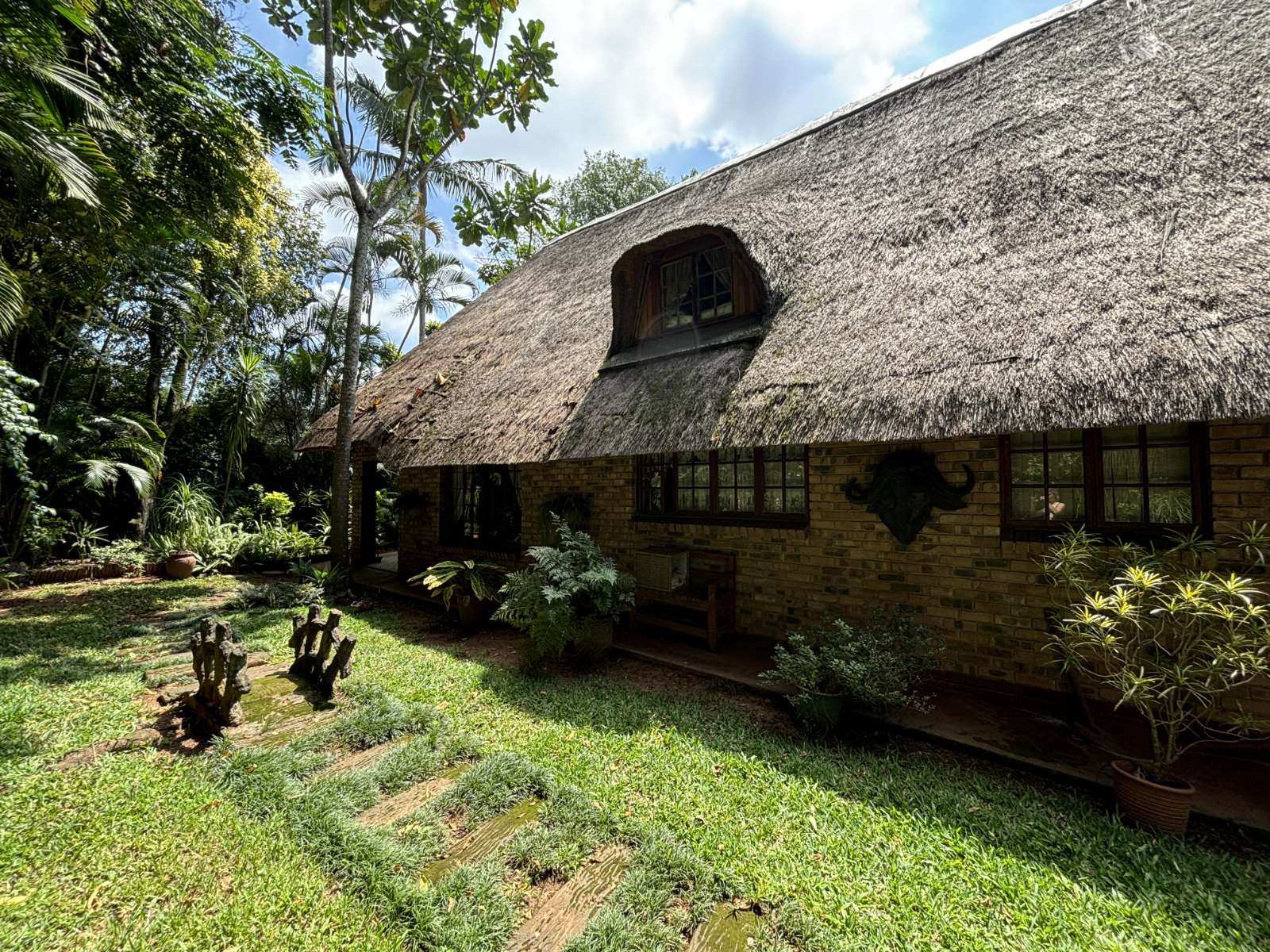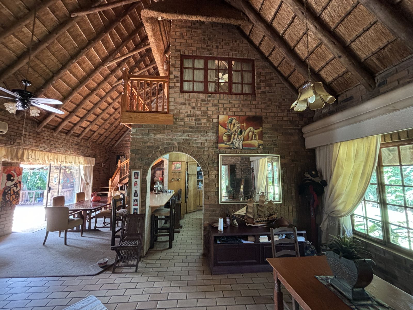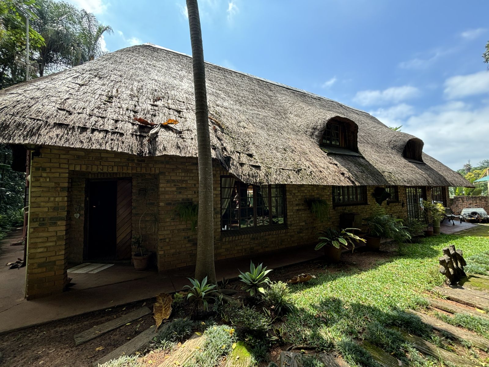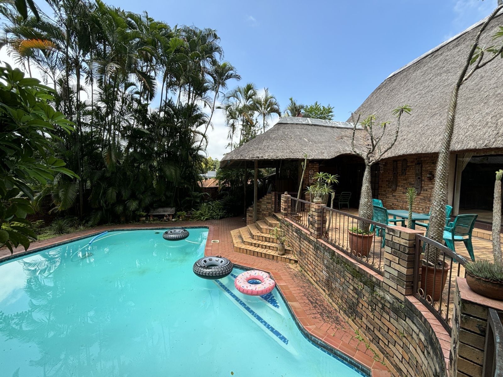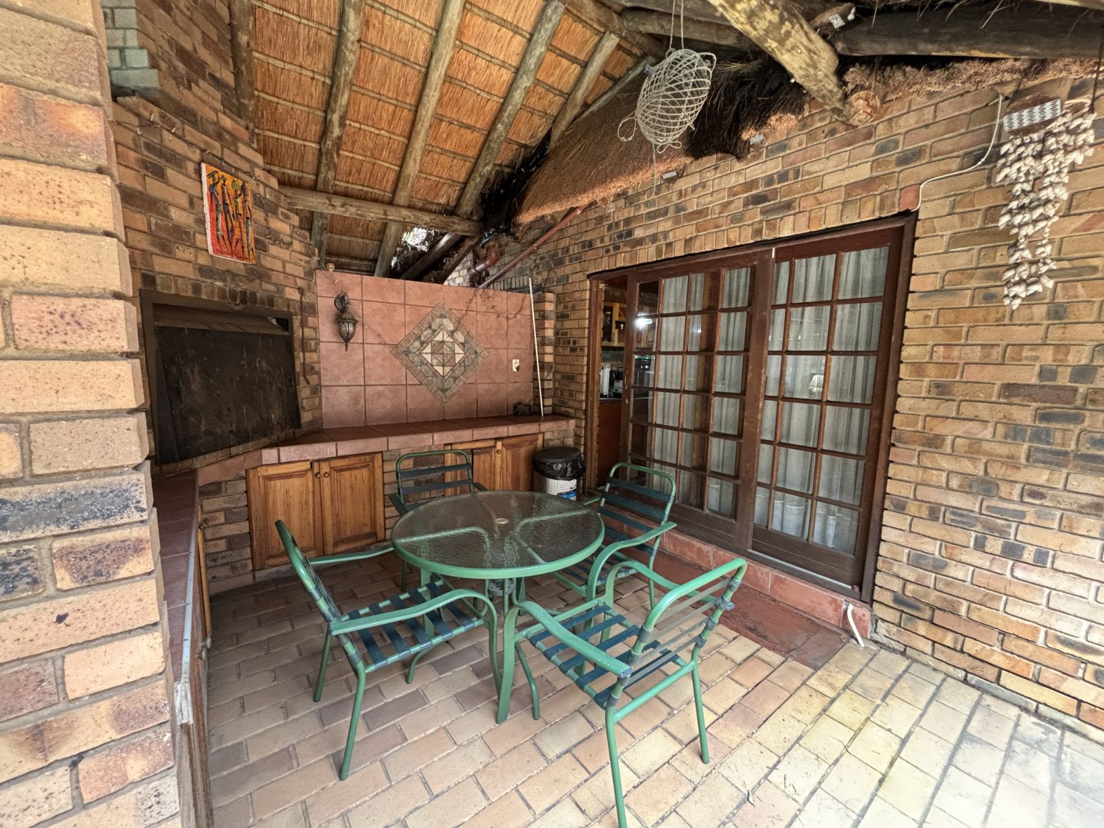 The thatch roof adds character and charm to the home, while also presenting an opportunity for a new owner to add value, as some TLC is required. Outdoors, the property boasts a swimming pool, a welcoming veranda, and a dedicated braai area — perfect for relaxed outdoor living and enjoying the rich garden filled with established trees.