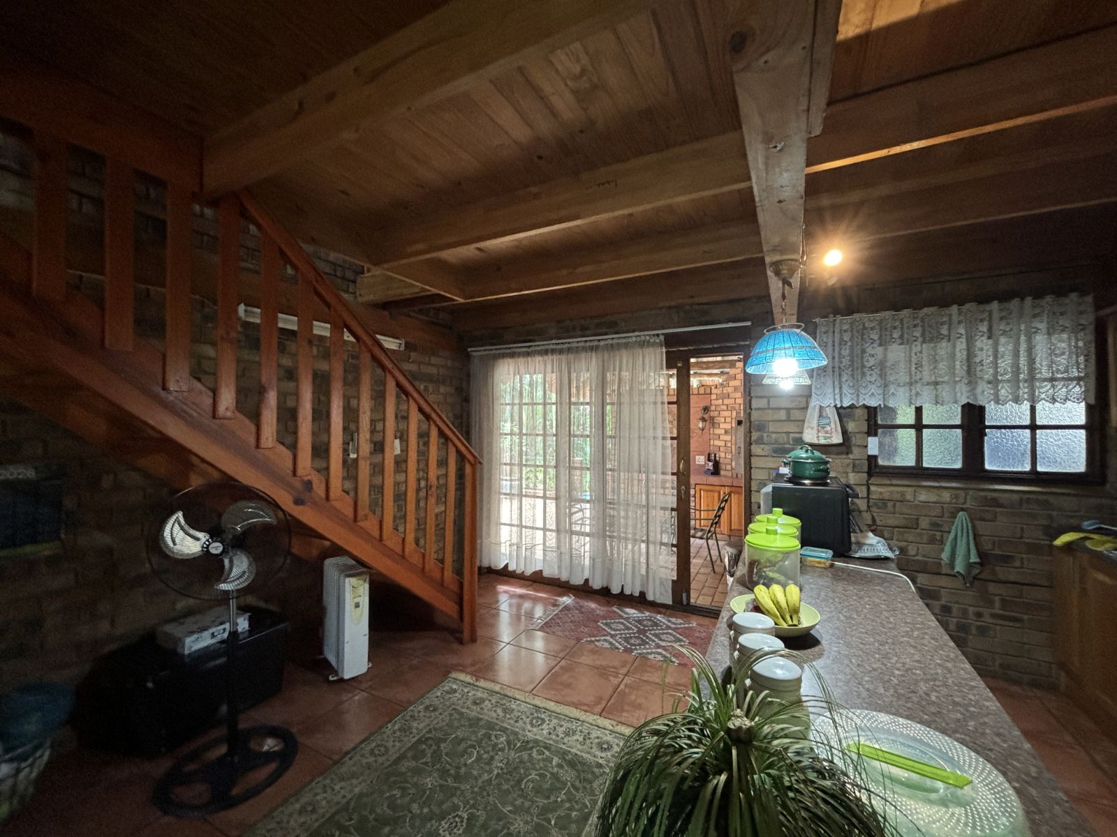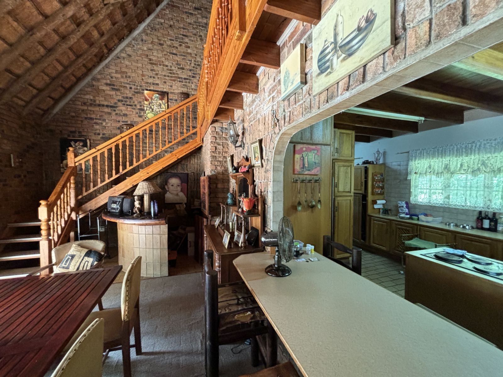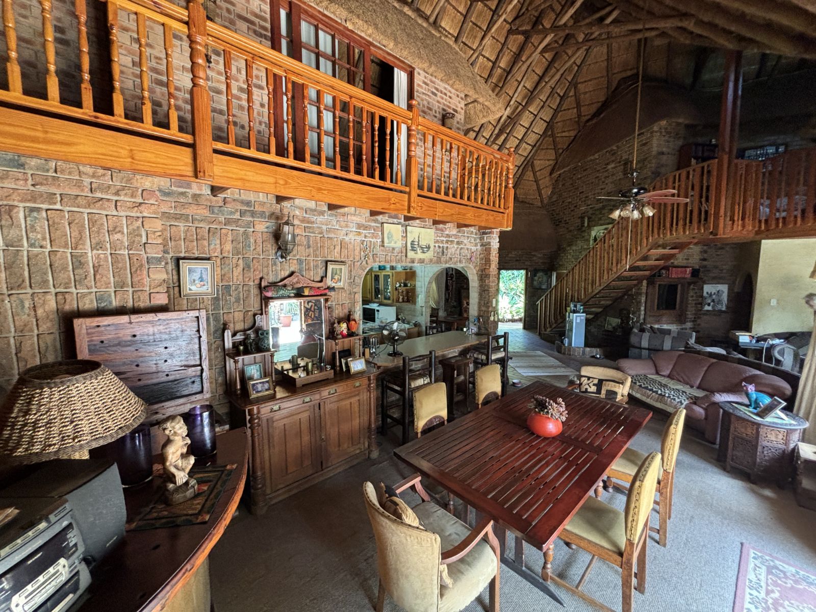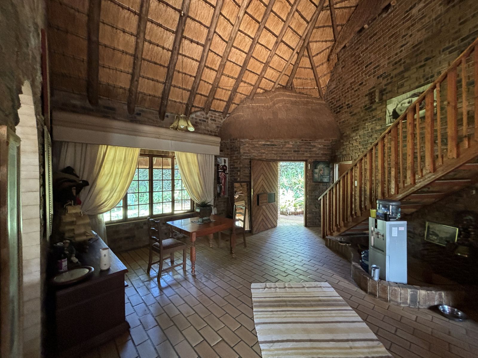 The thatch roof adds character and charm to the home, while also presenting an opportunity for a new owner to add value, as some TLC is required. Outdoors, the property boasts a swimming pool, a welcoming veranda, and a dedicated braai area — perfect for relaxed outdoor living and enjoying the rich garden filled with established trees.