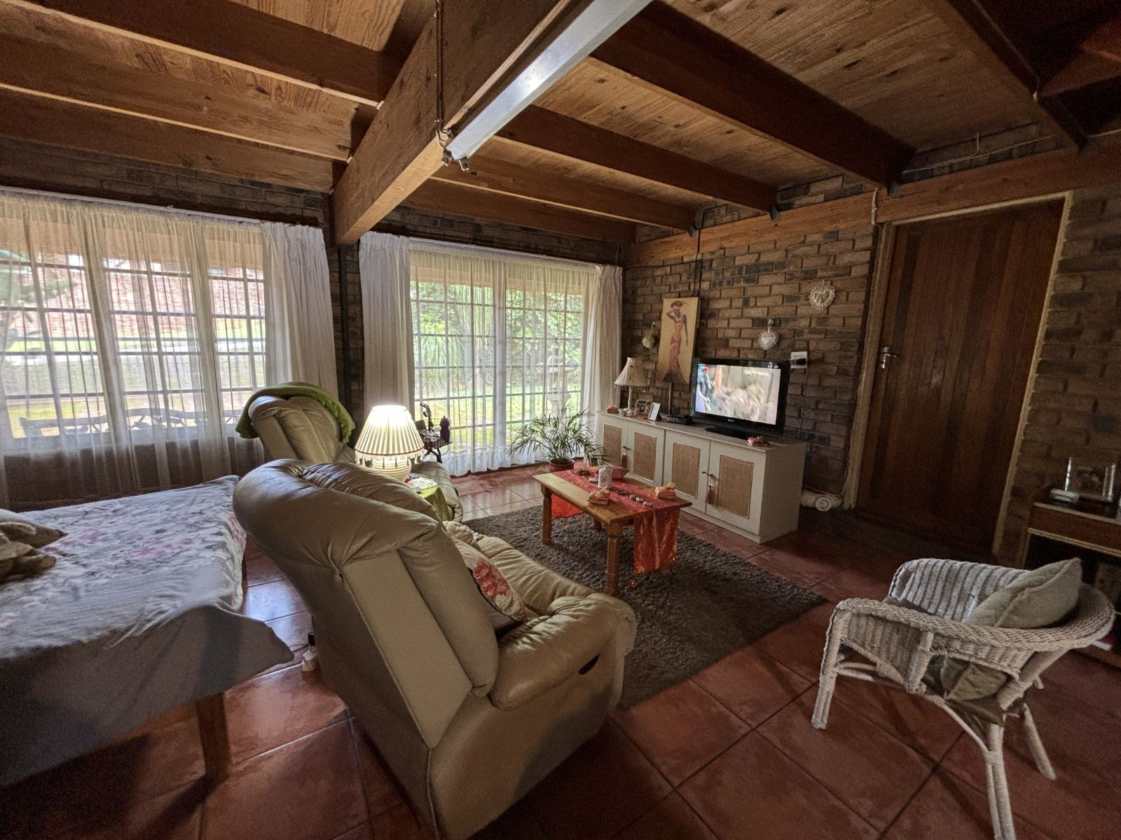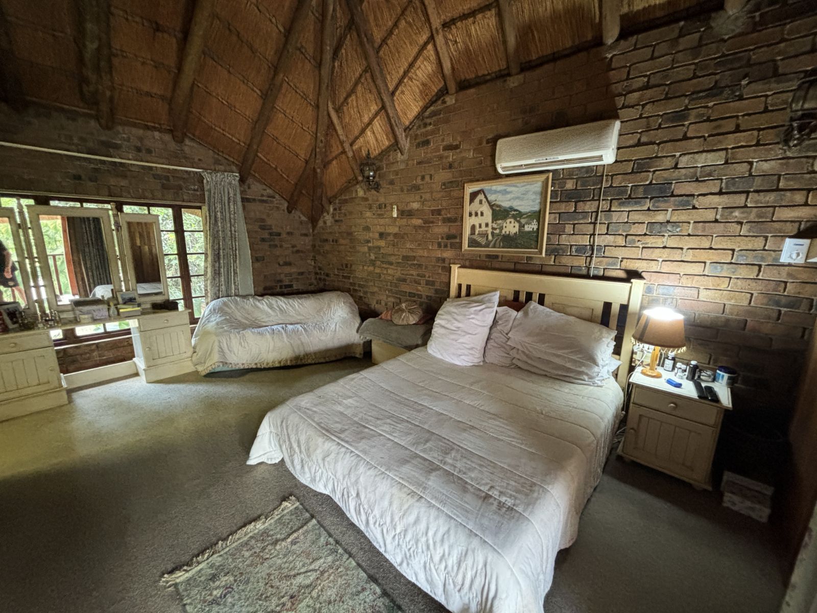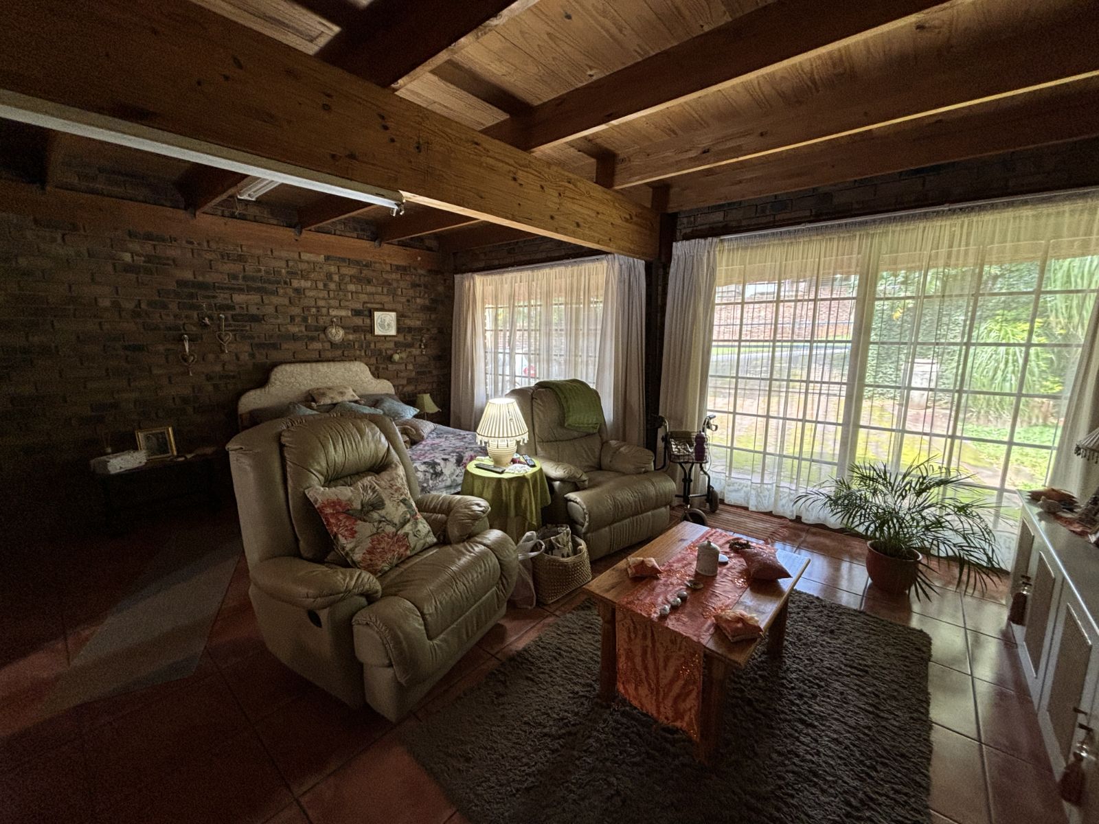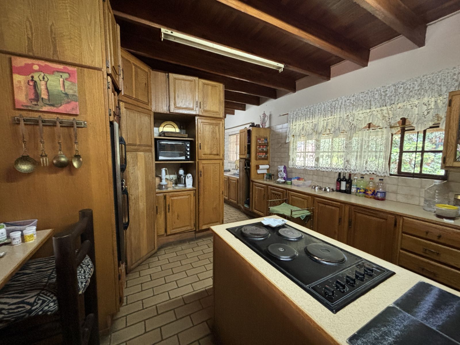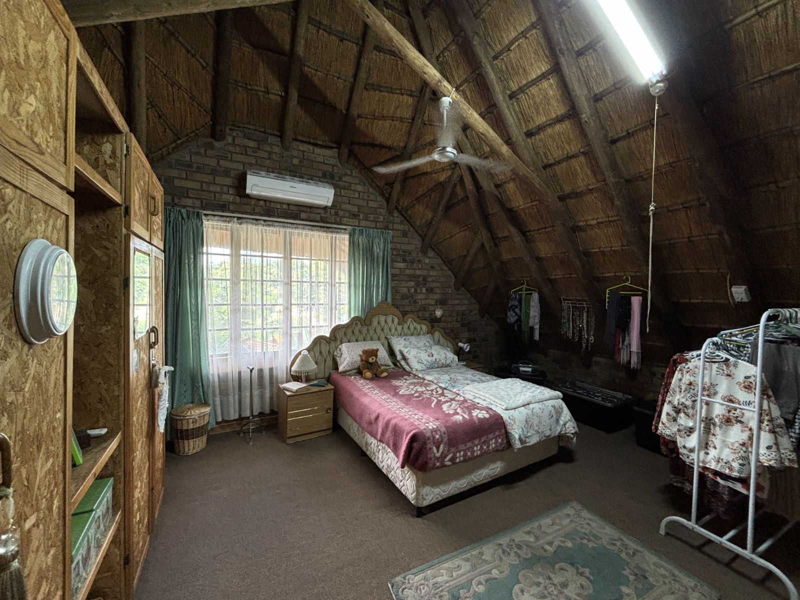 The thatch roof adds character and charm to the home, while also presenting an opportunity for a new owner to add value, as some TLC is required. Outdoors, the property boasts a swimming pool, a welcoming veranda, and a dedicated braai area — perfect for relaxed outdoor living and enjoying the rich garden filled with established trees.