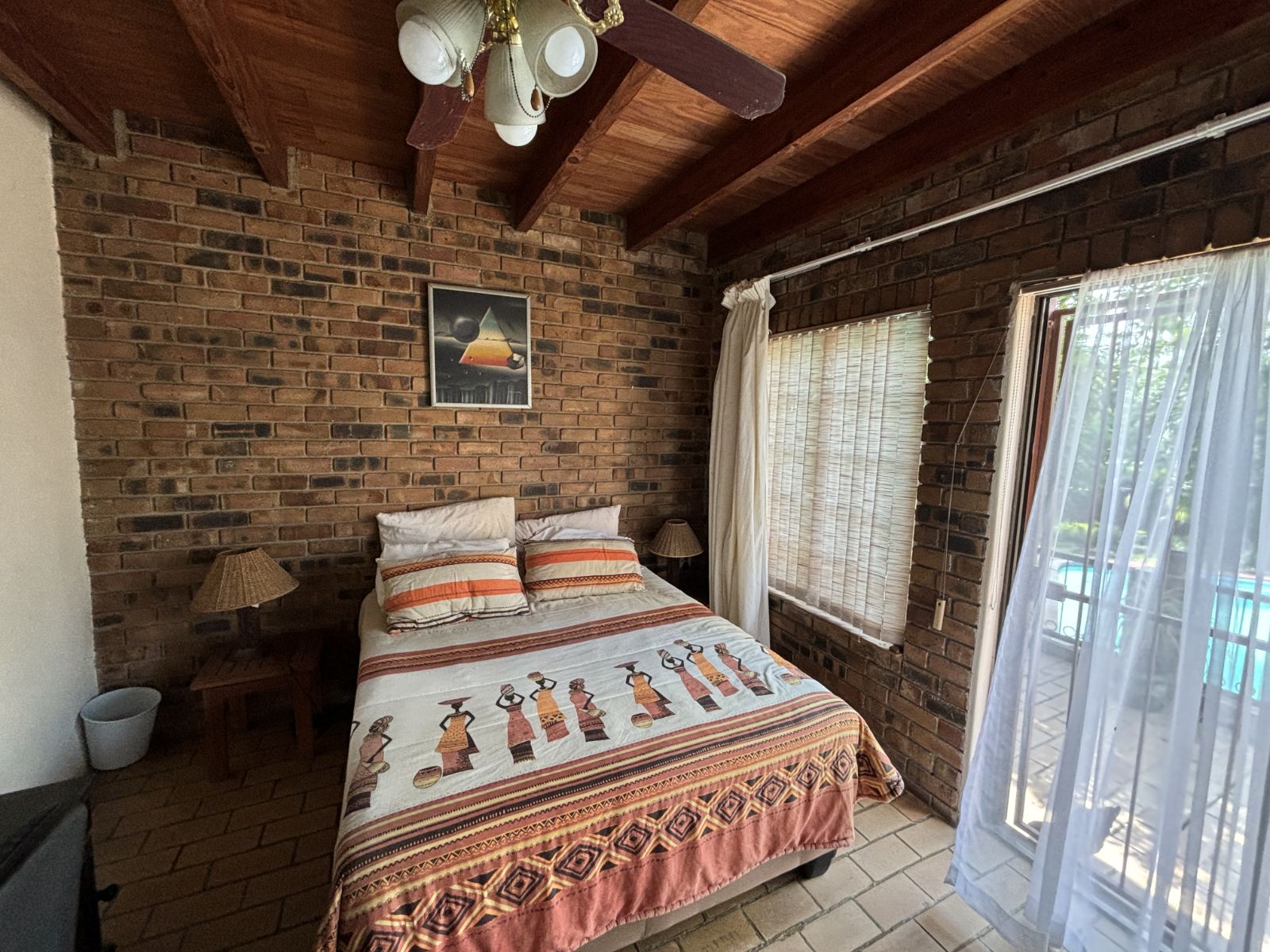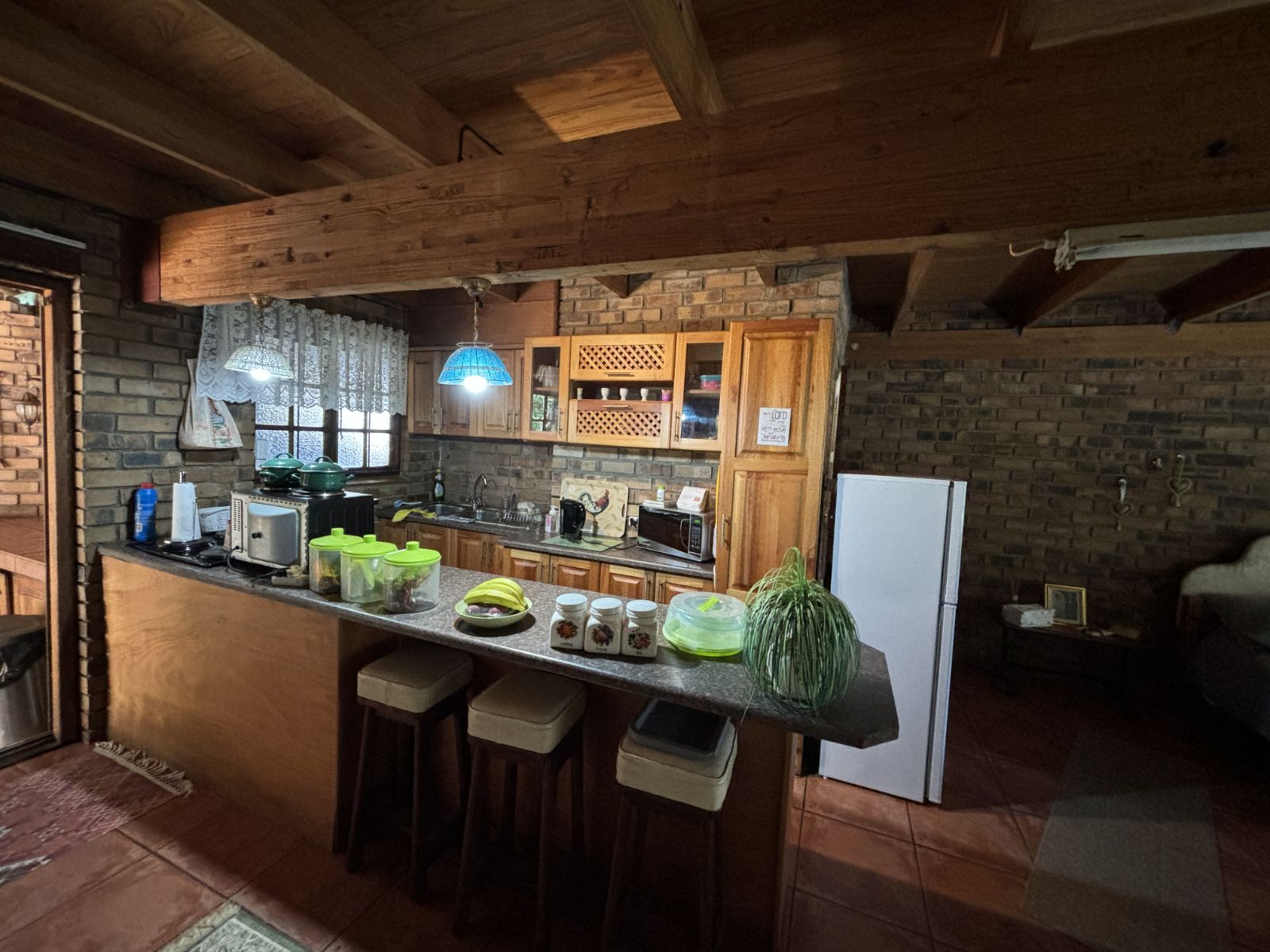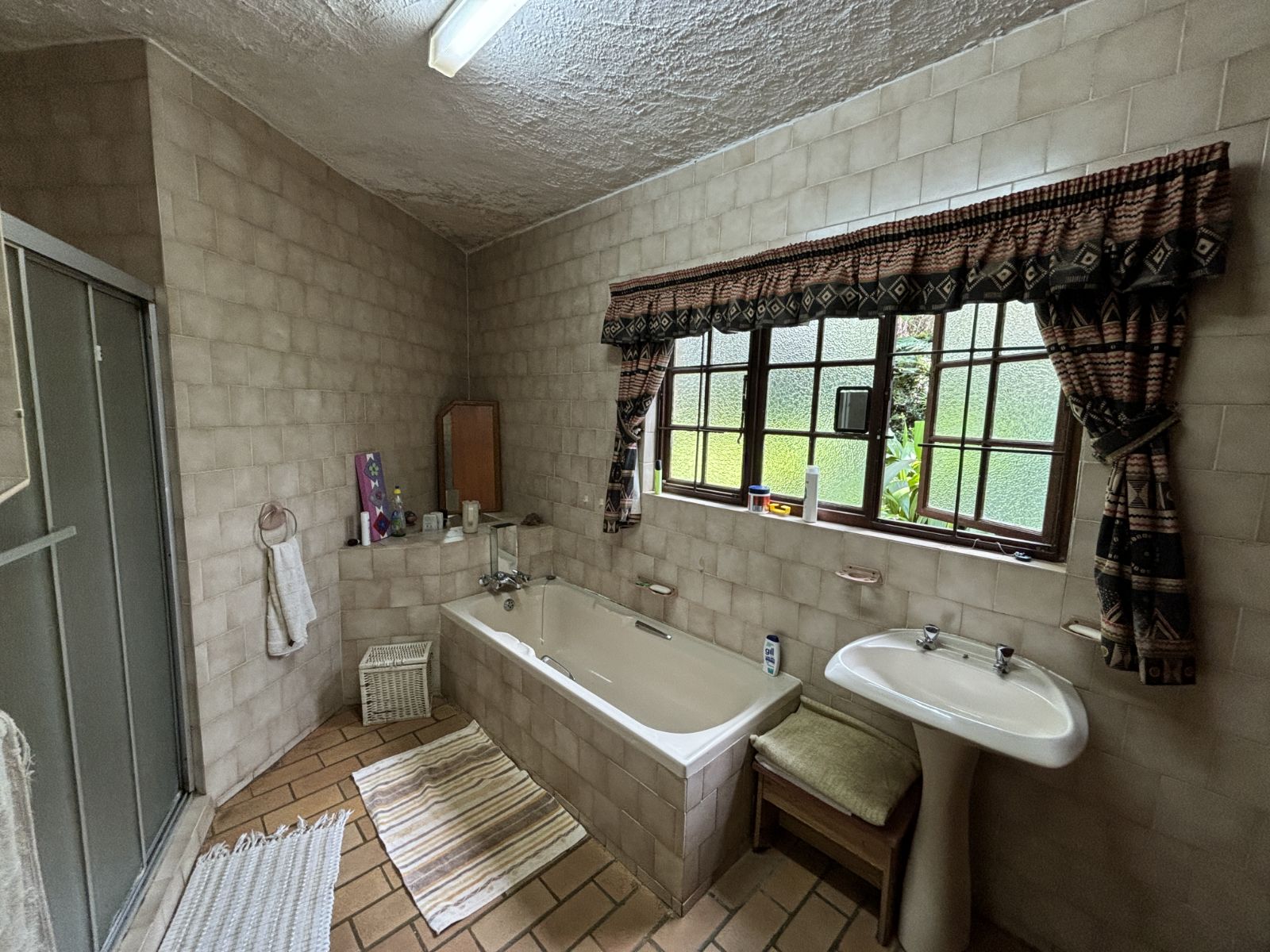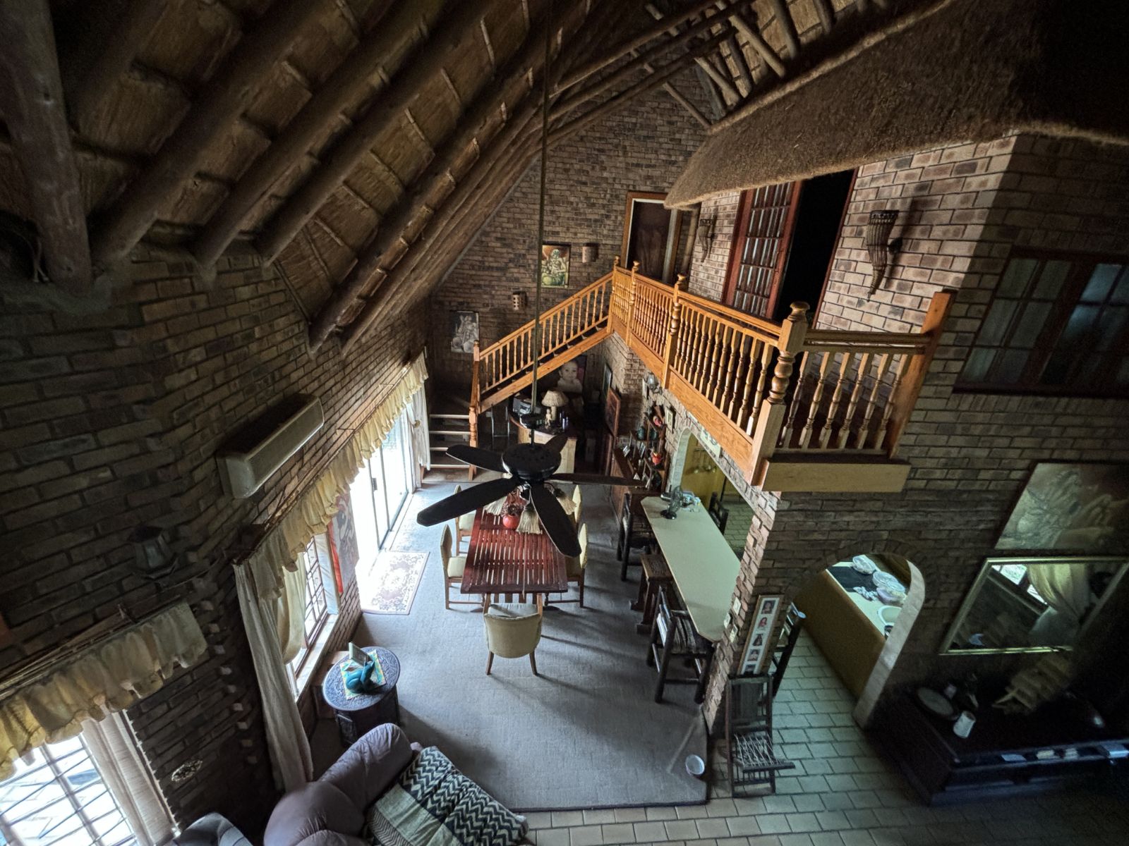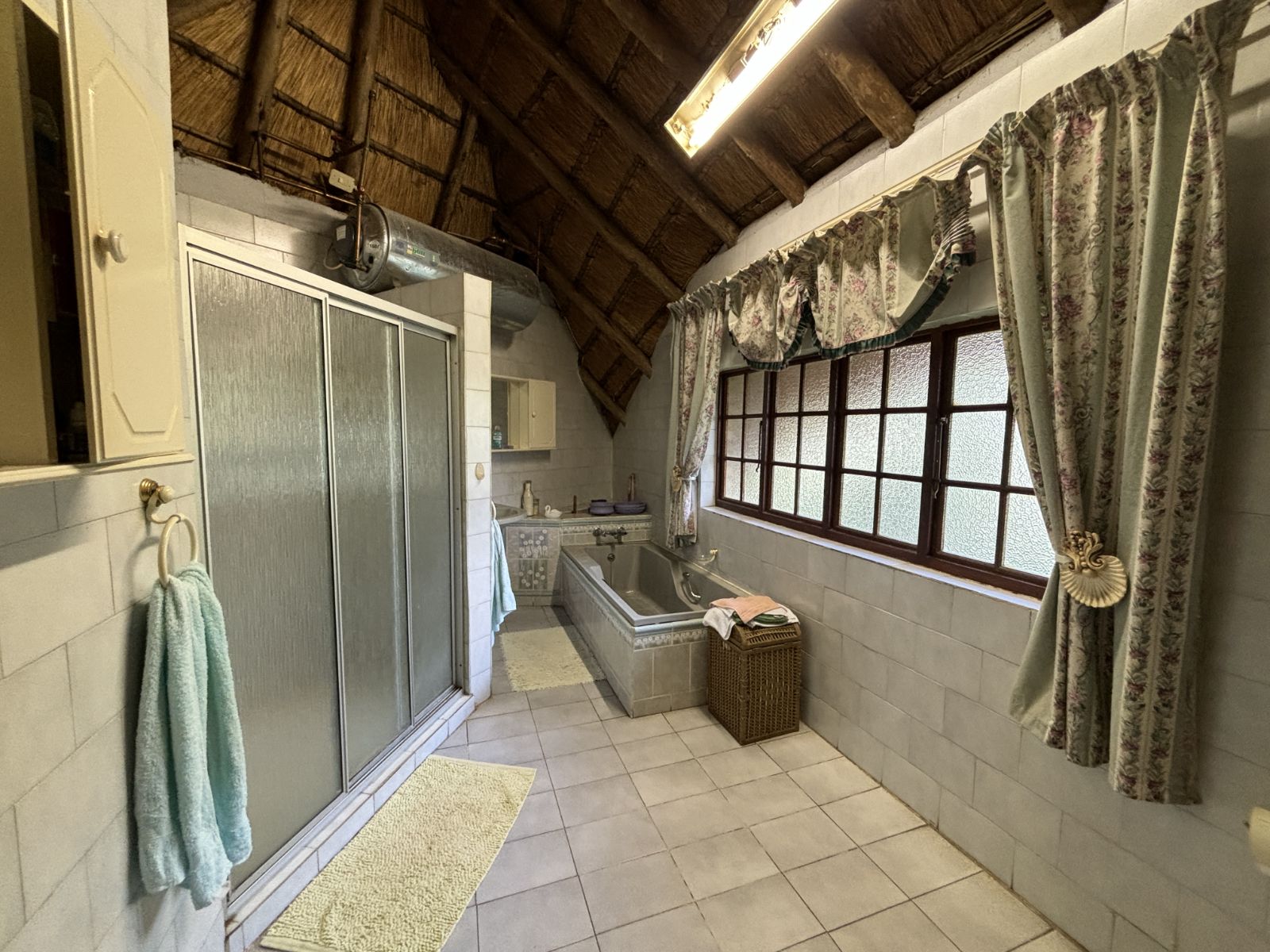 The thatch roof adds character and charm to the home, while also presenting an opportunity for a new owner to add value, as some TLC is required. Outdoors, the property boasts a swimming pool, a welcoming veranda, and a dedicated braai area — perfect for relaxed outdoor living and enjoying the rich garden filled with established trees.