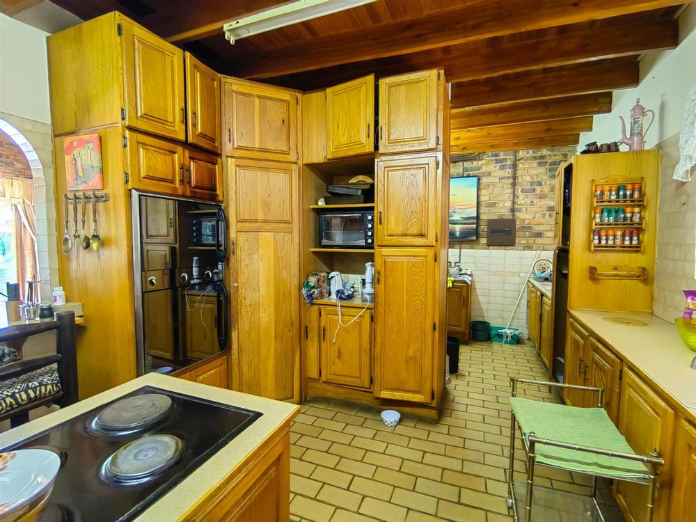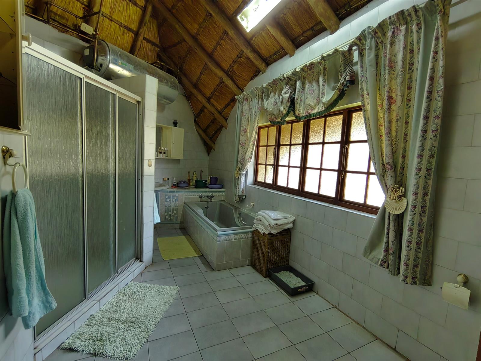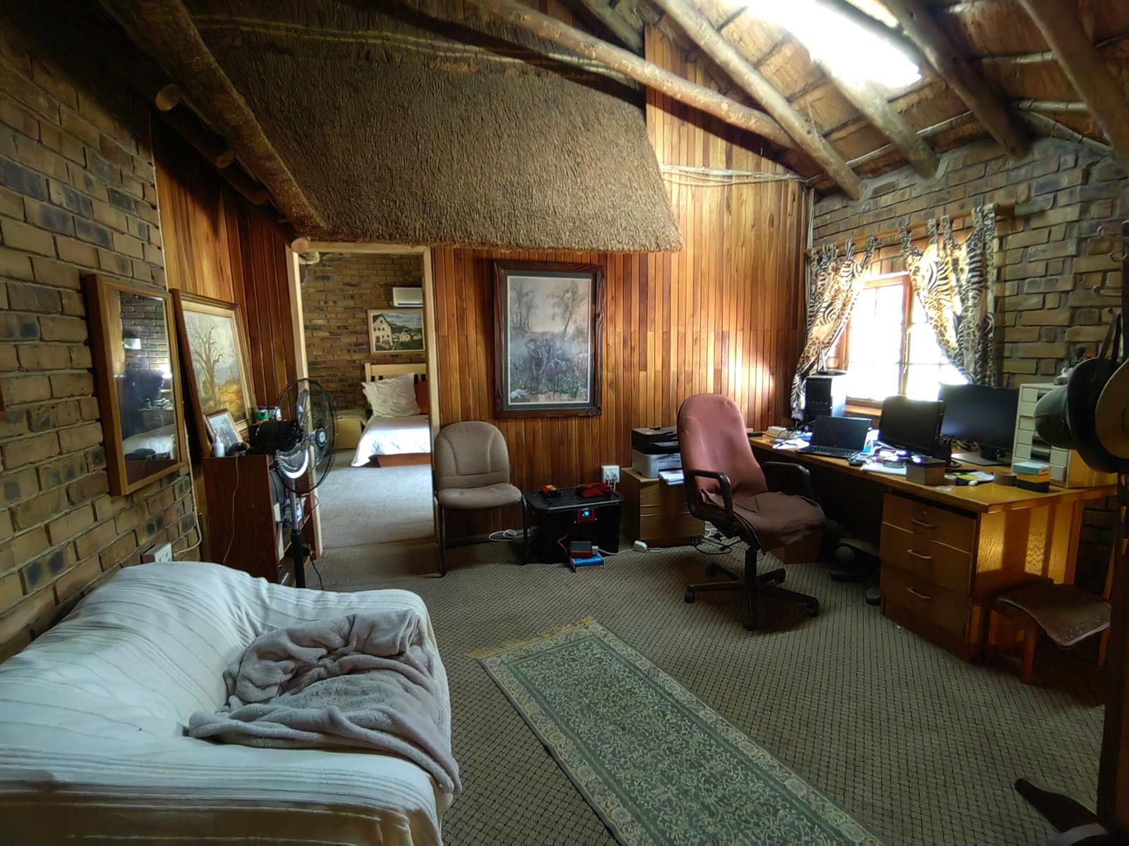 The heart of the home is the open-plan living space, where the kitchen, dining area, and lounge flow seamlessly together. A separate scullery keeps the kitchen neat and functional, while the high thatched ceilings and natural textures create a warm, holiday-like atmosphere year-round.