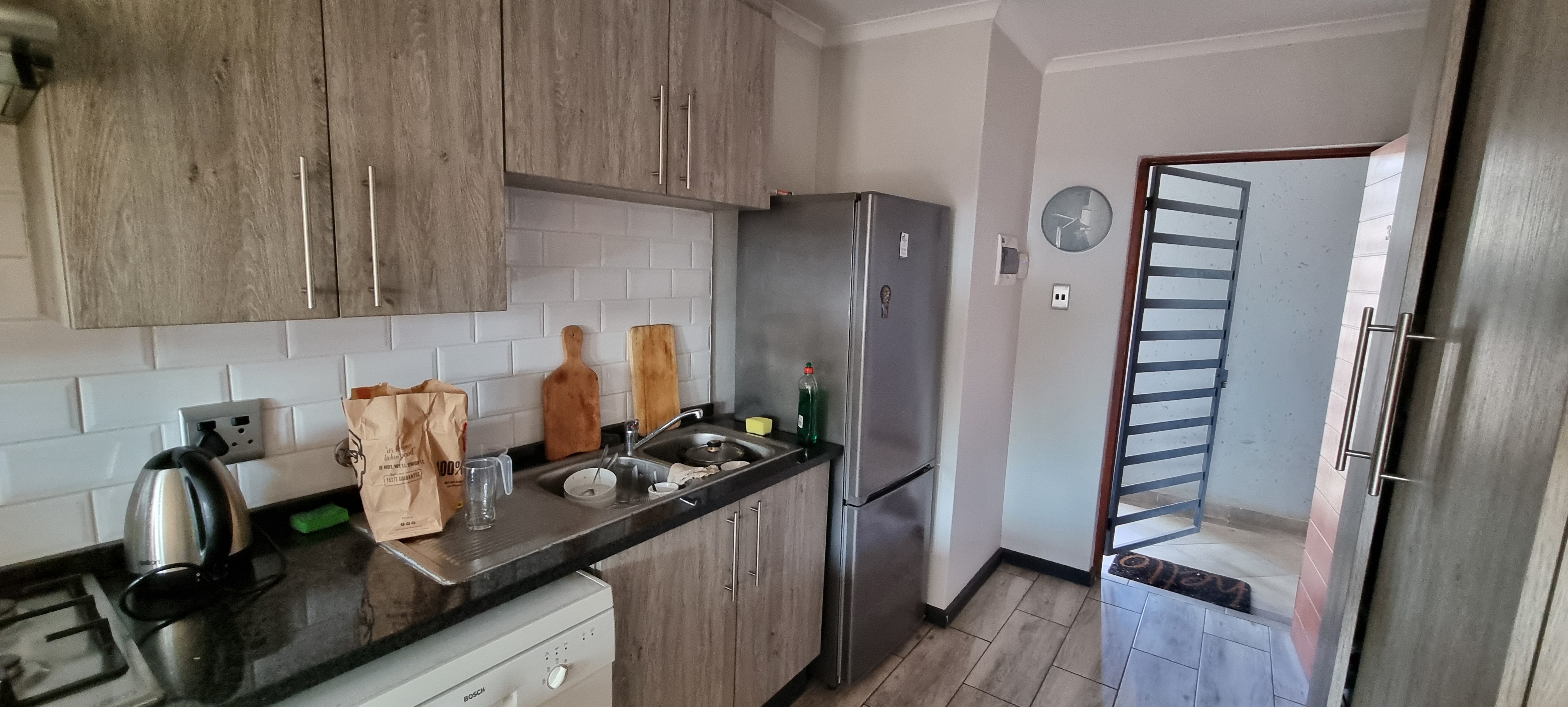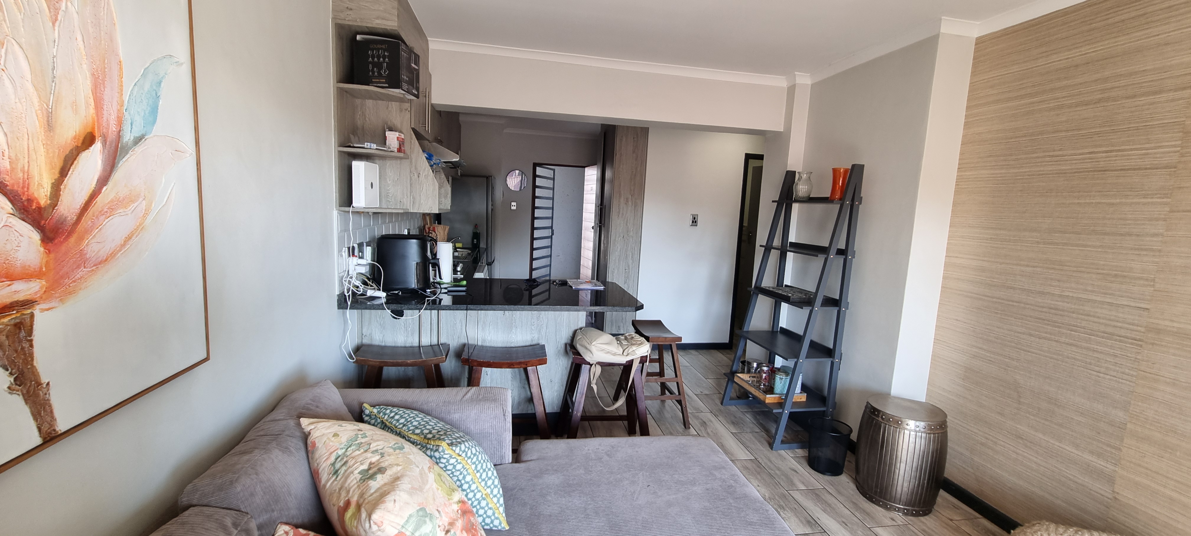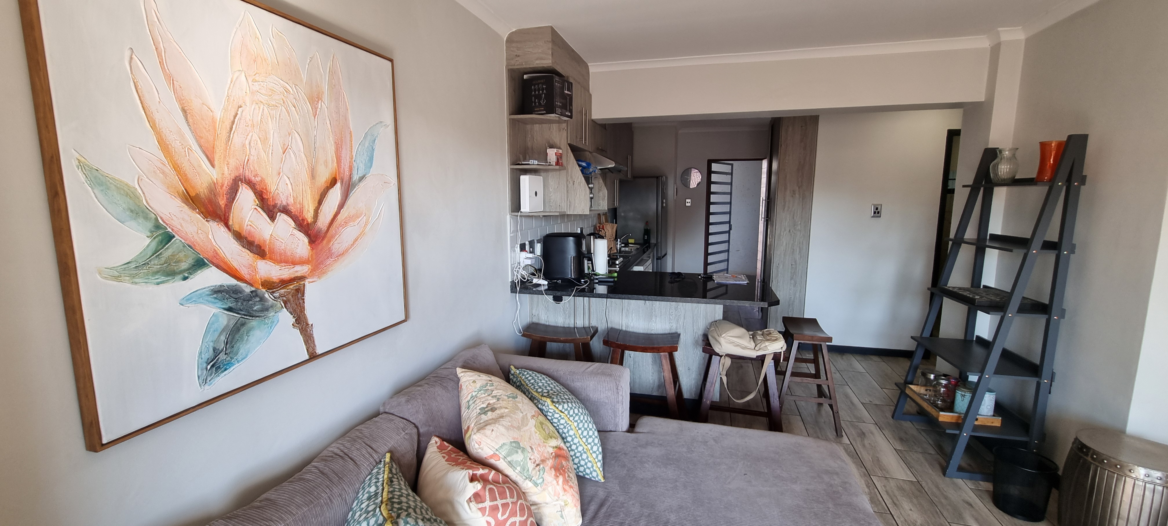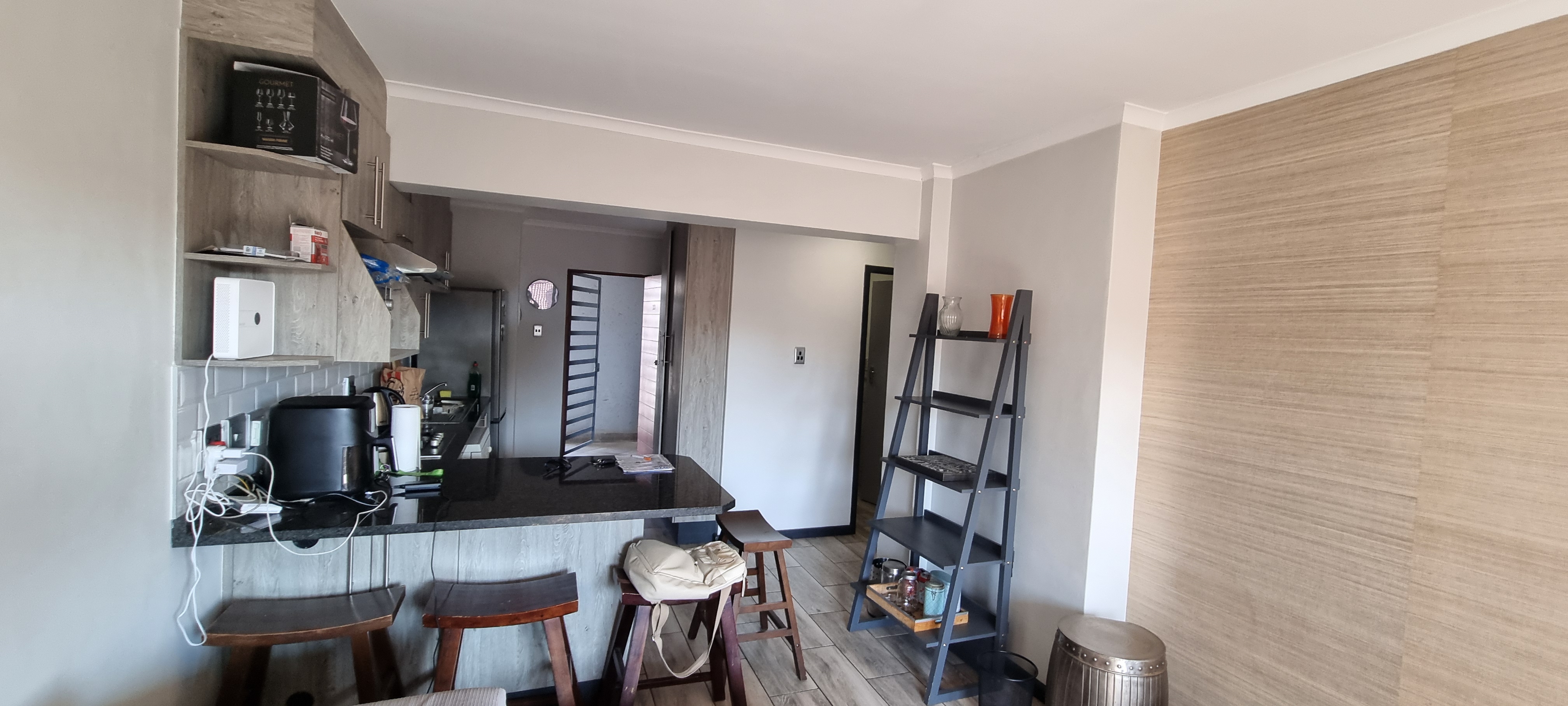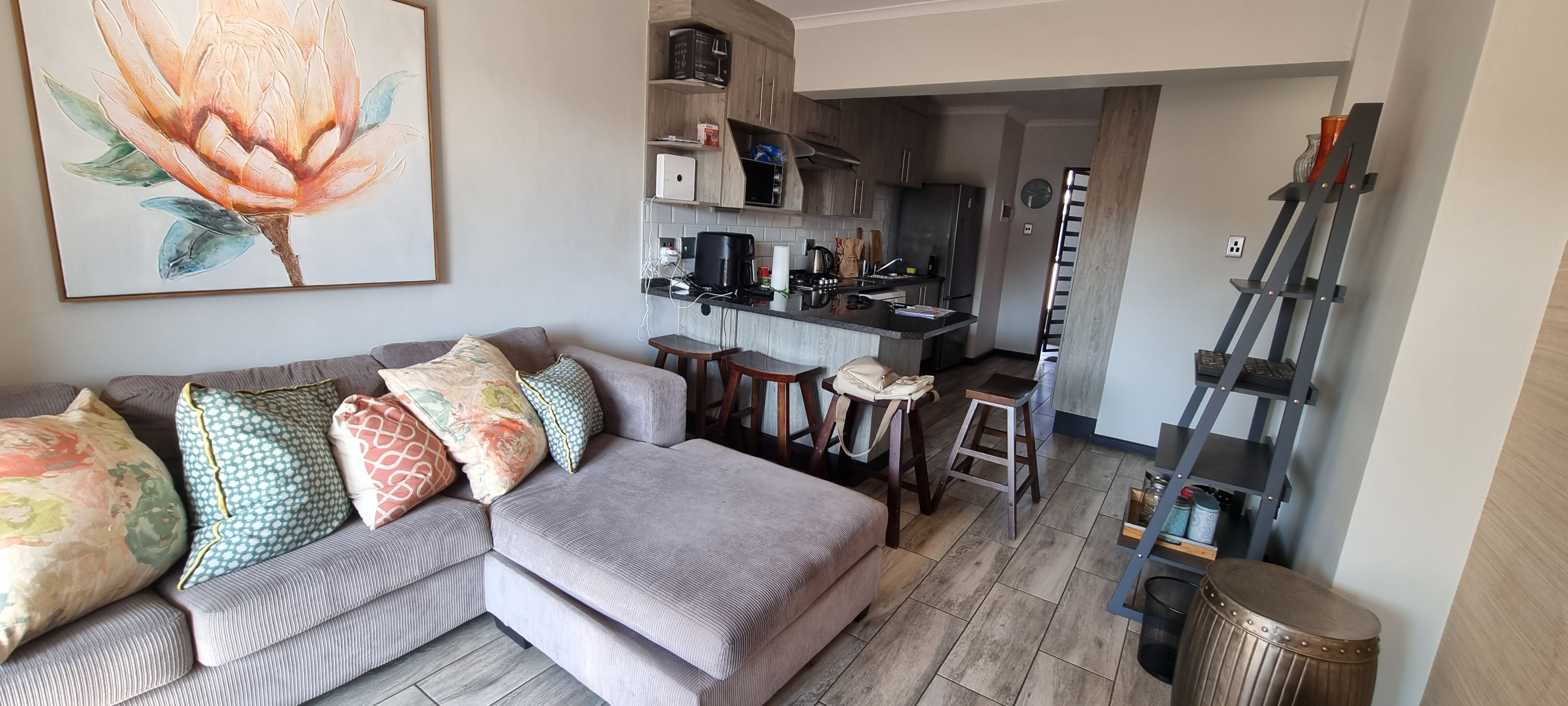 The open plan kitchen and lounge leads to an open balcony with BBQ facilities.