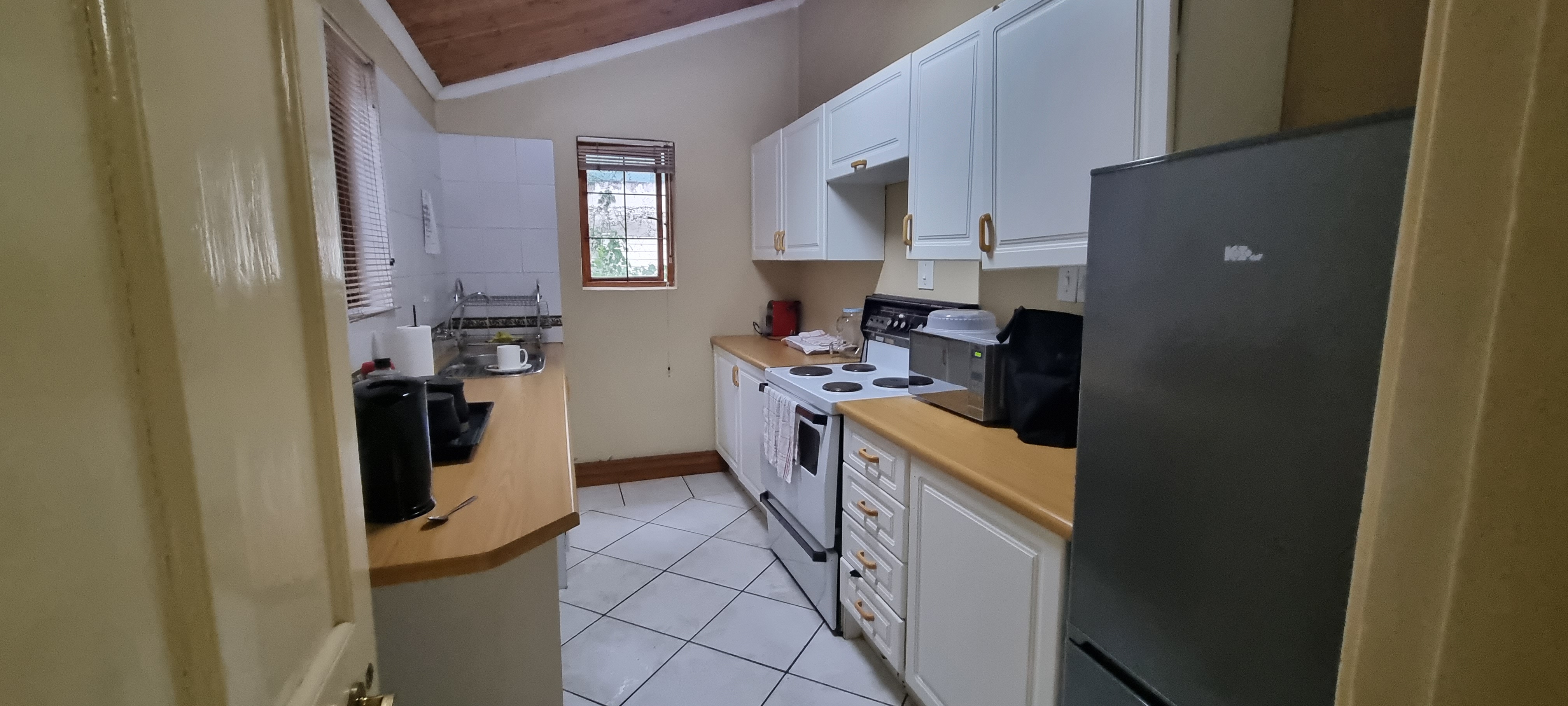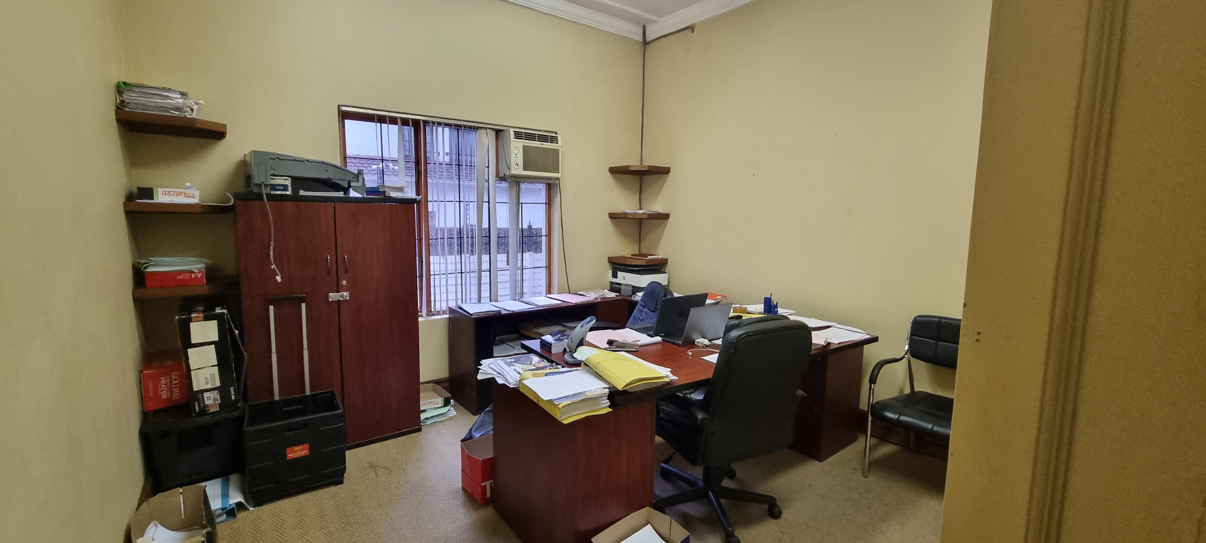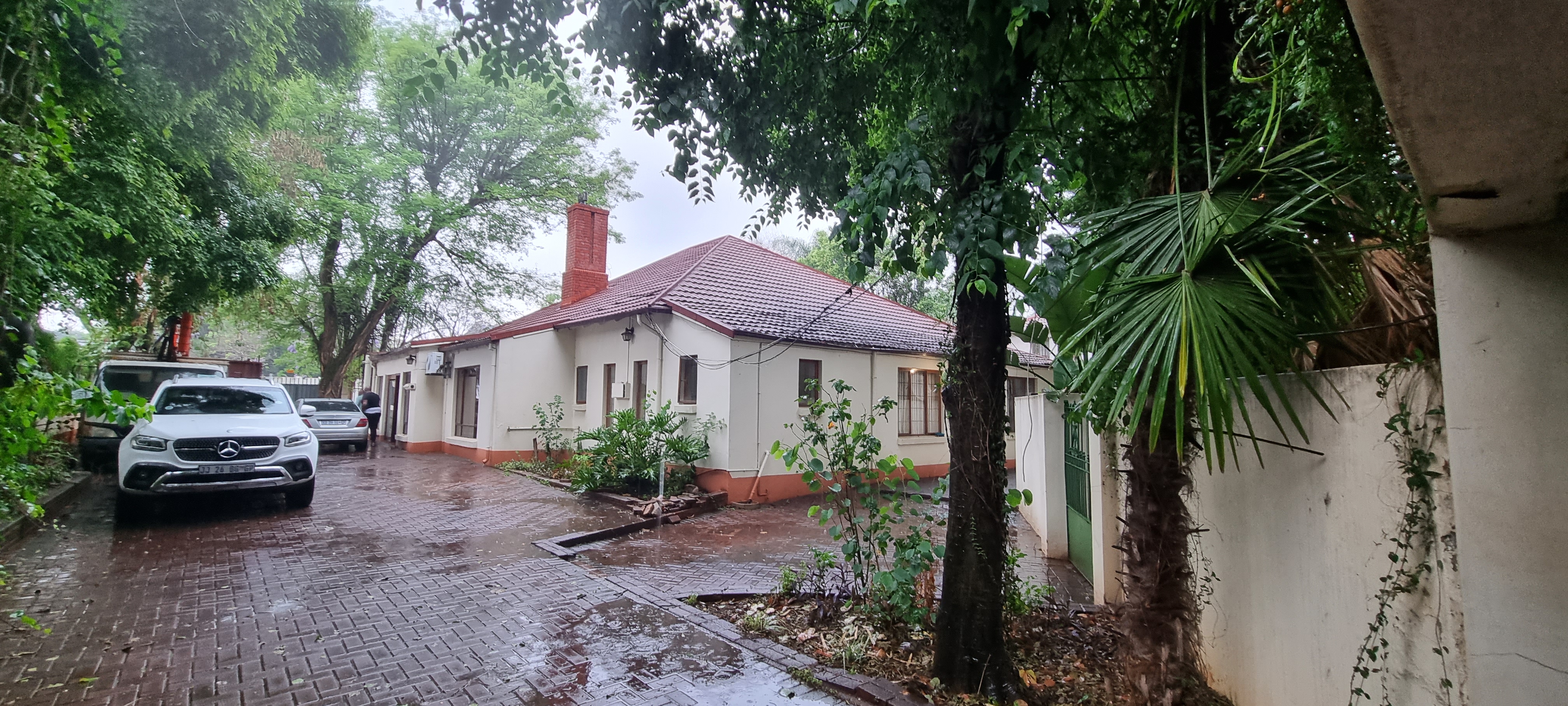 The primary residence features four spacious office rooms, a welcoming reception area, two boardrooms, a convenient storeroom, as well as an equipped kitchen, a cozy lounge, and three bathrooms. Additionally, the property offers an expansive lockup garage accommodating up to four cars, supplemented by extra open bays for parking, allowing space for an additional four to five vehicles. As an added bonus, two self catering units at the rear of the property, providing flexibility for various living arrangements. Domestic accommodation are also included, enhancing the property's overall utility and value.