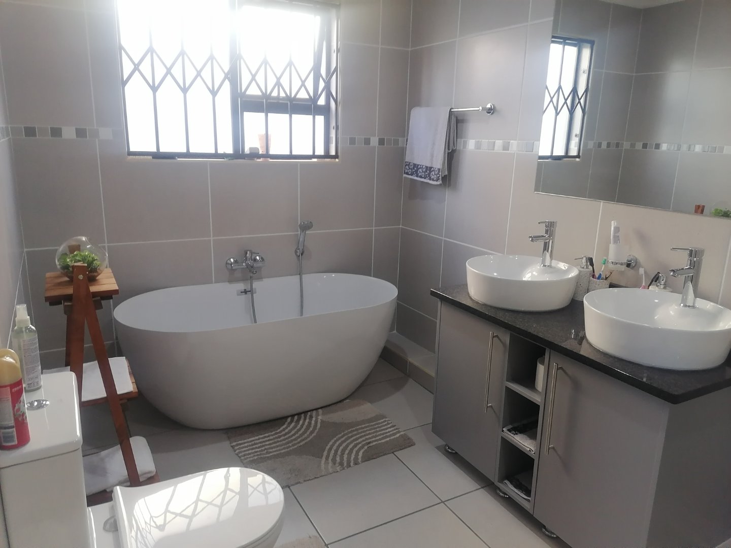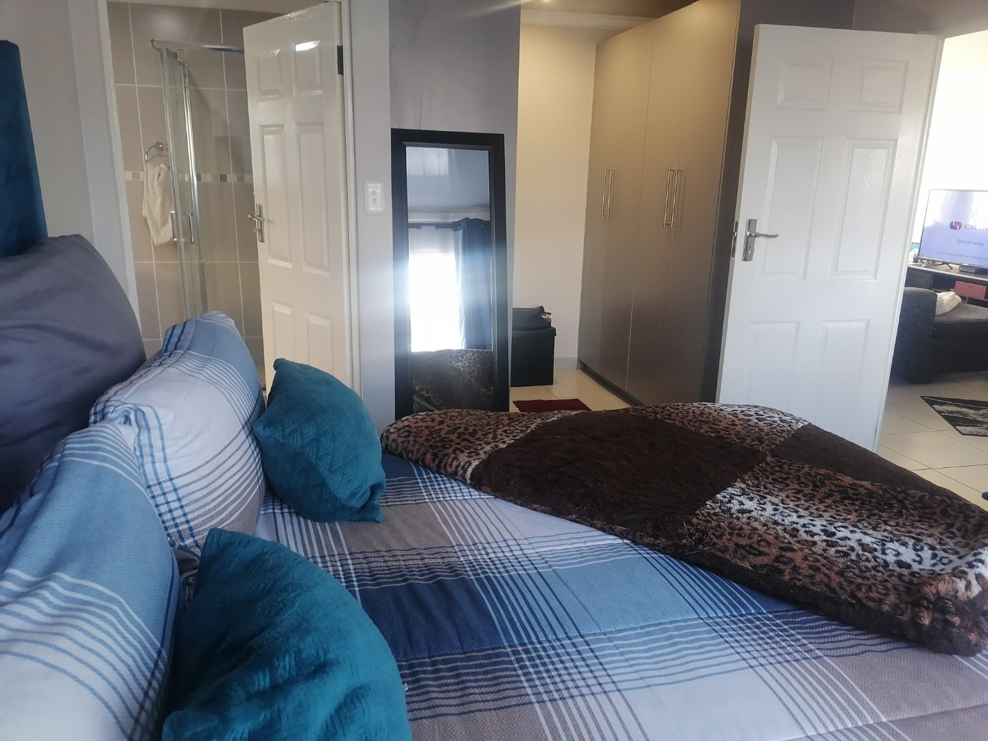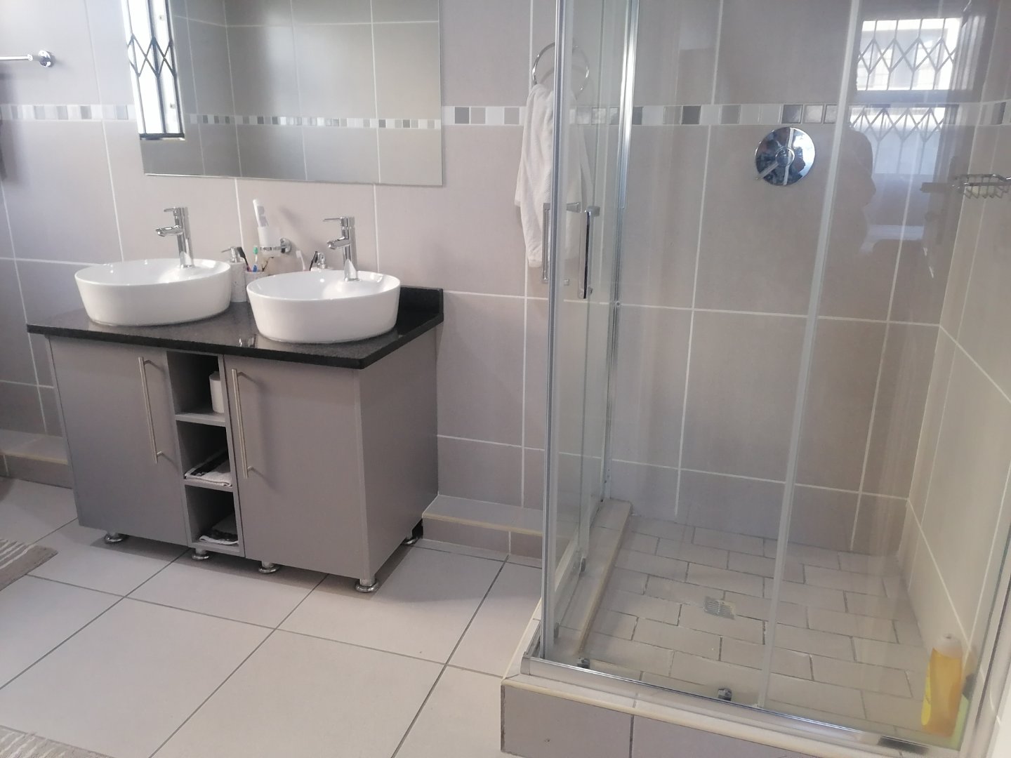 Step inside to find three spacious bedrooms, each fitted with ample built-in cupboards and sleek tiled flooring. The home features two contemporary bathrooms, both finished with quality touches that add a sense of luxury to your daily routine.