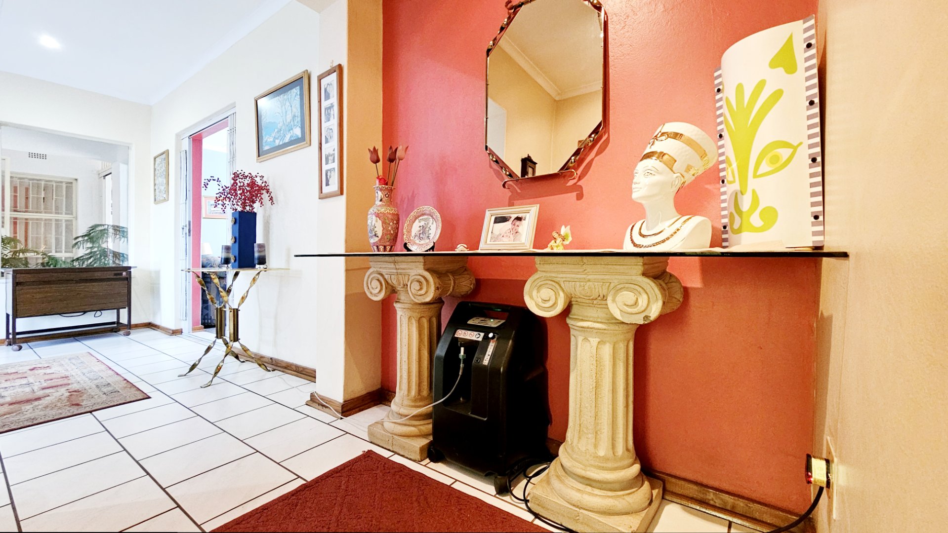 Outside, the home offers a double automated garage with a workshop, full domestic quarters, a sparkling pool and a lapa as well as a manicured garden with irrigation.
