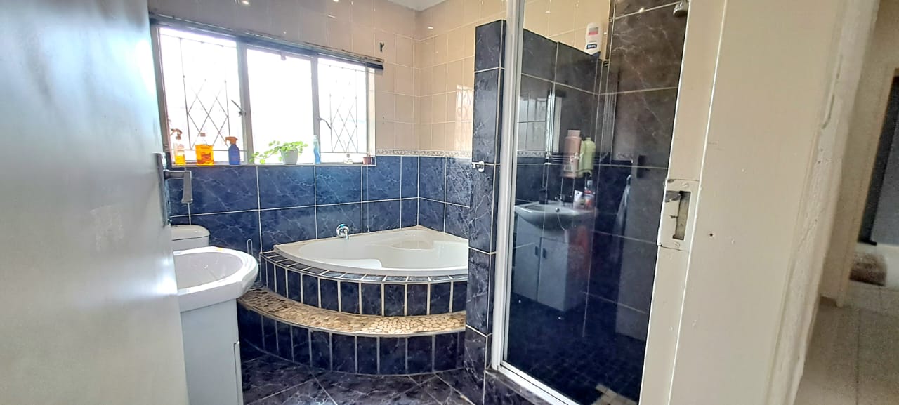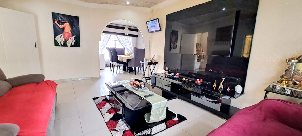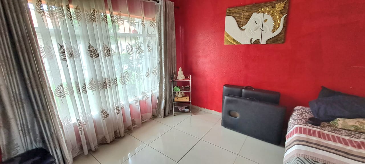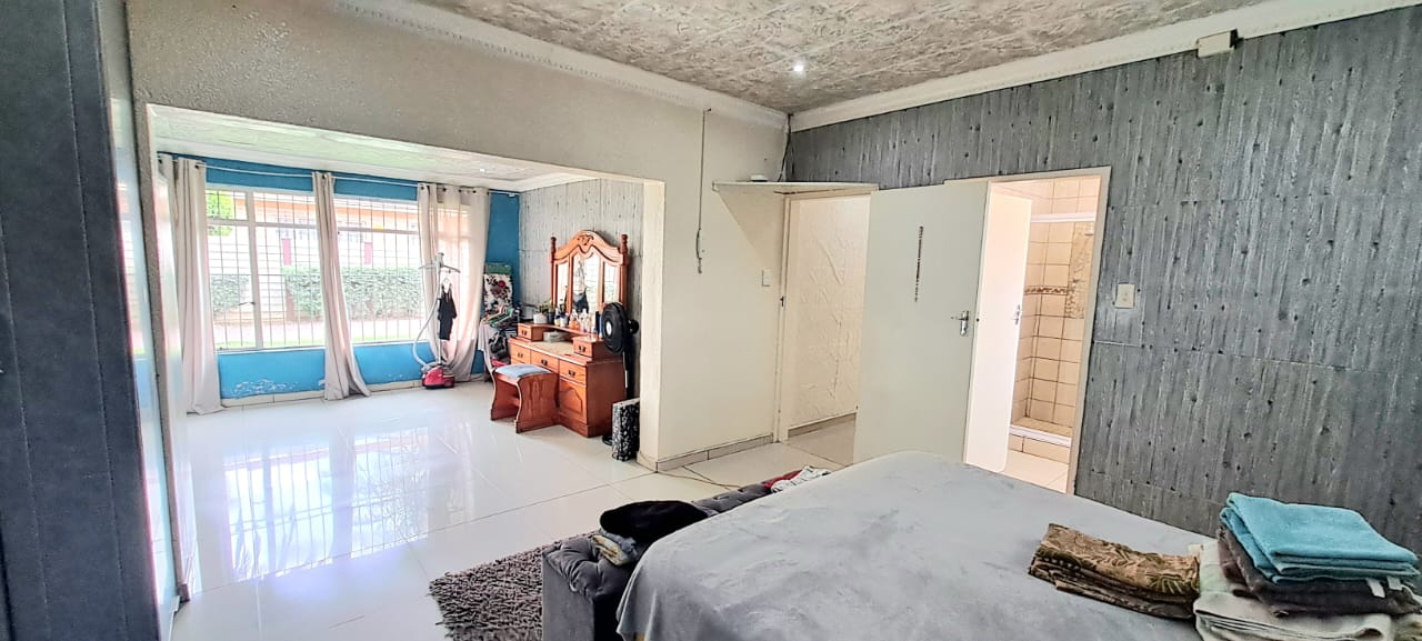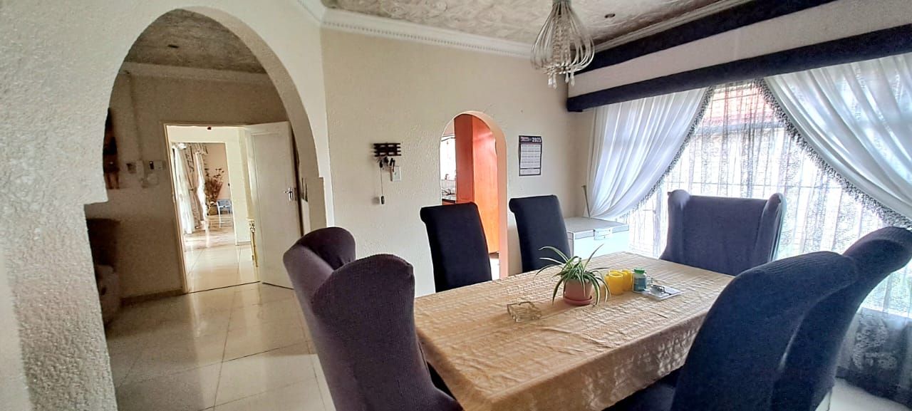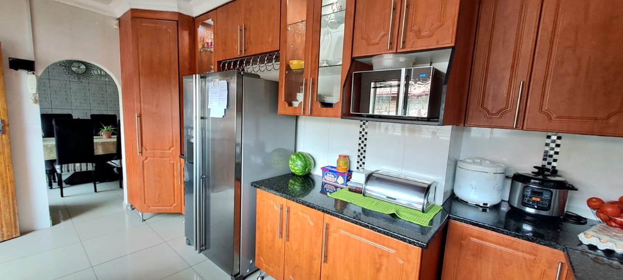 There is another spacious open plan lounge and dining room area, and a good sized modern wooden kitchen, that offers ample cupboard space, granite tops and electrical stove.