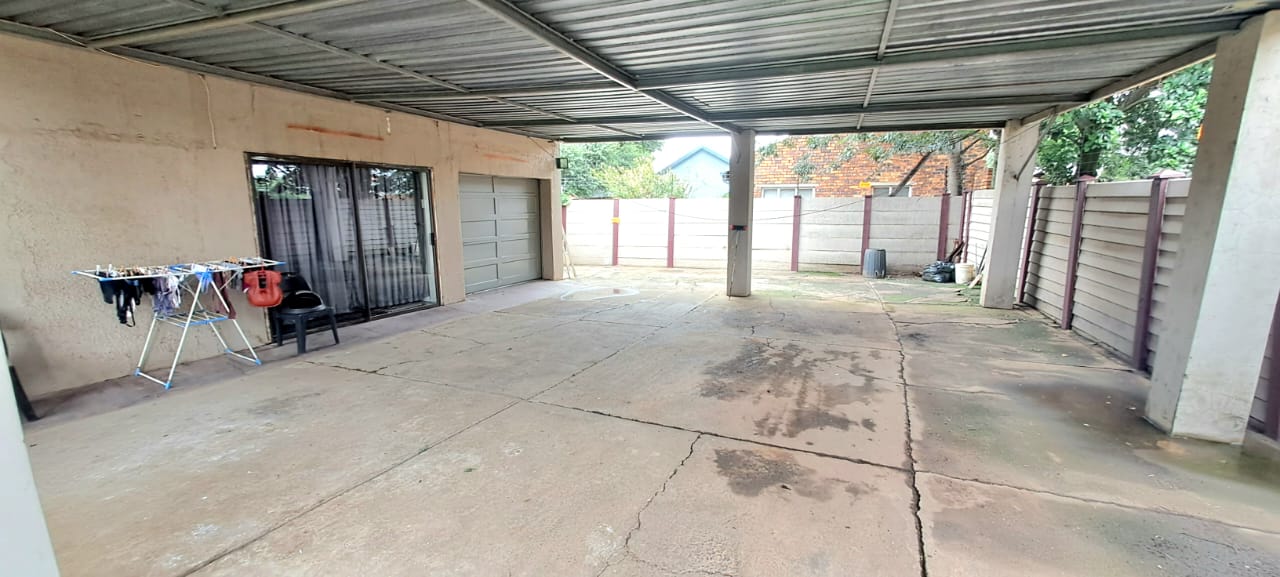 There is a garage that fits 2 vehicles and a carport that can fit 3 to 4 cars