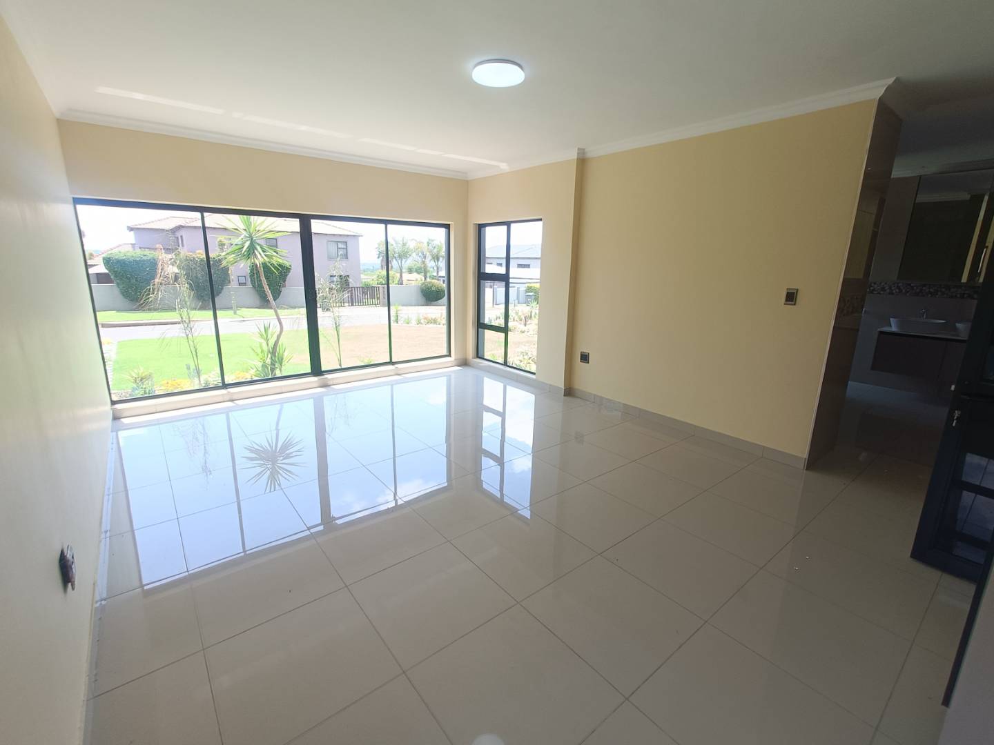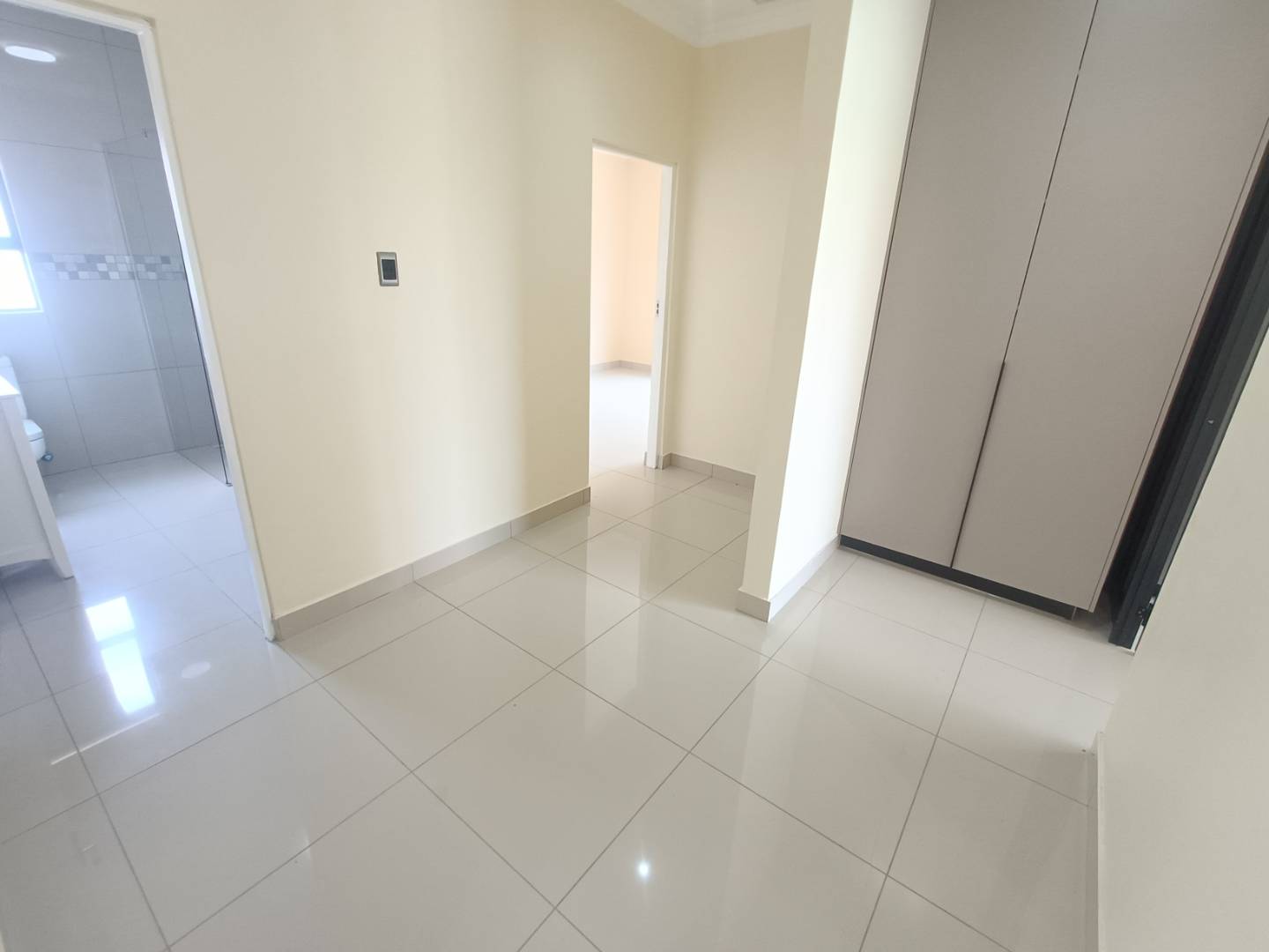 The property includes three generously sized bedrooms, with the main bedroom serving as a luxurious retreat. It features sliding windows that invite natural light, a beautifully appointed en-suite bathroom, and ample cupboard space.