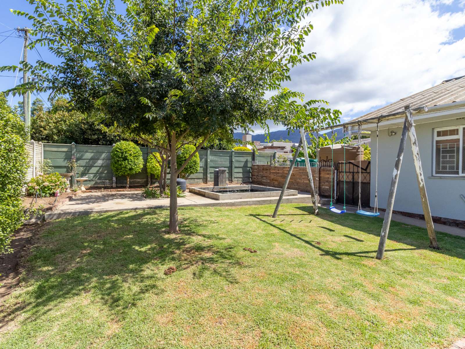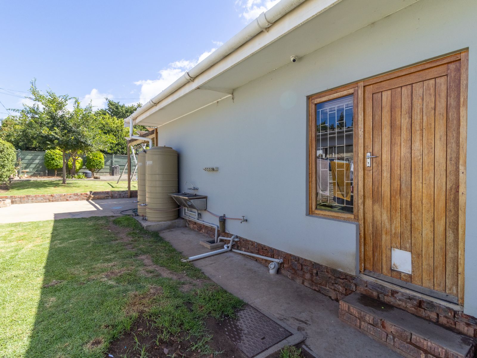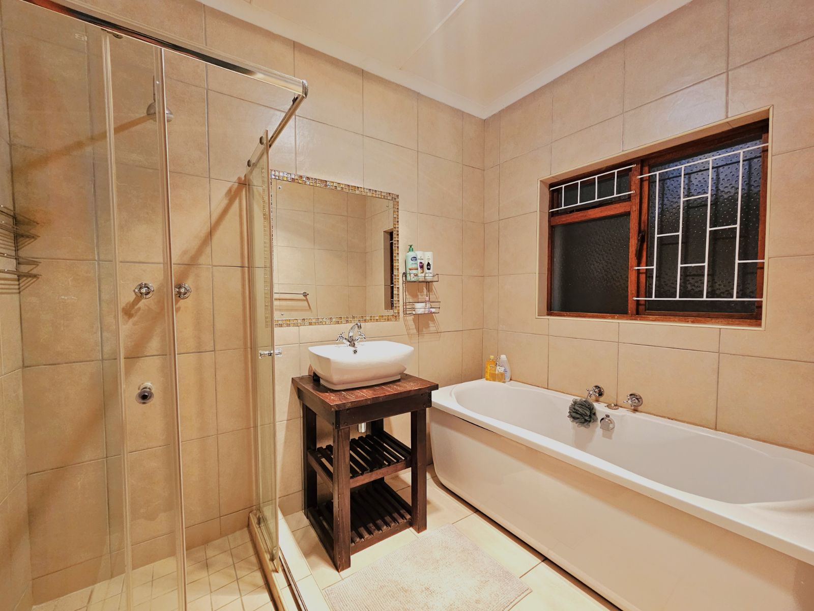 A warm welcome awaits you in the open plan living and dining area that flows into the kitchen and bedroom hallway. The kitchen has a built in oven and ample cupboard space. A laundry and scullery is situated next to the kitchen and gives access to your back garden. 3 spacious bedrooms await down the hallway, while a guest bedroom is situated in the entertainment area. A full family bathroom serves 2 bedrooms, while the remaining 2 bedrooms each have an en-suite bathroom.