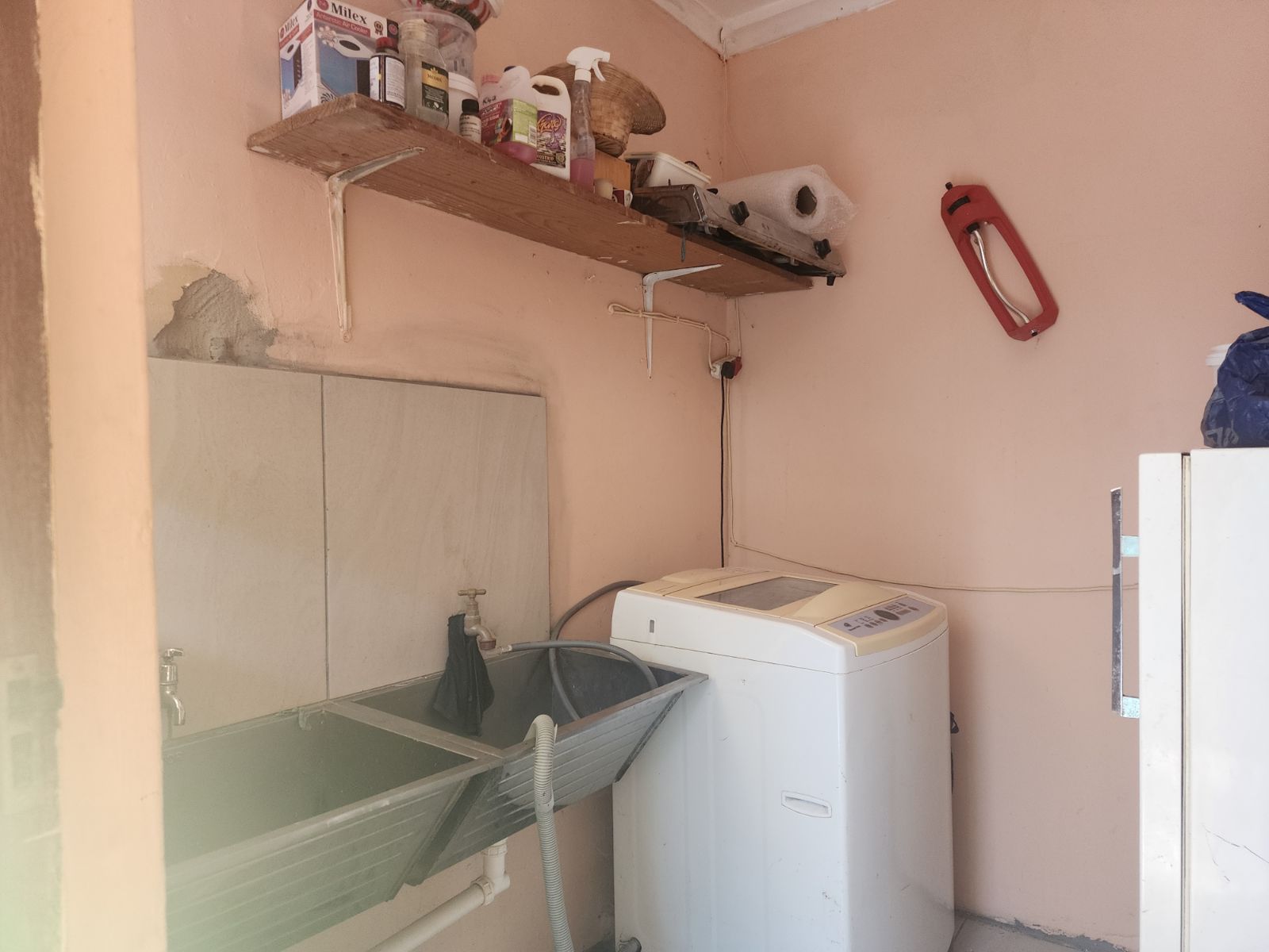 The house features three spacious bedrooms, Two include build-in cupboards, while the third has its own bathroom with a shower, basin and toilet - offering potential for conversion into a small flatlet or guest suite. The main bathroom includes a bath and basin and there is a separate toilet for added convenience.