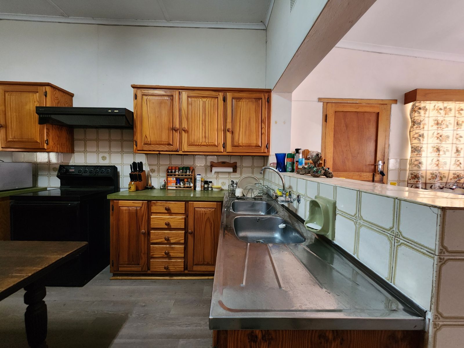 - Kitchen with ample cupboards, free-standing electric stove & extractor fan