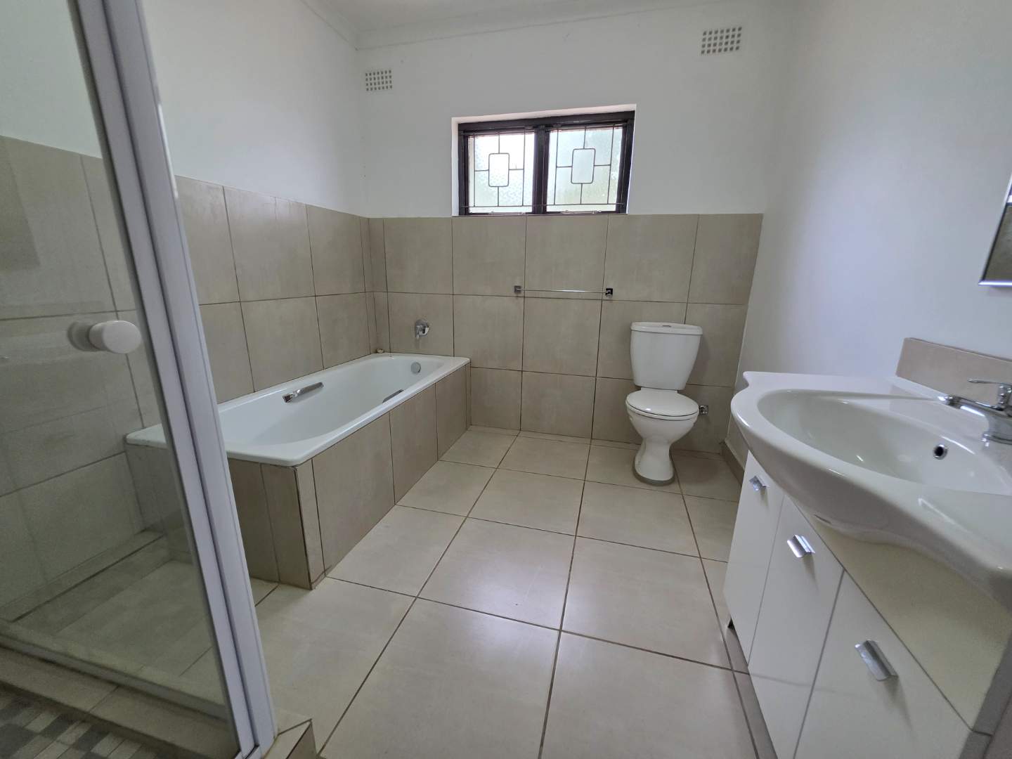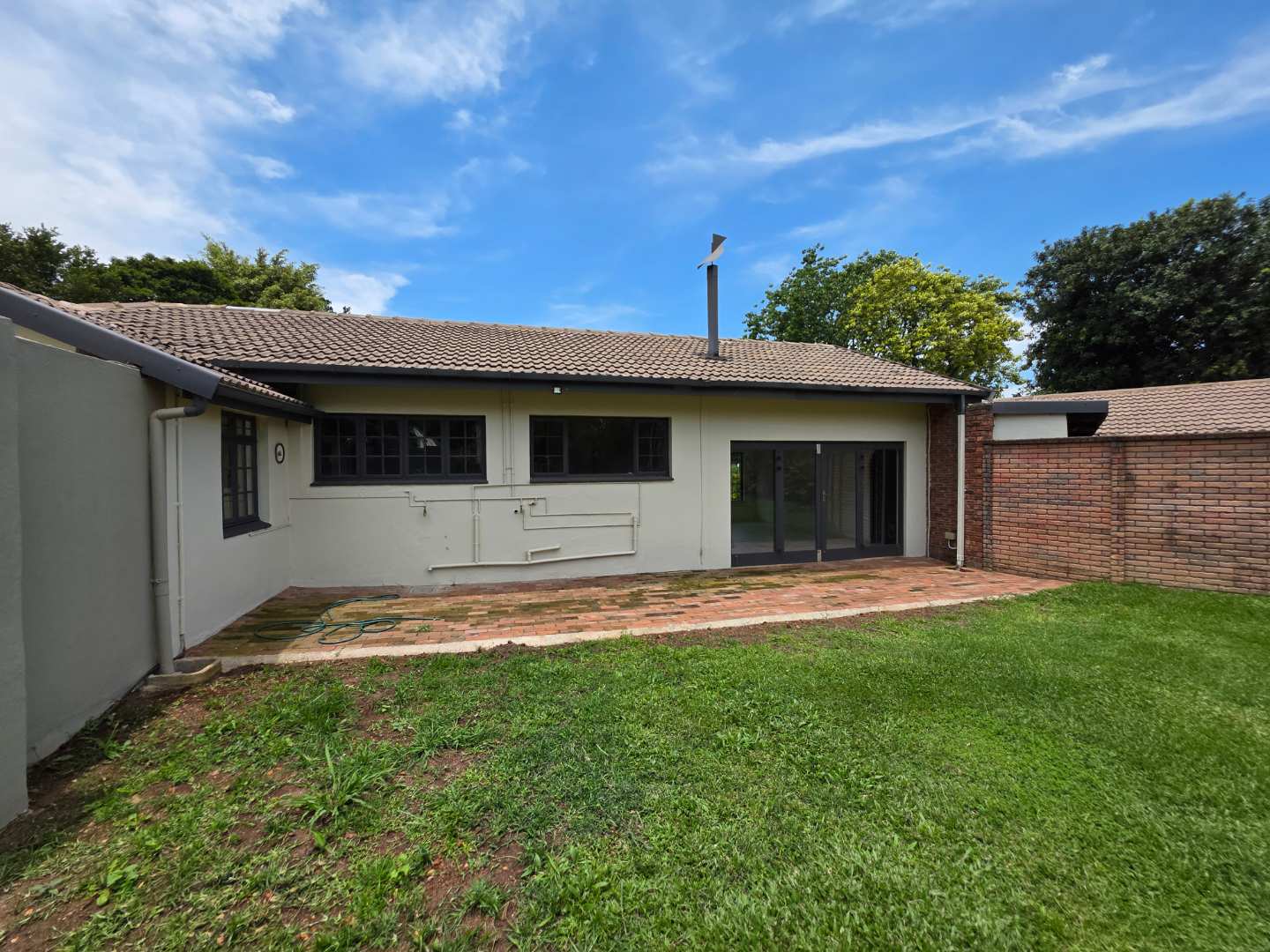 The home features four bedrooms, all with built-in cupboards. The air-conditioned main bedroom includes its own en-suite bathroom, while an additional bathroom with separate loo cater comfortably to the rest of the household.