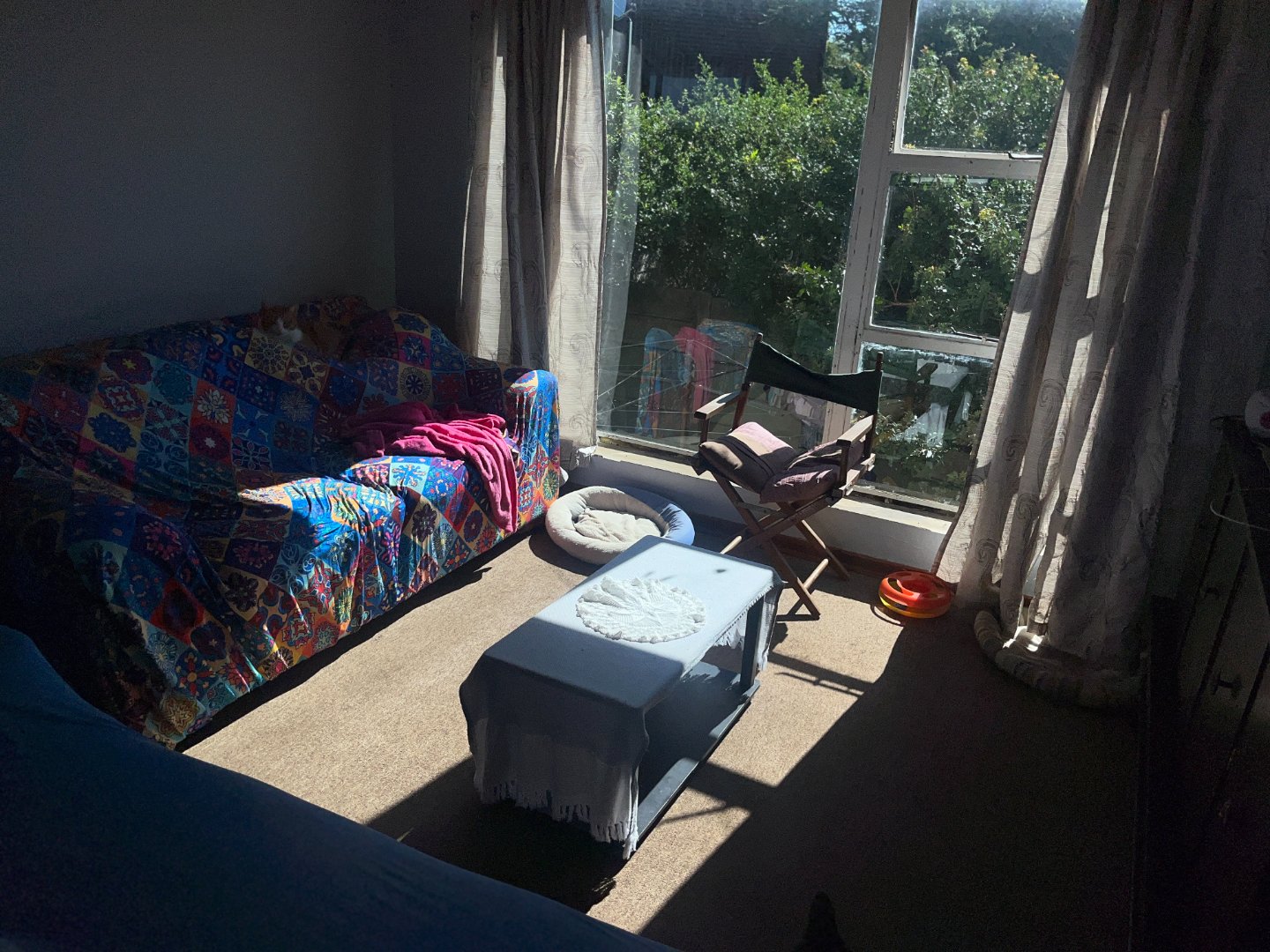 Inside, you’ll find a sunny open-plan lounge and dining room with fitted carpets, creating a warm and inviting atmosphere. The home offers 2 bedrooms, 1 bathroom, and a separate toilet, with a step-down layout leading to the kitchen, bedrooms, and bathroom.