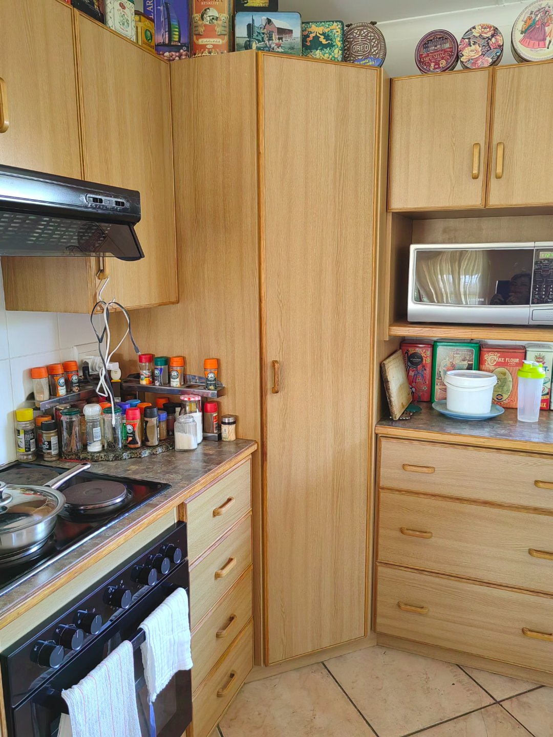 The open-flow layout from the lounge and dining area into the kitchen creates a warm and inviting atmosphere. The kitchen offers generous cupboard space, perfect for easy, organized living.