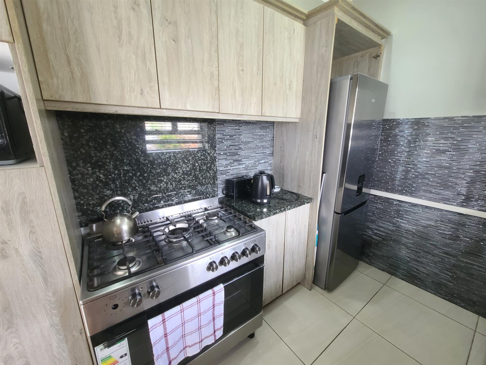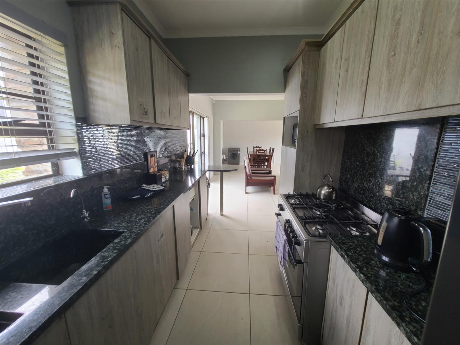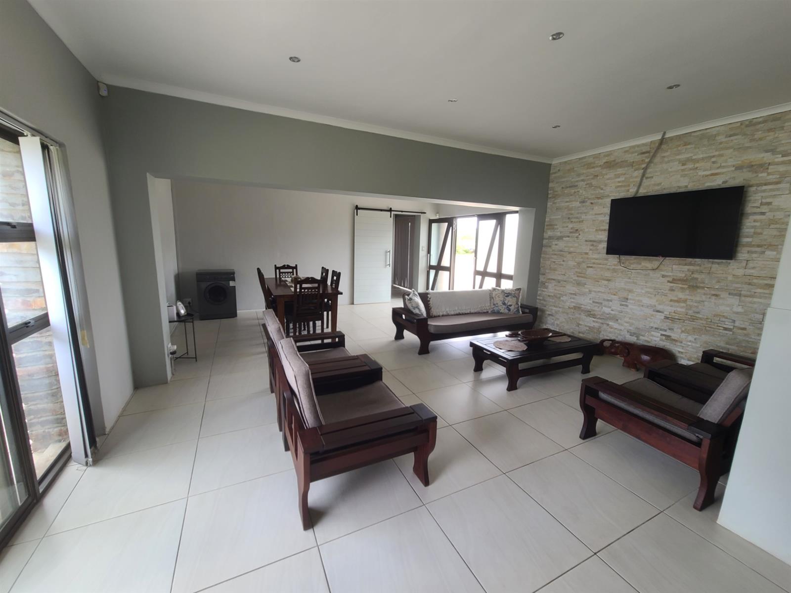 This home is situated within walking distance to the beach and the Zeekoeiriver mouth and estuary, under 500m by foot. It consists of 4 bedrooms, all with built-in cupboards, 2 bathrooms with the main being en-suite. There is also a separate guest loo. An added bonus for the stunning summer months is that 2 of the bedrooms have air conditioning. The open-plan lounge-dining area runs through into a modern kitchen of which the granite tops and tiling are recently renovated. The back yard is lush lawn and is enclosed. There is also an outside shower for those "straight from the beach" days, as well as a outer storeroom.