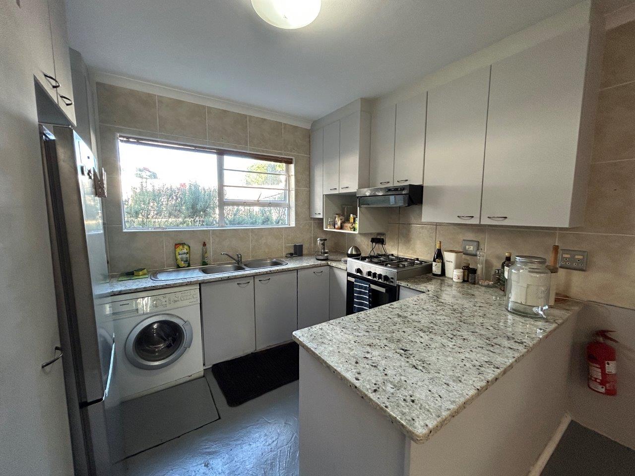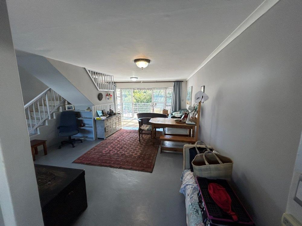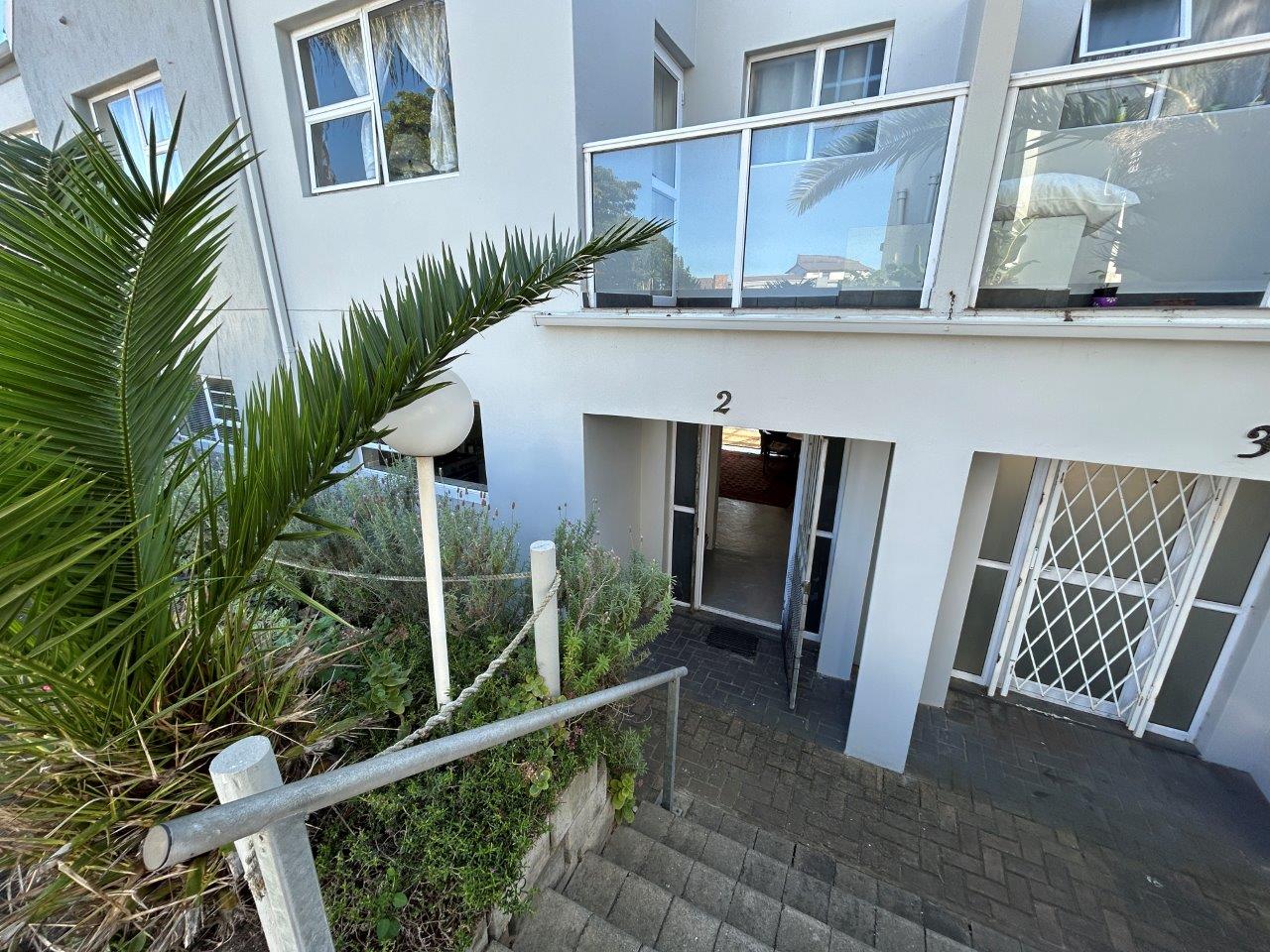 The ground floor welcomes you into a lovely open-plan lounge, dining area, and well-designed open plan kitchen that also flows out onto a covered patio area with a built in stainless steel braai. - ideal for entertaining while enjoying the kloof views. The kitchen includes a gas hob with electric oven and extractor fan, a double basin, pantry cupboard, and space for a fridge and washing machine. Two designated parking bays are also included with the unit.