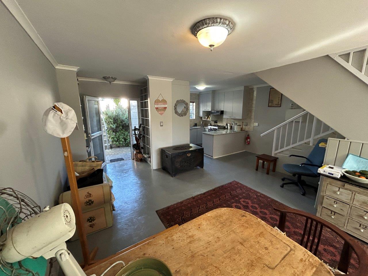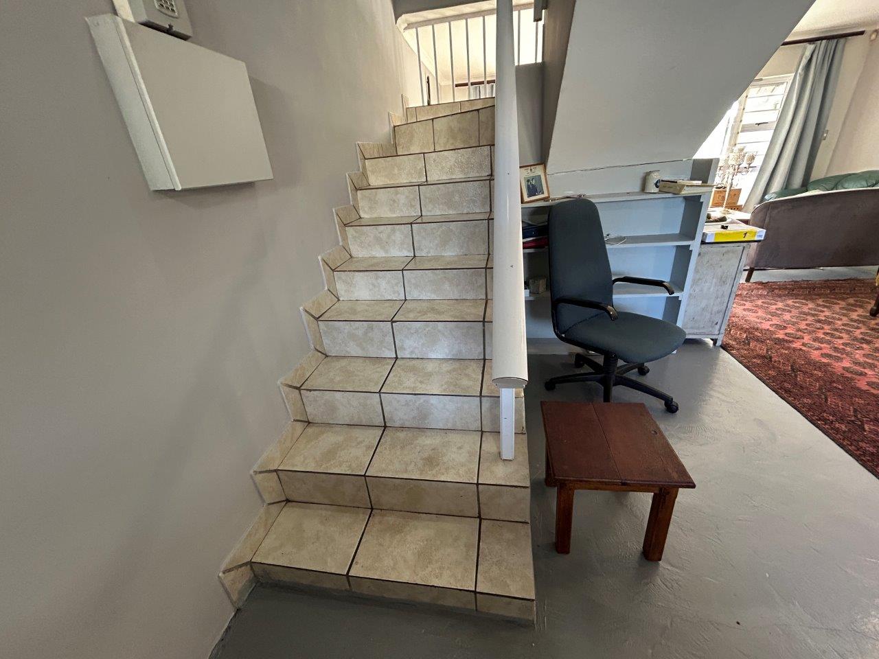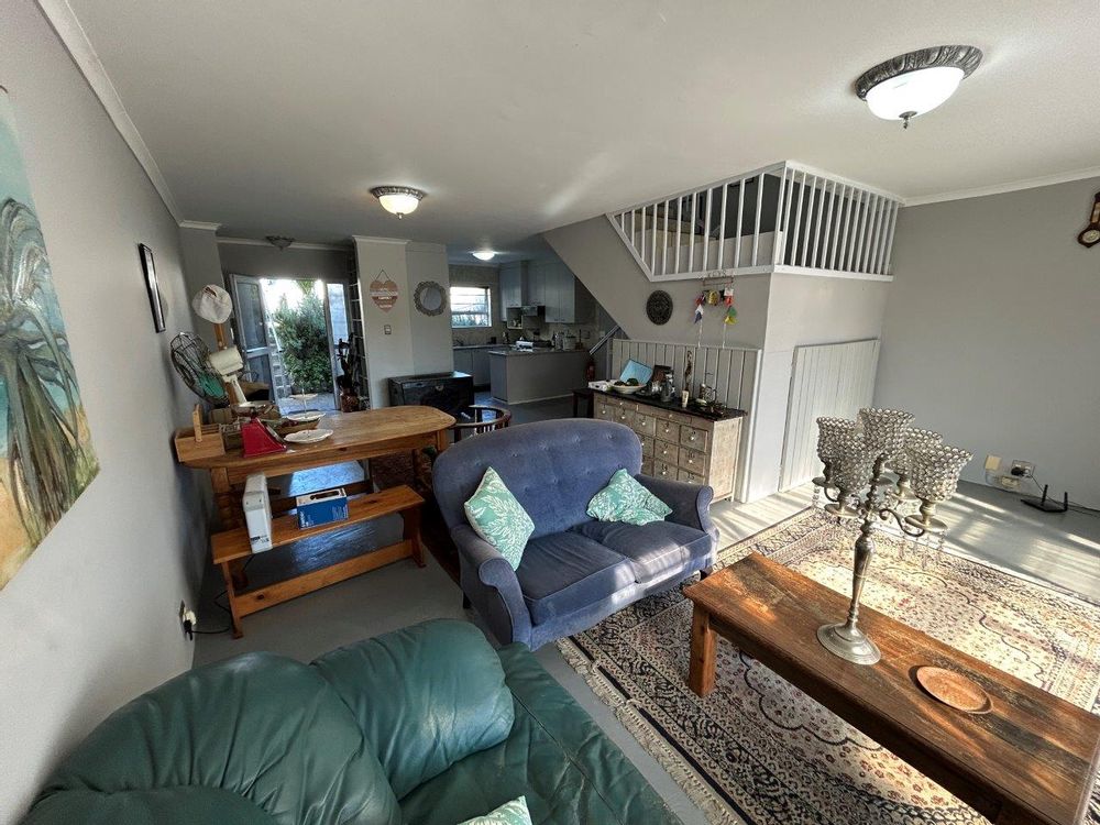 The ground floor welcomes you into a lovely open-plan lounge, dining area, and well-designed open plan kitchen that also flows out onto a covered patio area with a built in stainless steel braai. - ideal for entertaining while enjoying the kloof views. The kitchen includes a gas hob with electric oven and extractor fan, a double basin, pantry cupboard, and space for a fridge and washing machine. Two designated parking bays are also included with the unit.
