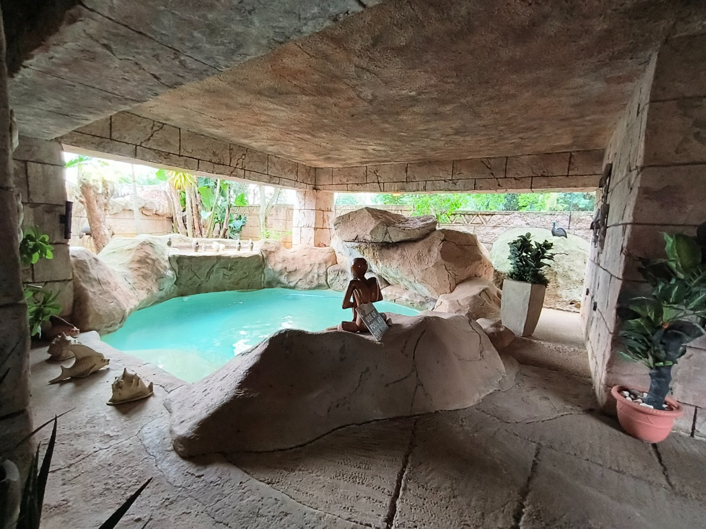 An undercover swimming pool and indoor garden for relaxation