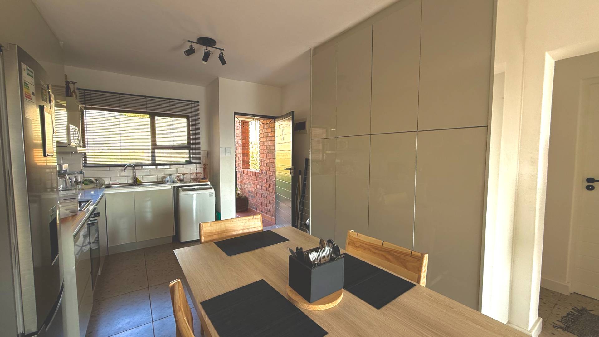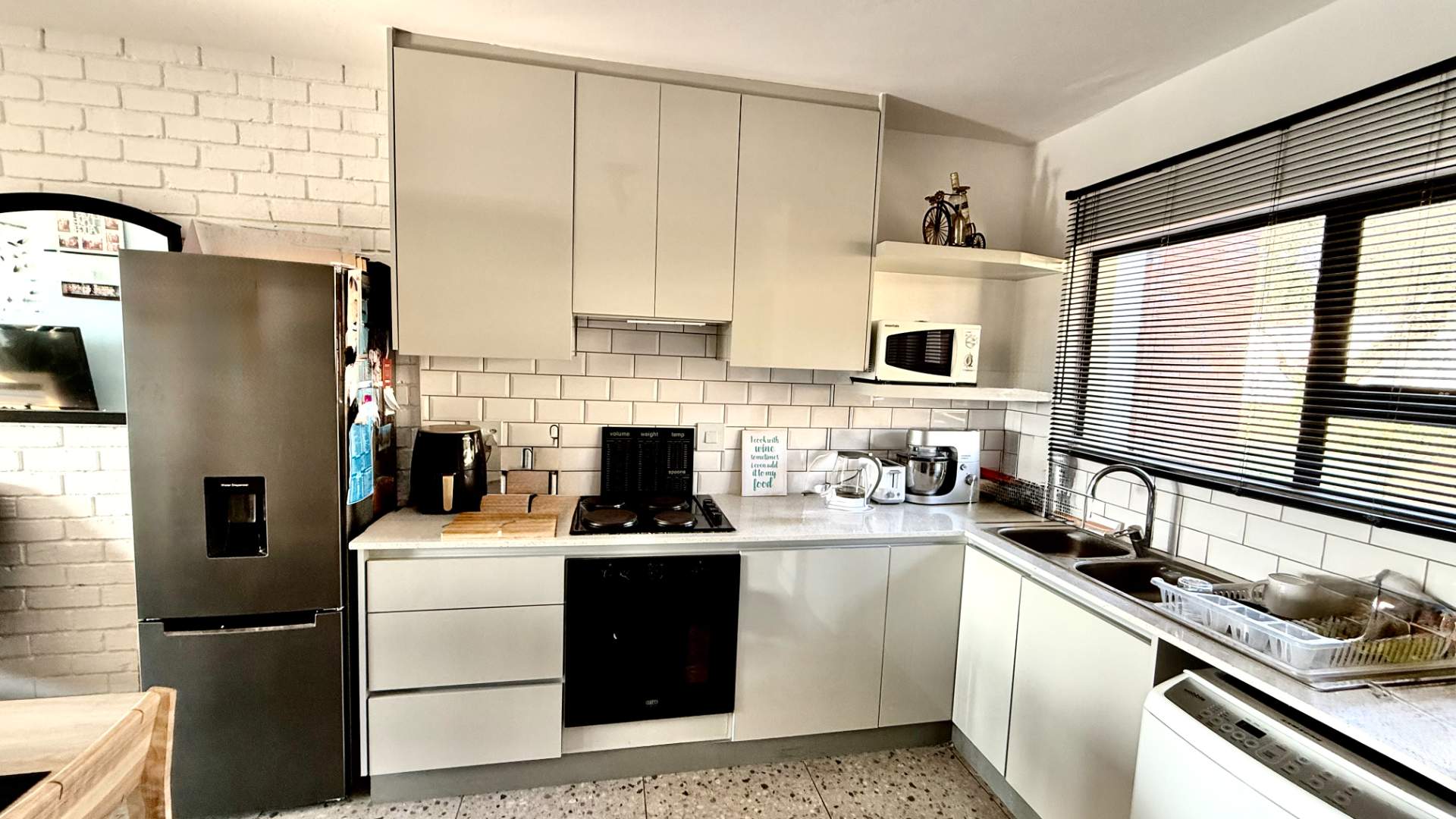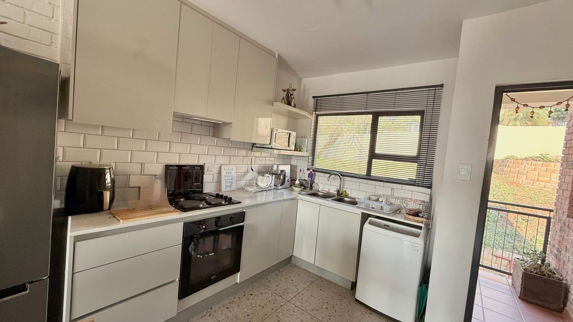 Inspired by Pietermaritzburg’s iconic redbrick architecture, the home features clean lines and a contemporary, minimalist aesthetic. The open-plan living area seamlessly integrates a sleek kitchen and lounge, complemented by tiled flooring for a fresh, low-maintenance finish. Glass sliding doors open onto a private, elevated balcony – ideal for morning coffee or unwinding in the evening.
