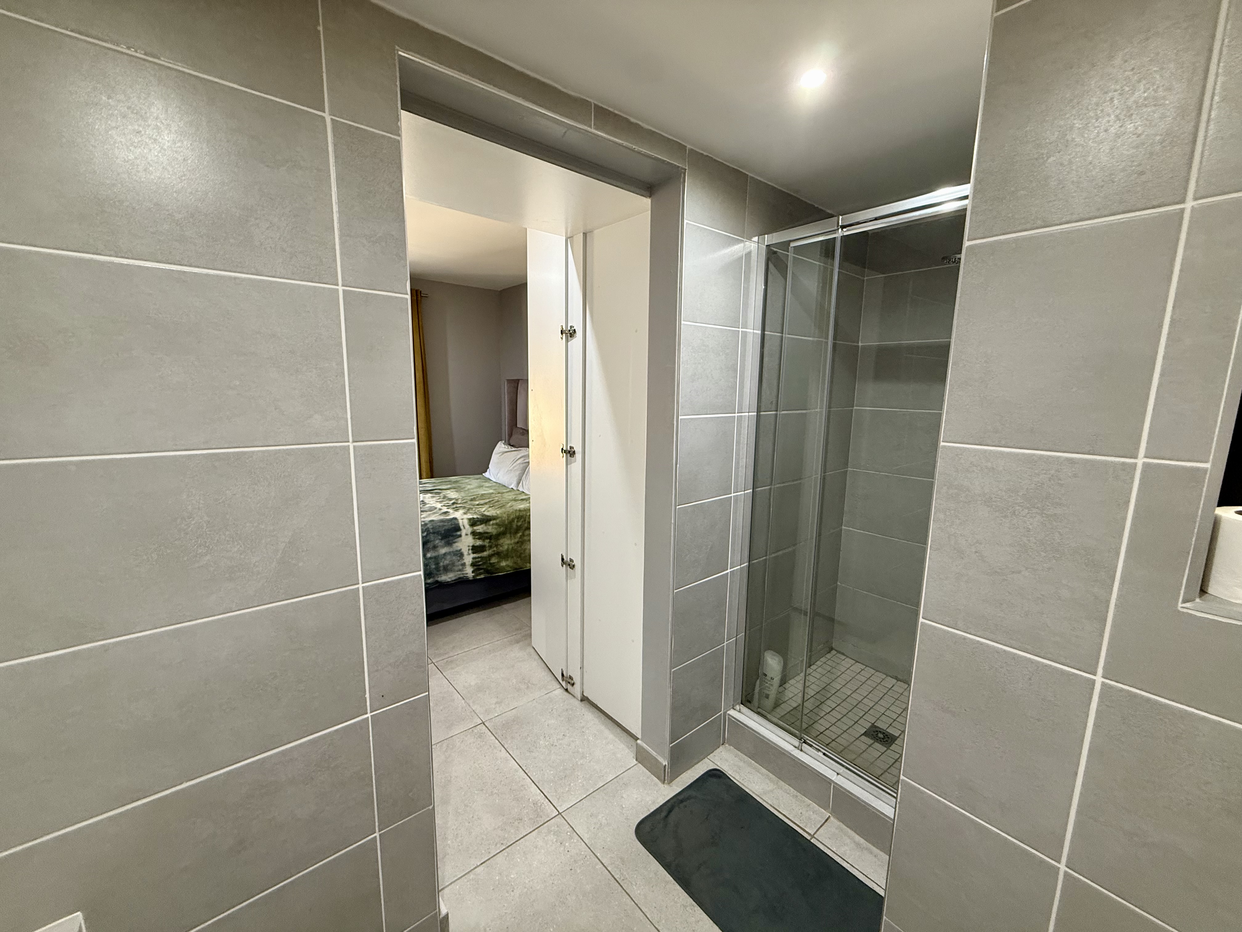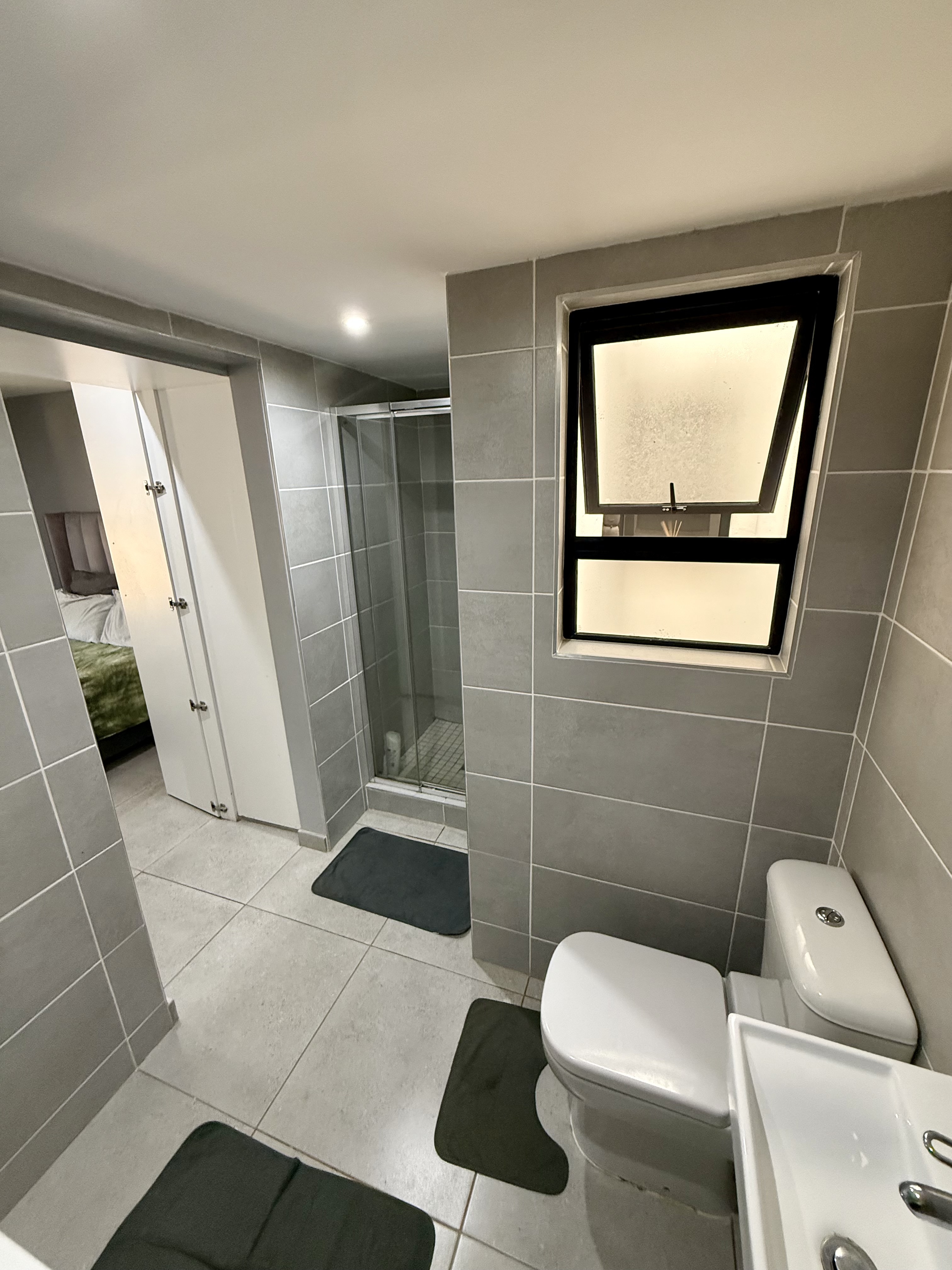 Inspired by Pietermaritzburg’s signature redbrick architecture, the apartment features clean lines and a minimalist aesthetic. The open-plan living area includes a sleek kitchen and a lounge, with tiled flooring throughout for a fresh and low-maintenance finish. Glass sliding doors lead to a private, elevated balcony, perfect for relaxed mornings or unwinding after work.