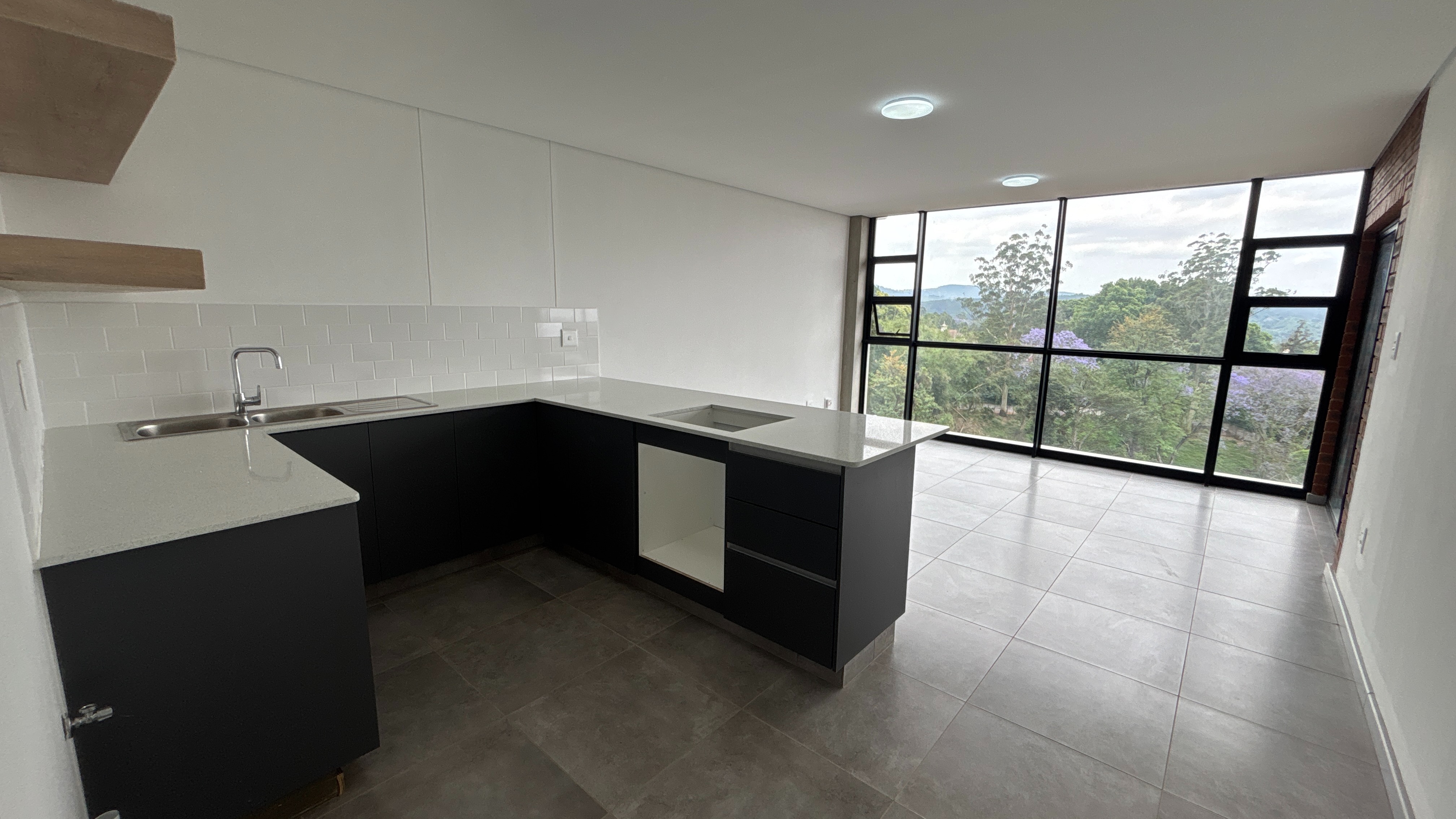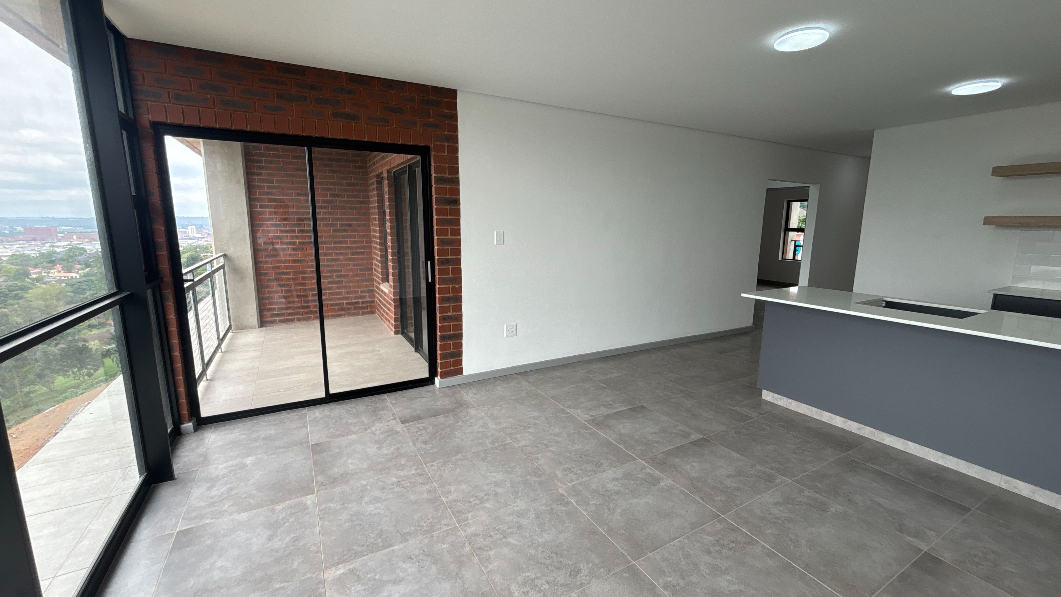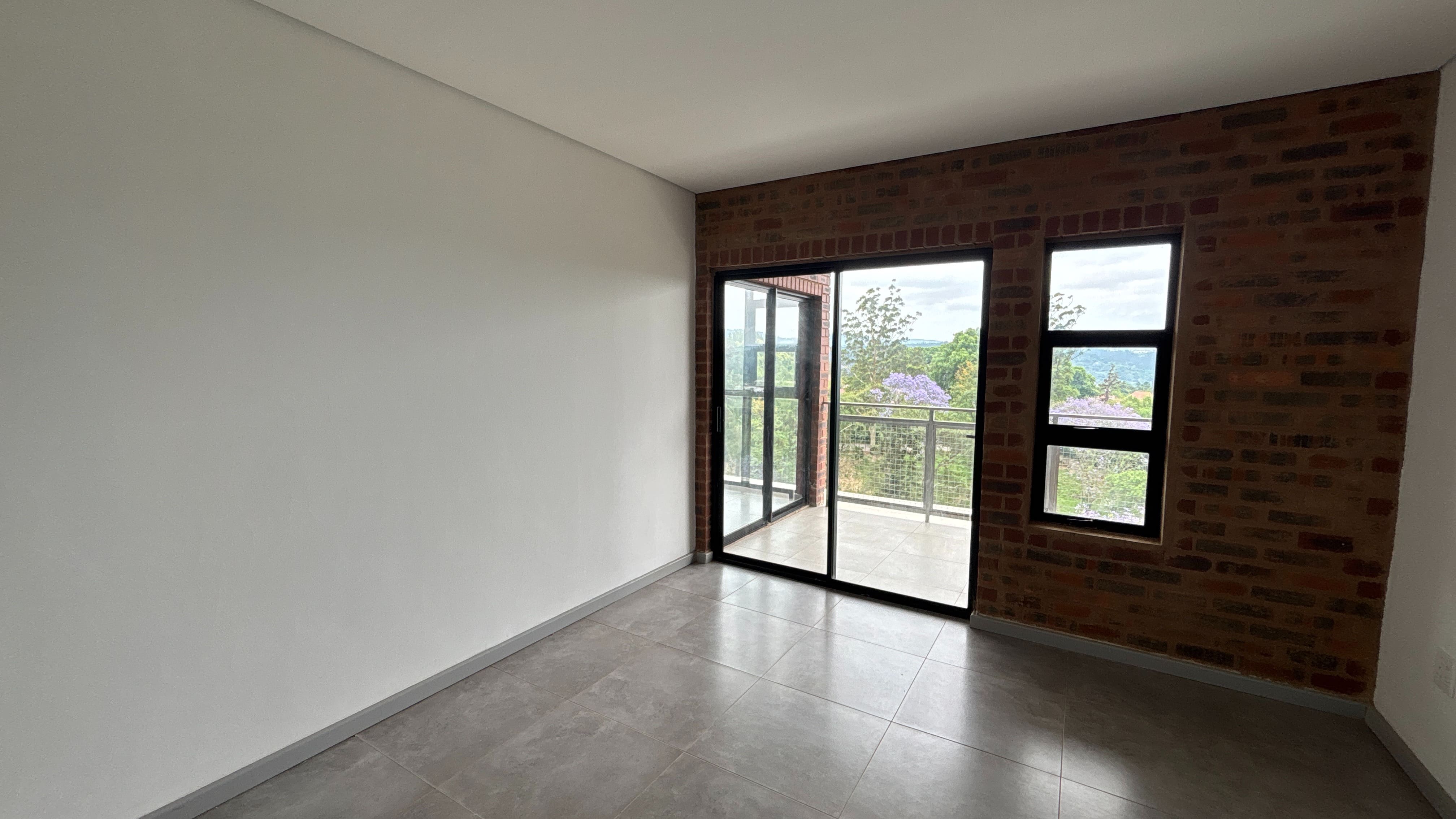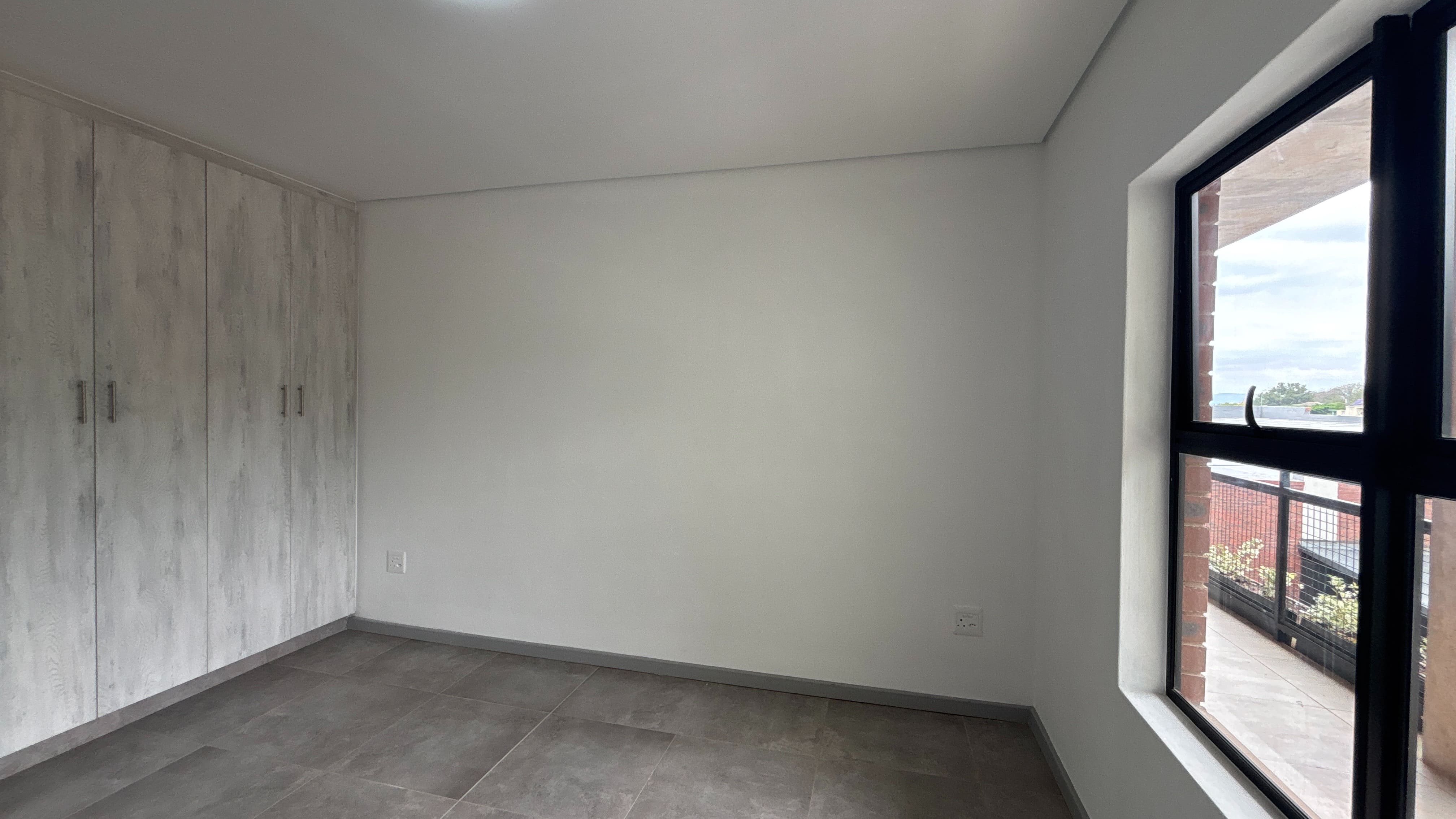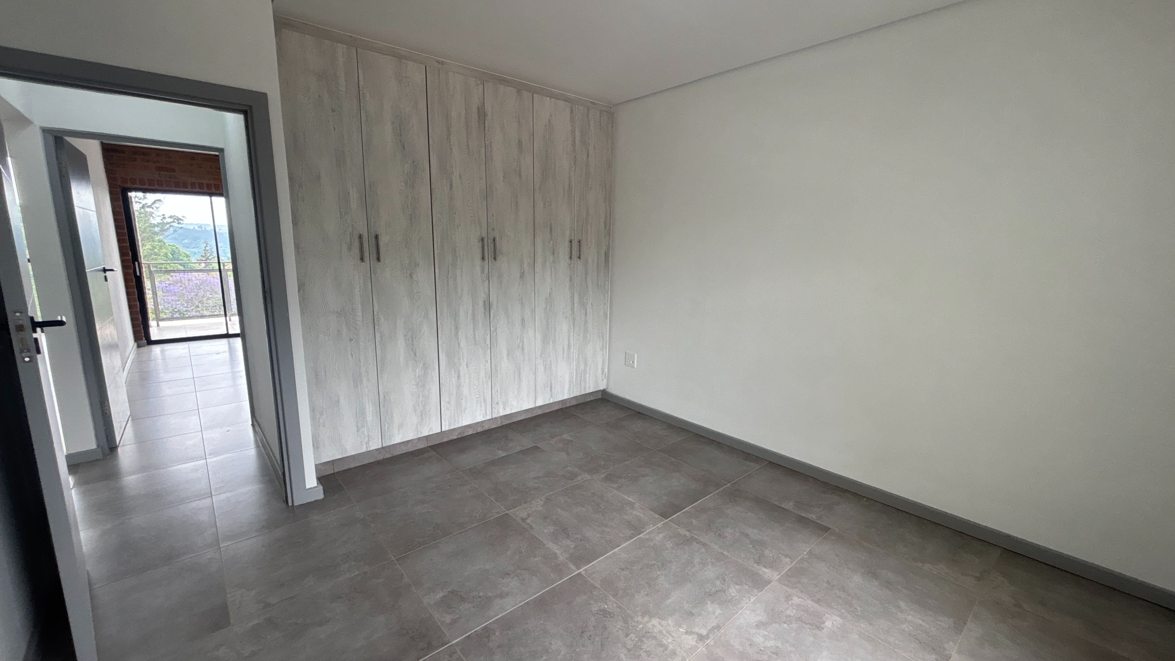 The two-bedroom, one-bathroom apartments at Arbour View offer a practical layout with modern finishes and secure living. Both bedrooms include built-in cupboards, and the open-plan kitchen and living area extends onto a balcony that brings in natural light.
