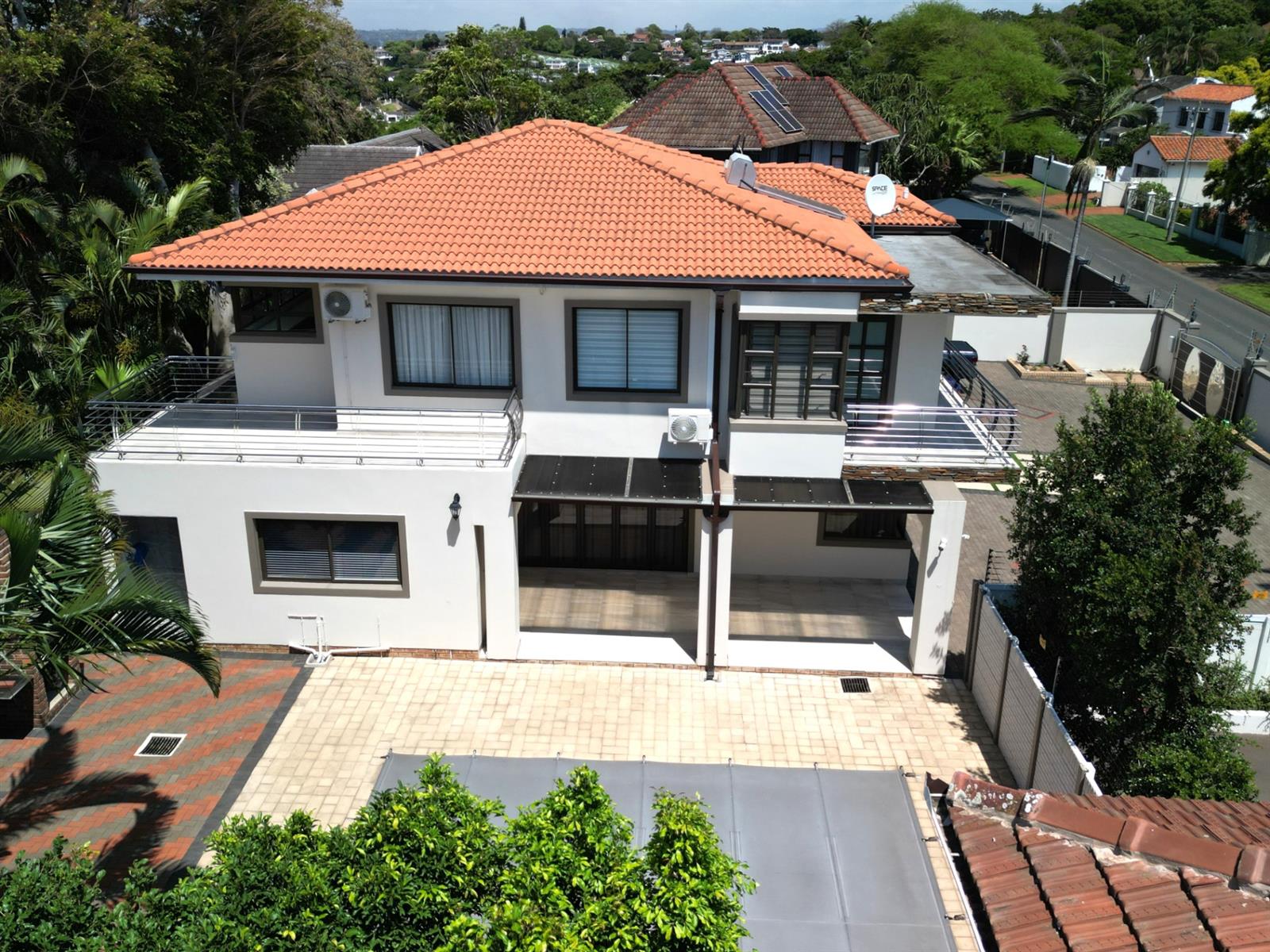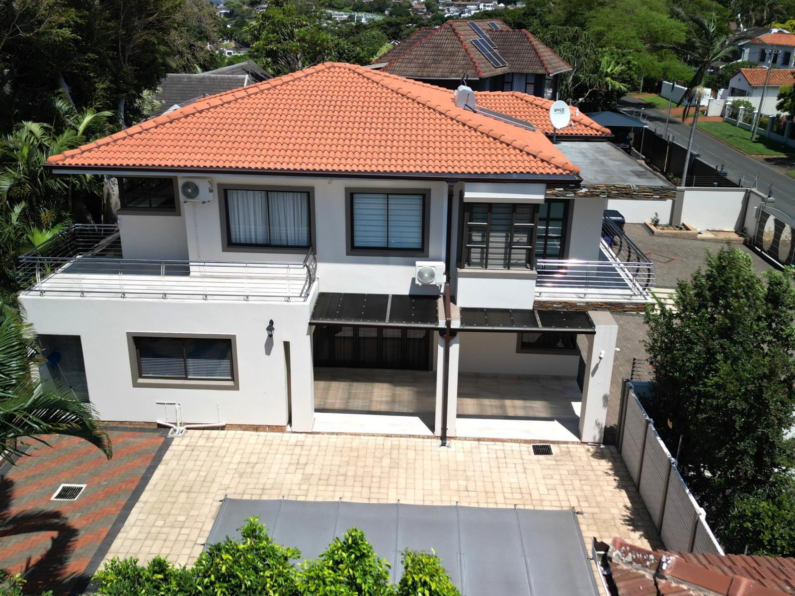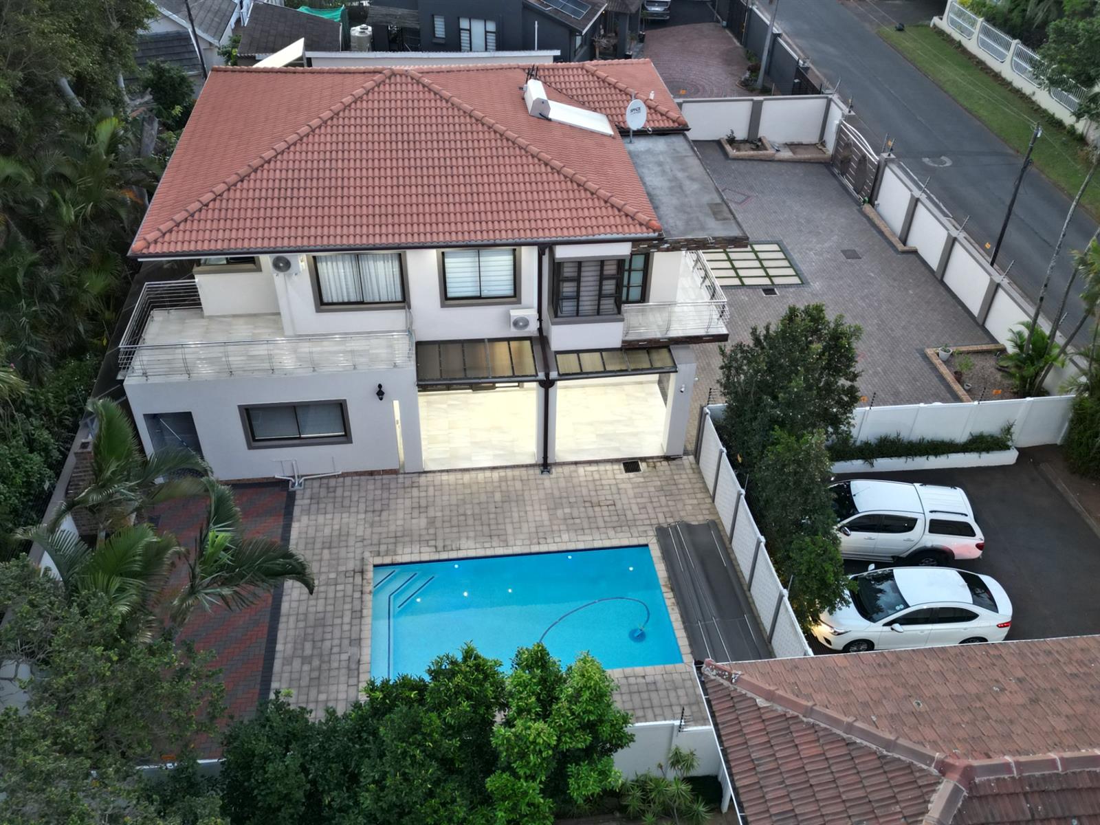 This prestigious property comes fully outfitted with premium appliances such as a refrigerator, washing machine, dishwasher and microwave. Additional features include energy-efficient solar geysers, a water saving jojo tank, air conditioning and stylish bespoke tea/coffee stations. The dining room and lounge flow effortlessly from the kitchen, creating a perfect setting for entertaining or family gatherings. Sliding doors lead to a charming veranda that overlooks the splash pool, making outdoor living a breeze.