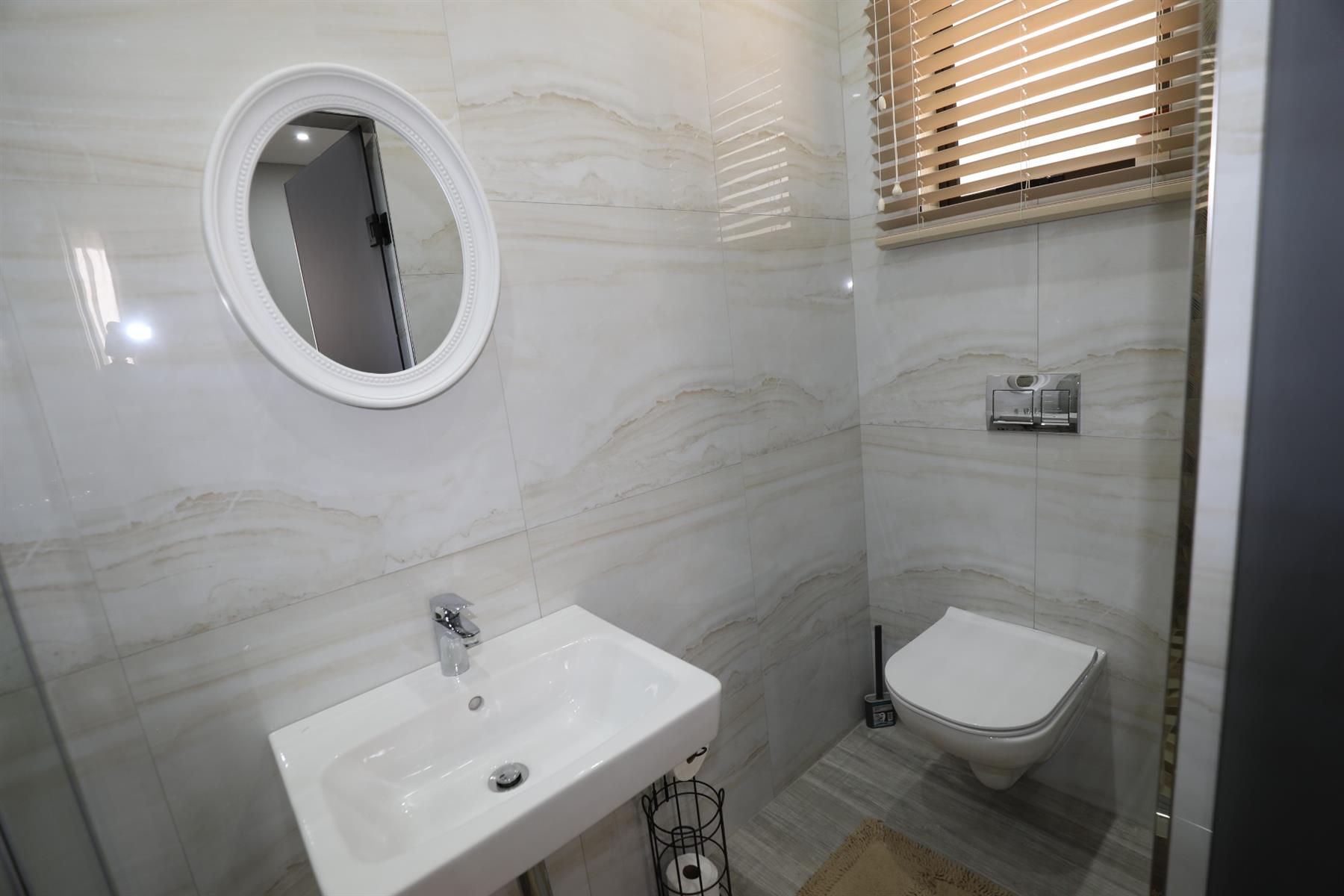 The exterior of the home is equally impressive, with a brick wall providing security and privacy. You’ll appreciate the charming balcony that offers a picturesque view of the surroundings. This home also includes practical amenities like a washing machine connection, dishwasher connection, and auto cleaning equipment, making daily chores effortless.