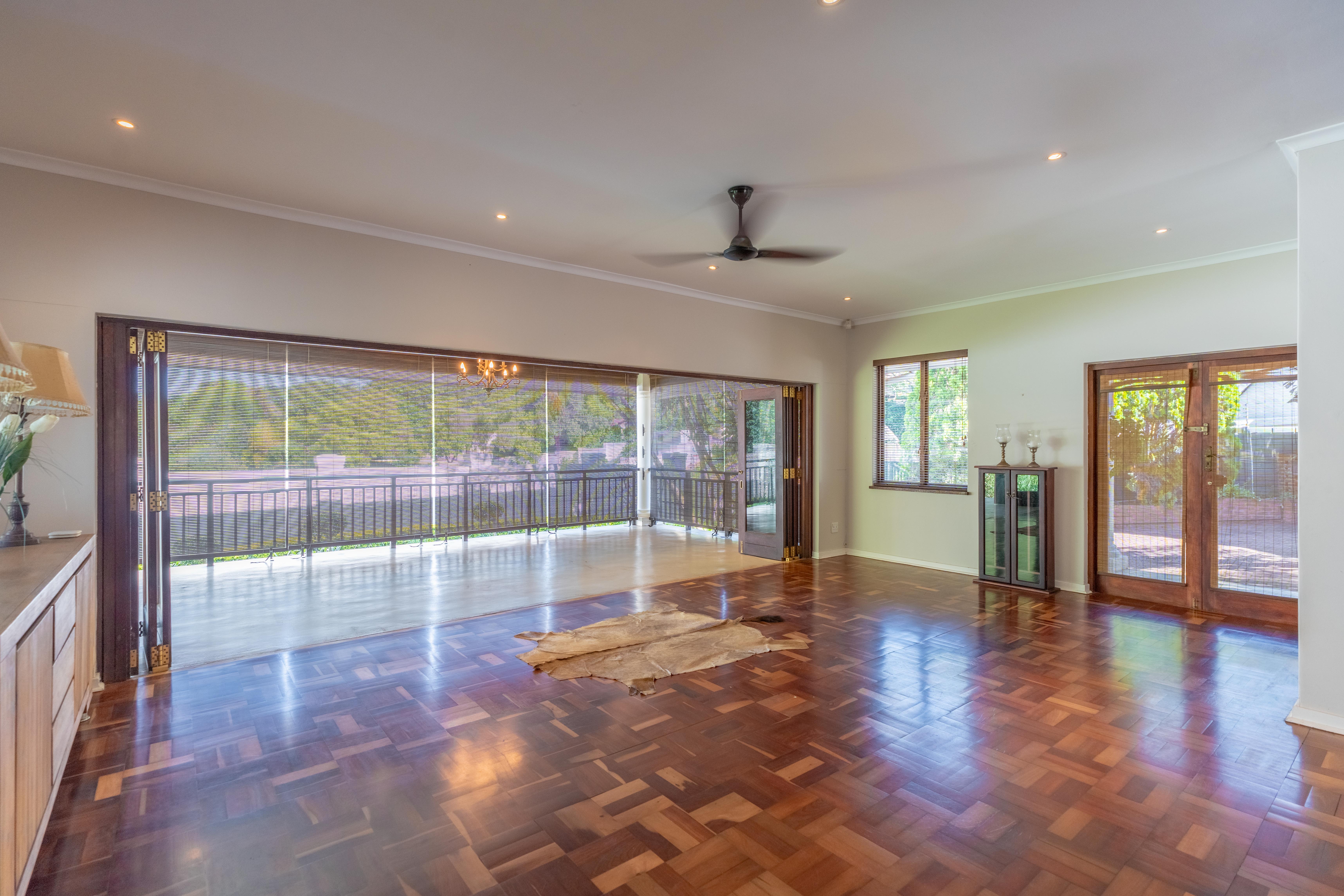 Along a short driveway, onto this pancake flat property and you're greeted by a meticulously maintained garden, which has been thoughtfully laid out. The sparkling pool and wooden cabin, along with the veranda in the backyard and patio in front make for great entertainment spaces. From the patio through the stack doors into the huge lounge, spacious dining room and modern kitchen. So there is a seamless flow between living, entertaining, cooking and relaxation areas.
