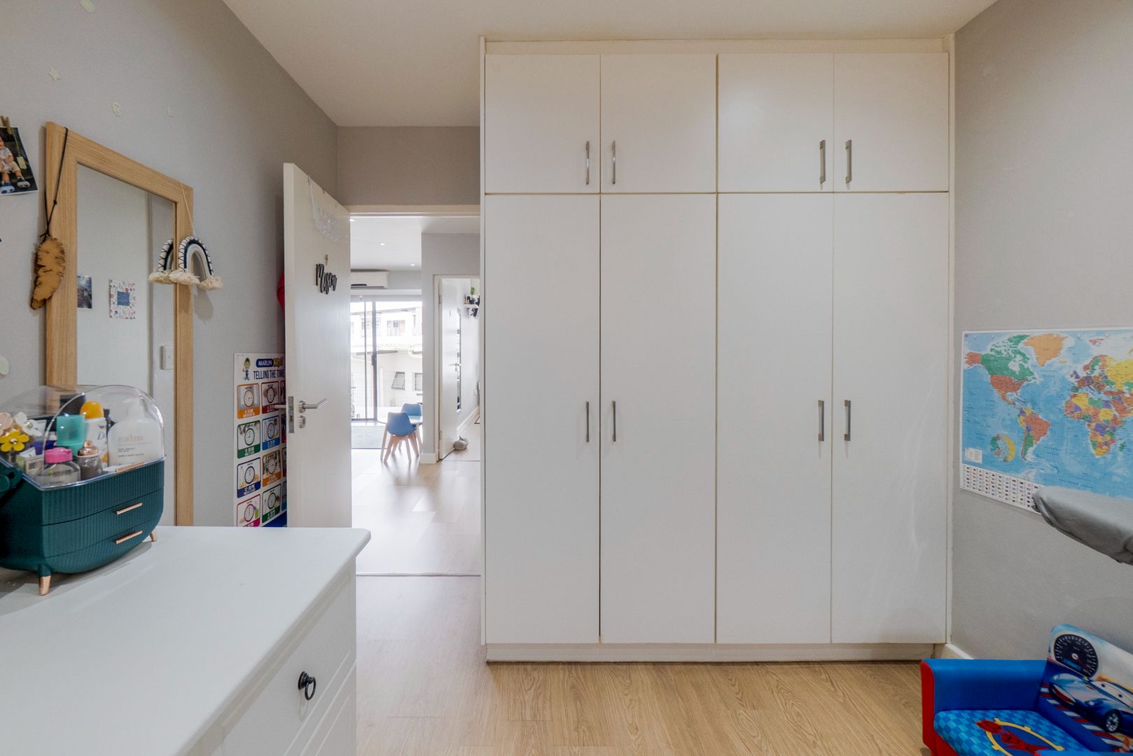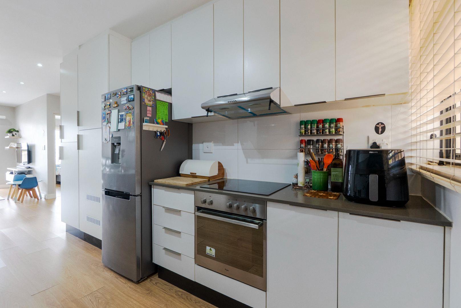 As you walk in, there is an open plan lounge, dining and kitchen. Additional cabinetry has been added to the kitchen with Caesar top counters. The spacious bedrooms have built in cupboards. The main bedroom and the lounge are fitted with air-conditioners. There is a private outside veranda.