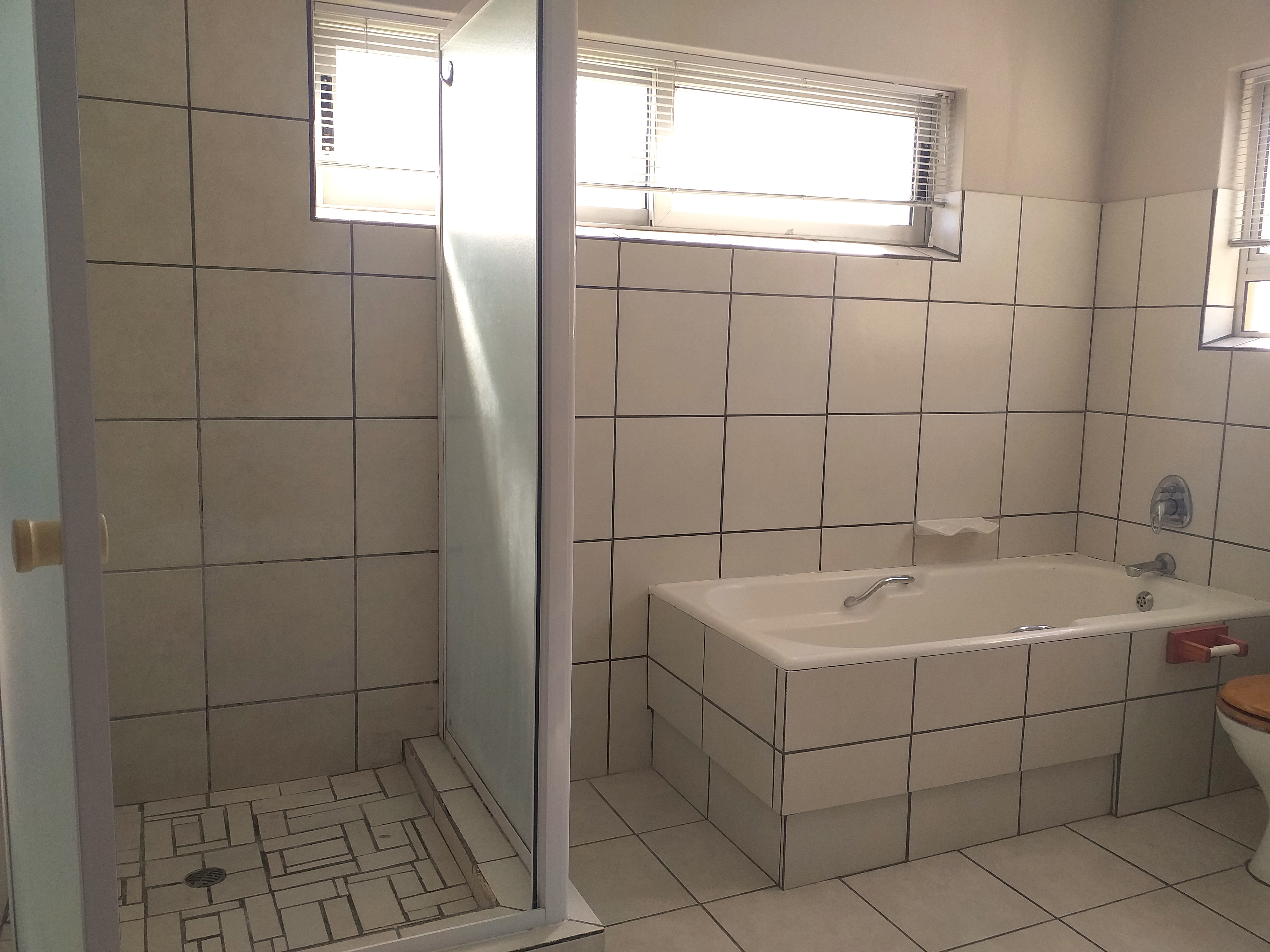 This spacious apartment has one bedroom and two bathrooms, both of which come with a shower. The living and dining areas are open-plan, and the kitchen features a granite top, stove, and built-in cupboard. There is a parking space available for one car. Tenants can also enjoy the use of the communal braai area and swimming pool