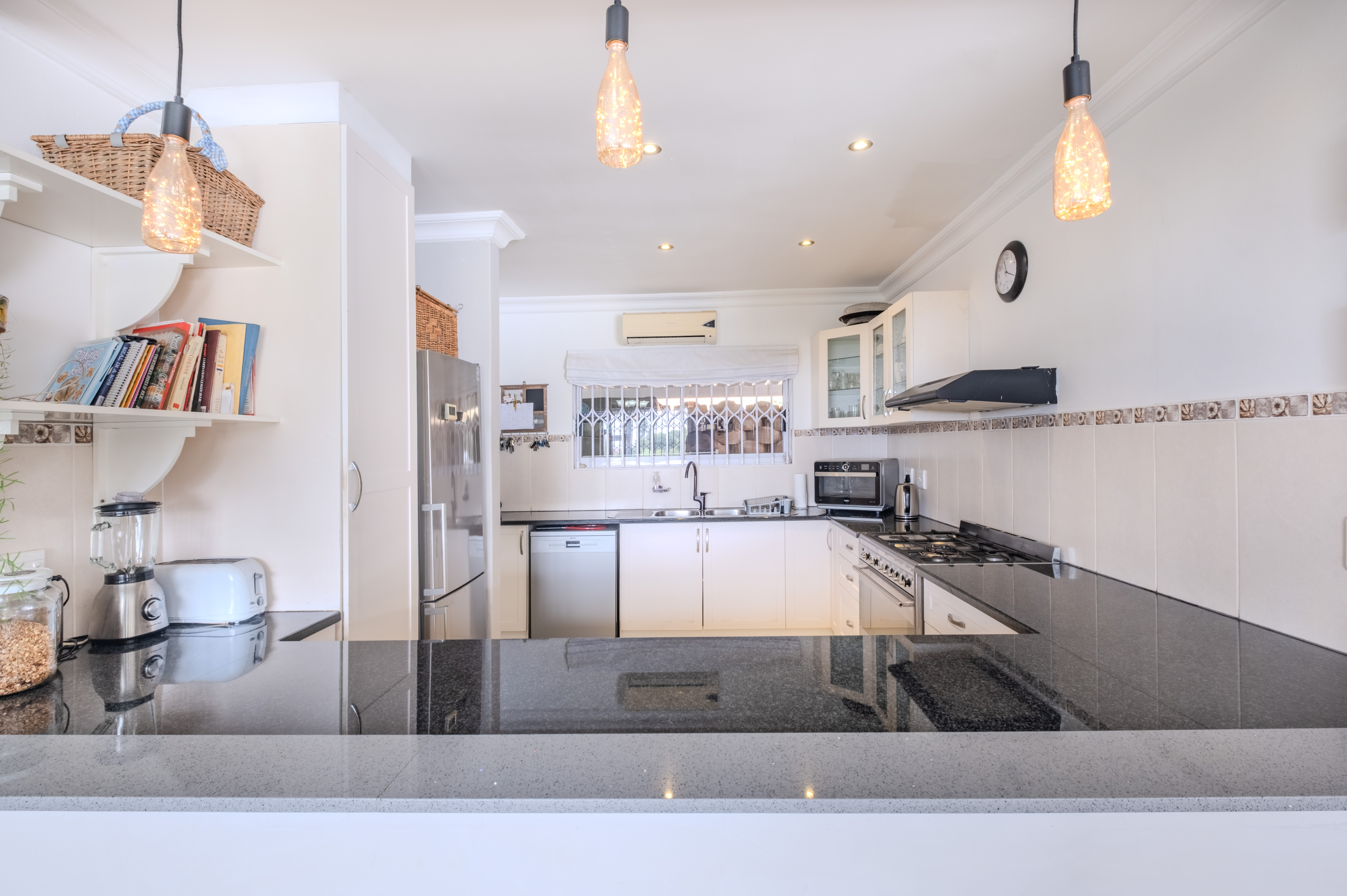 The open-plan lounge, dining, and living area flows seamlessly and is perfectly positioned to take in the spectacular sea views. The well-appointed kitchen offers ample cupboard space and functionality for modern living.