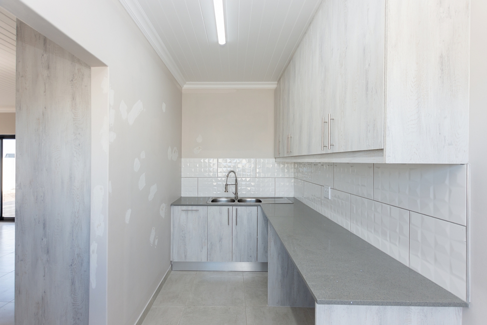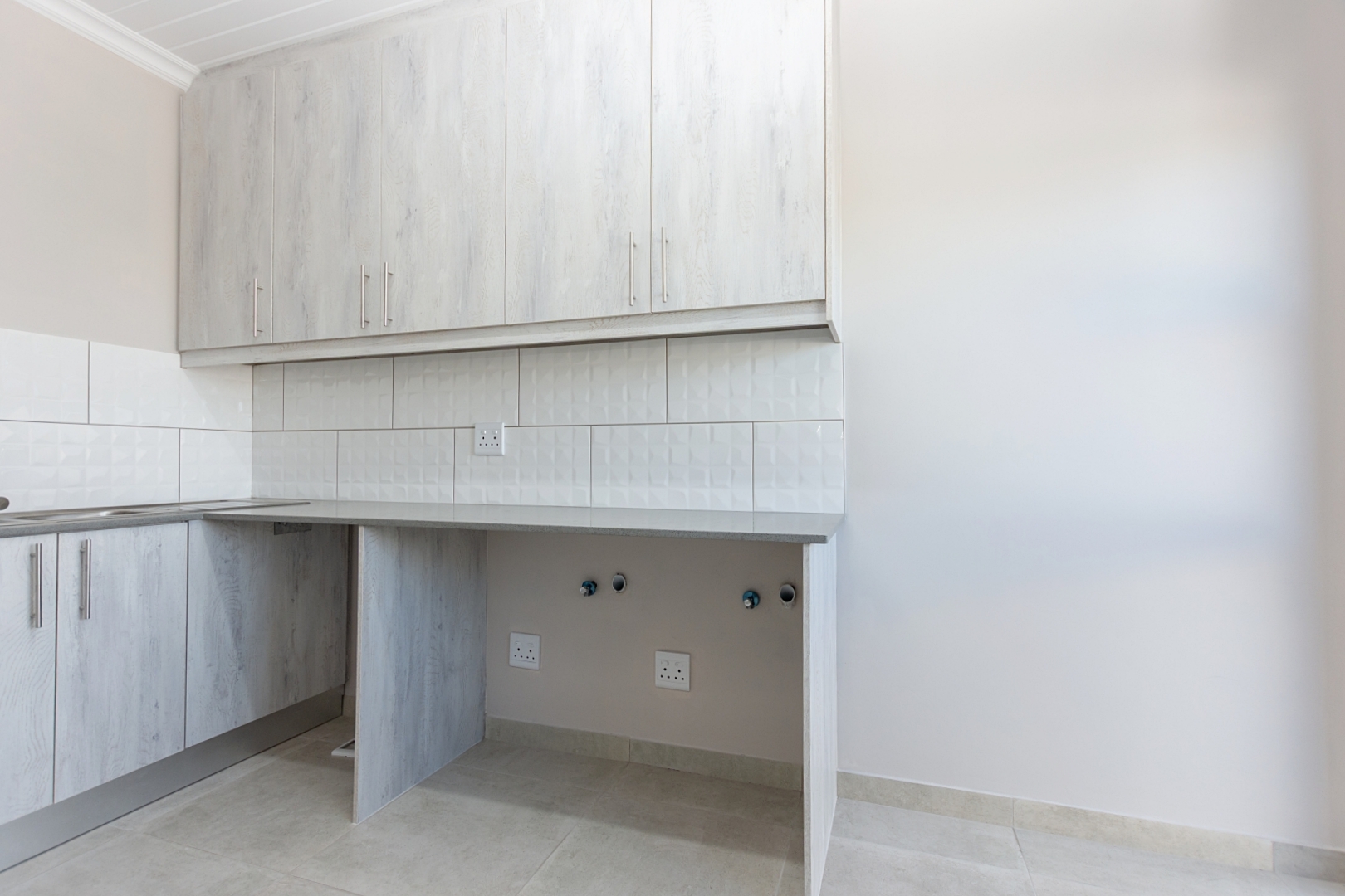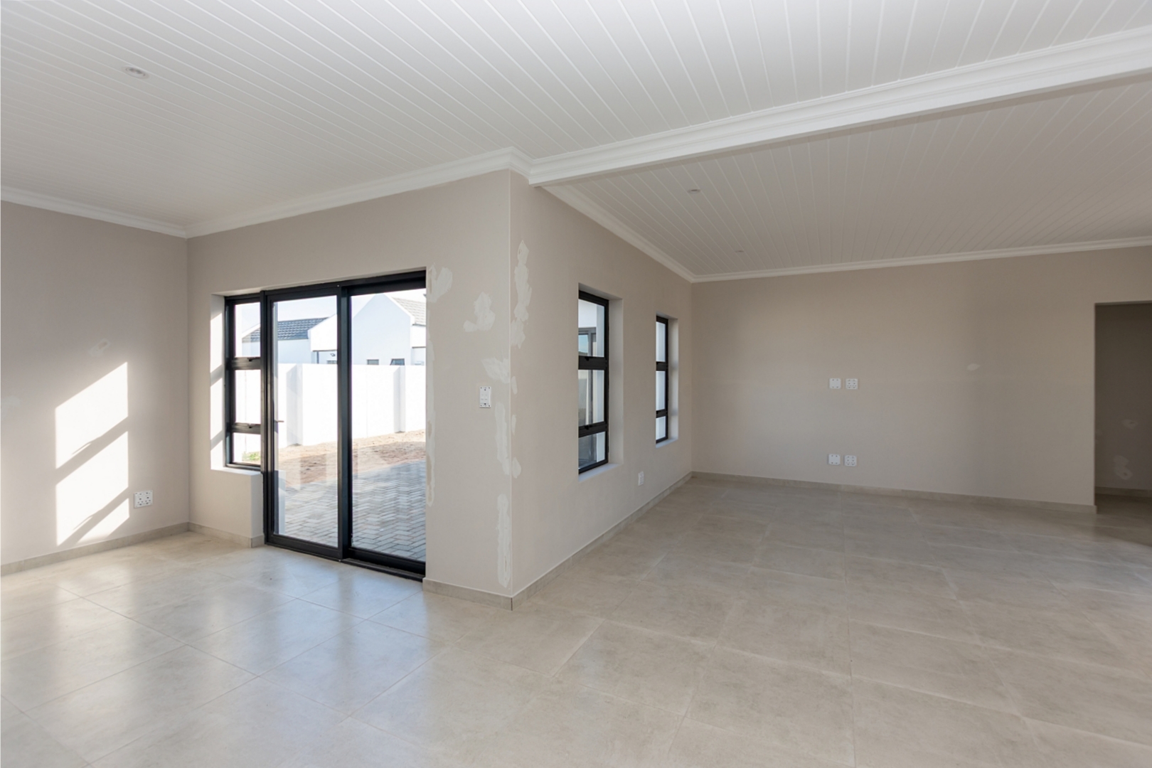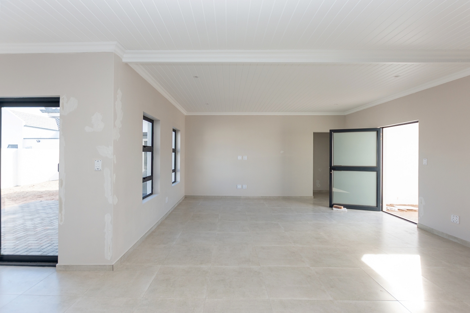 One of the most exciting aspects of this home is the open-plan lounge and kitchen area. It boasts a modern kitchen island and an indoor braai area — ideal for entertaining or relaxing in comfort.