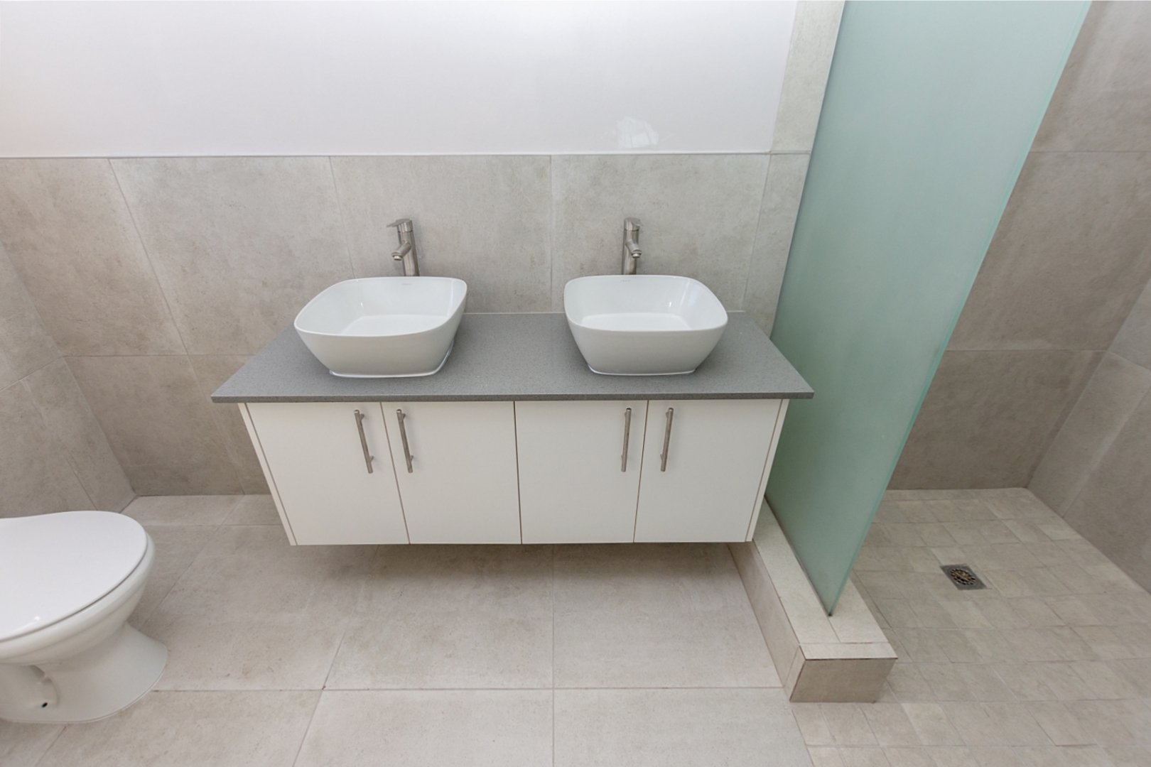 The main bedroom features a luxurious en-suite bathroom, complete with his-and-hers matching basins. A second, full bathroom serves the rest of the home, perfectly suited for family and guests alike.