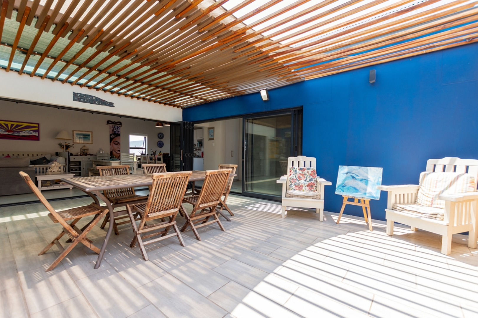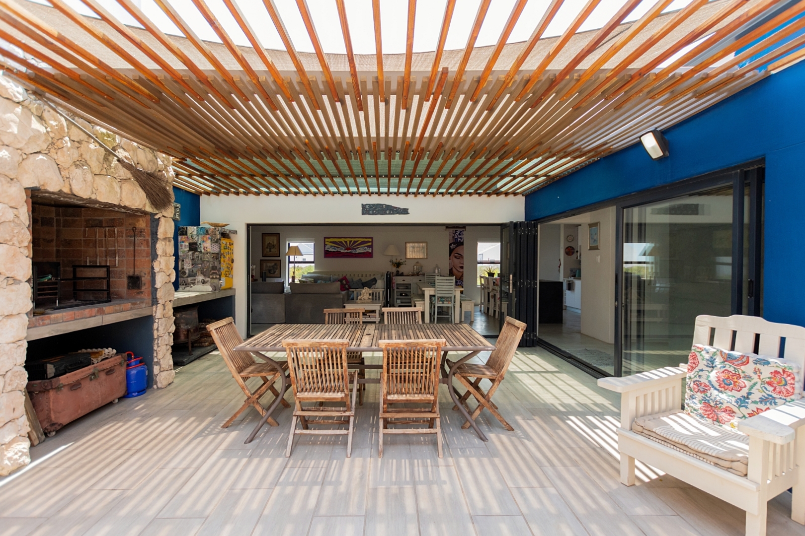 The outdoor entertainment area is truly exceptional, boasting a stylish braai area and a 2 x 4 meter splash pool complete with water features—perfect for relaxed coastal living and entertaining.