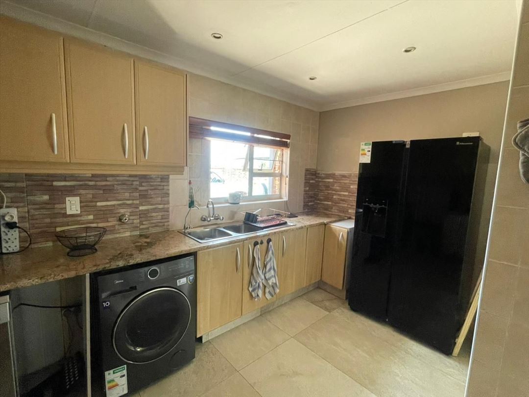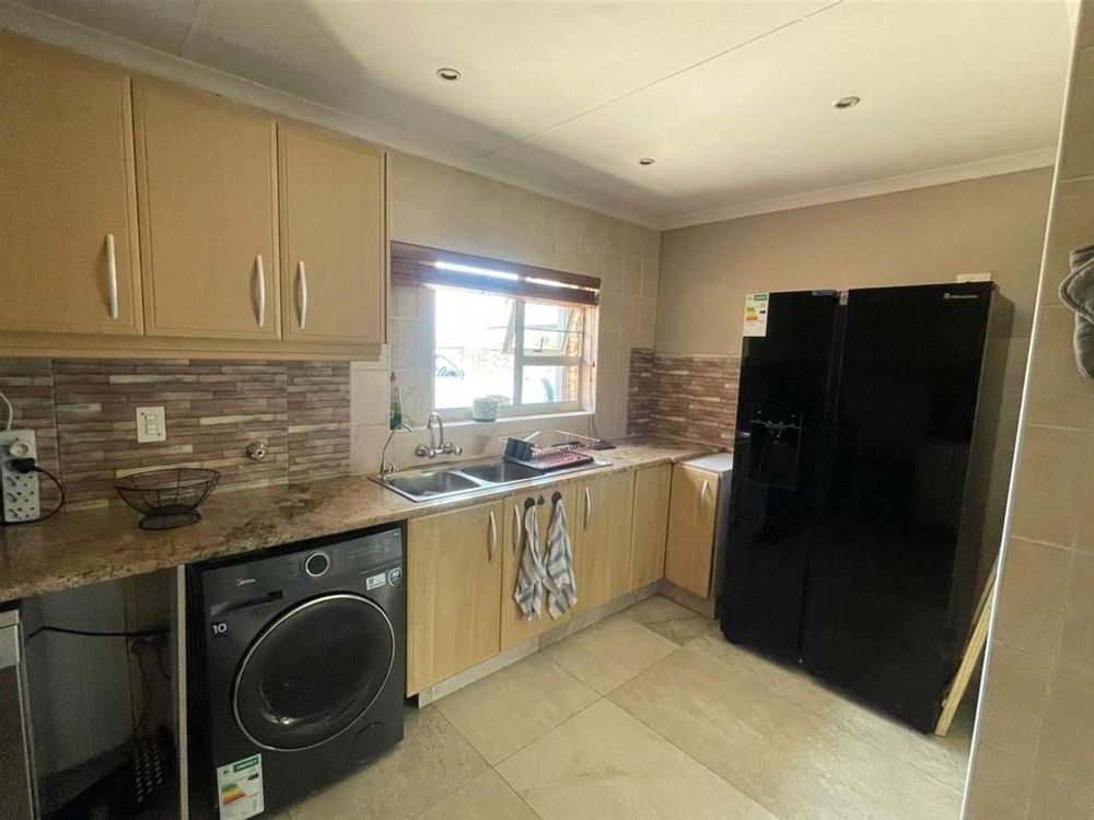 The well-planned kitchen provides ample space for meal preparation, while a private study offers an ideal work-from-home environment. The home features three bedrooms with built-in cupboards, including a stylish en-suite, supported by three modern bathrooms for added convenience. Outdoor living is enhanced by a refreshing pool, creating a great space for relaxation.