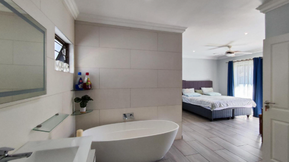 The Separate Flatlet is a fully self-contained home, ideal for extended family or rental income. It offers one comfortable bedroom and a modern bathroom. The open-plan kitchen, complete with a gas stove, connects to a cozy lounge area, creating a private and functional living space. This flatlet adds versatility and value to the home, making it perfect for multi-generational living or as a passive income opportunity.