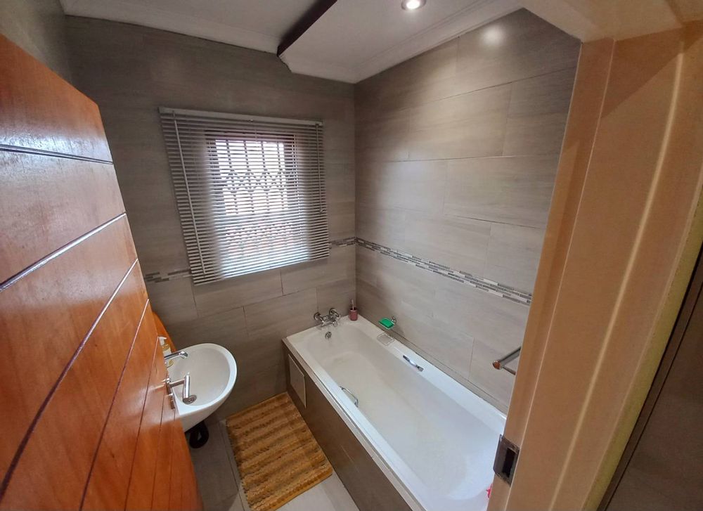 The heart of the home is its open-plan kitchen, which is fitted with modern units that cater to all your culinary needs. The adjoining lounge and dining room offer a welcoming space for relaxation and entertainment, enhanced by beautifully plastered walls finished with gamazine.