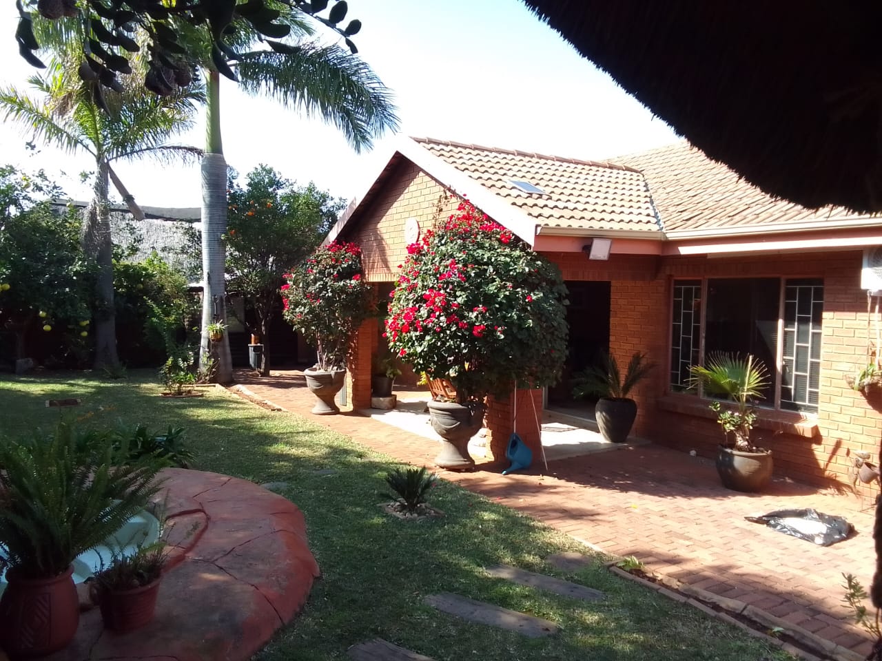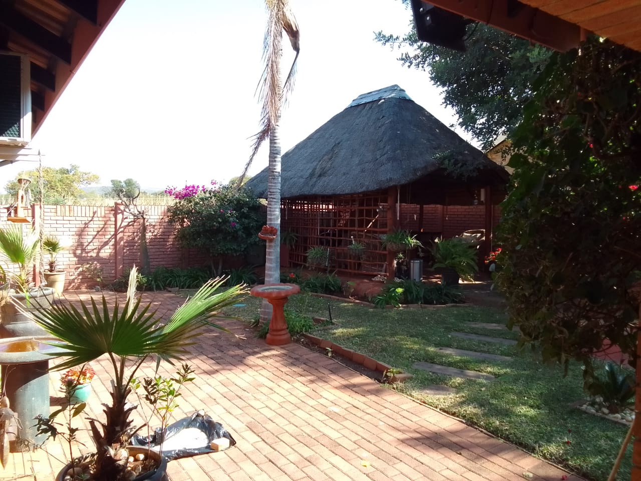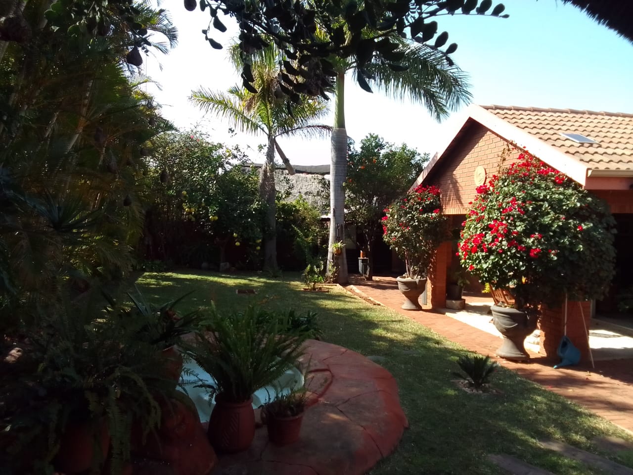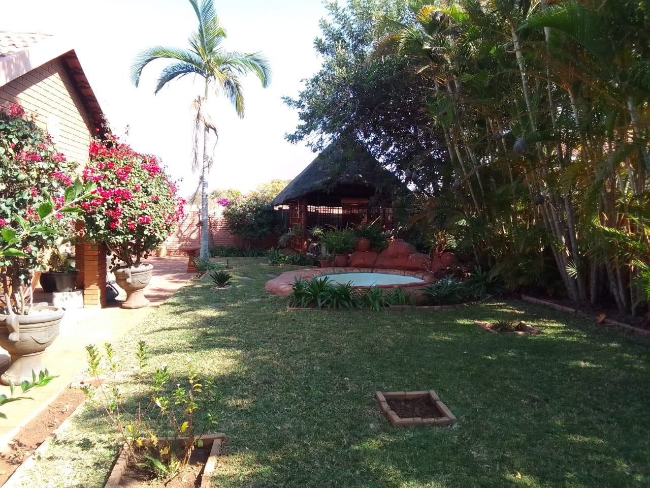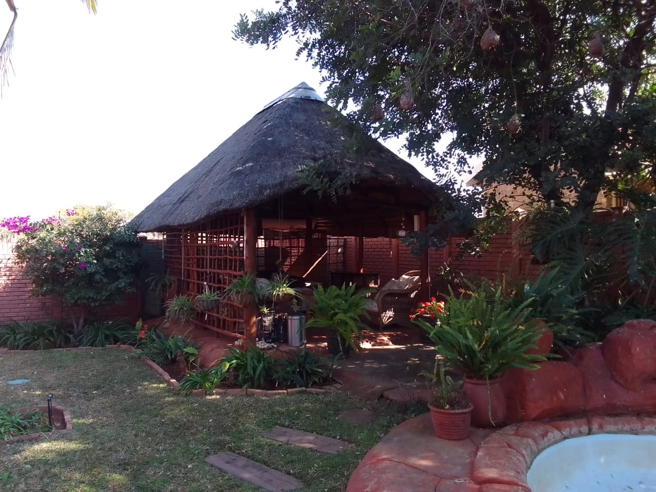 Outdoor Paradise: Step outside to a large veranda overlooking established, immaculate tropical gardens with a full irrigation system. A charming lapa and a unique rock splash pool with a cover and pump create an inviting outdoor entertainment area. A wendy house provides extra storage.