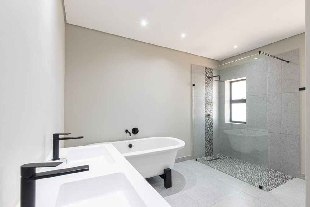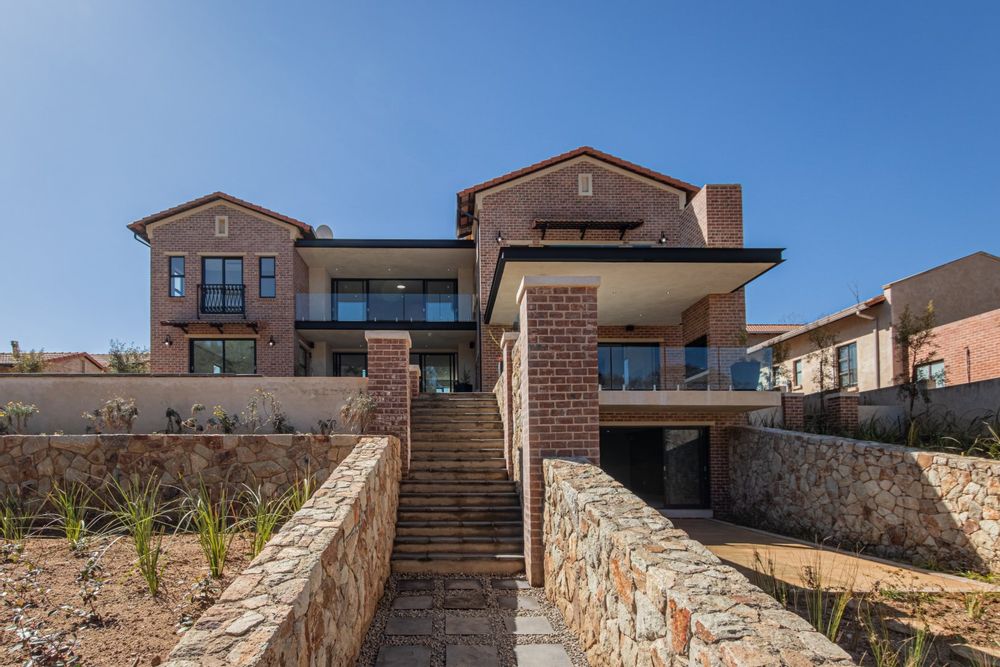This brand new family home offers everything a family requires and more . Set eloquently along a beautiful river , this stunning home offers 5 bedrooms all with ensuite . The home boasts a generous lounge kitchen and dinning room . 3 Garages and servants room .The home also has a state of the art home cinema with surround sound . Back up water and complete solar solutions The landscaped terraced garden frames the stunning 40m swimming pool. This is the house you have been waiting for.