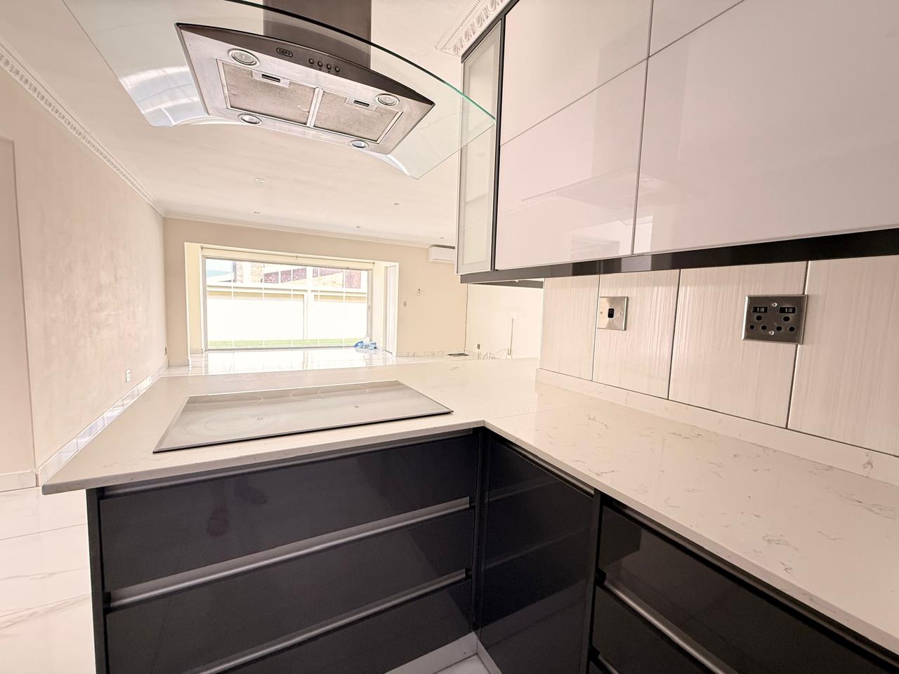 Modern, Open-Plan Kitchen: This chef’s dream kitchen boasts high-end finishes and a sleek, modern color scheme that flows seamlessly throughout the home. Perfect for entertaining or quiet family dinners.