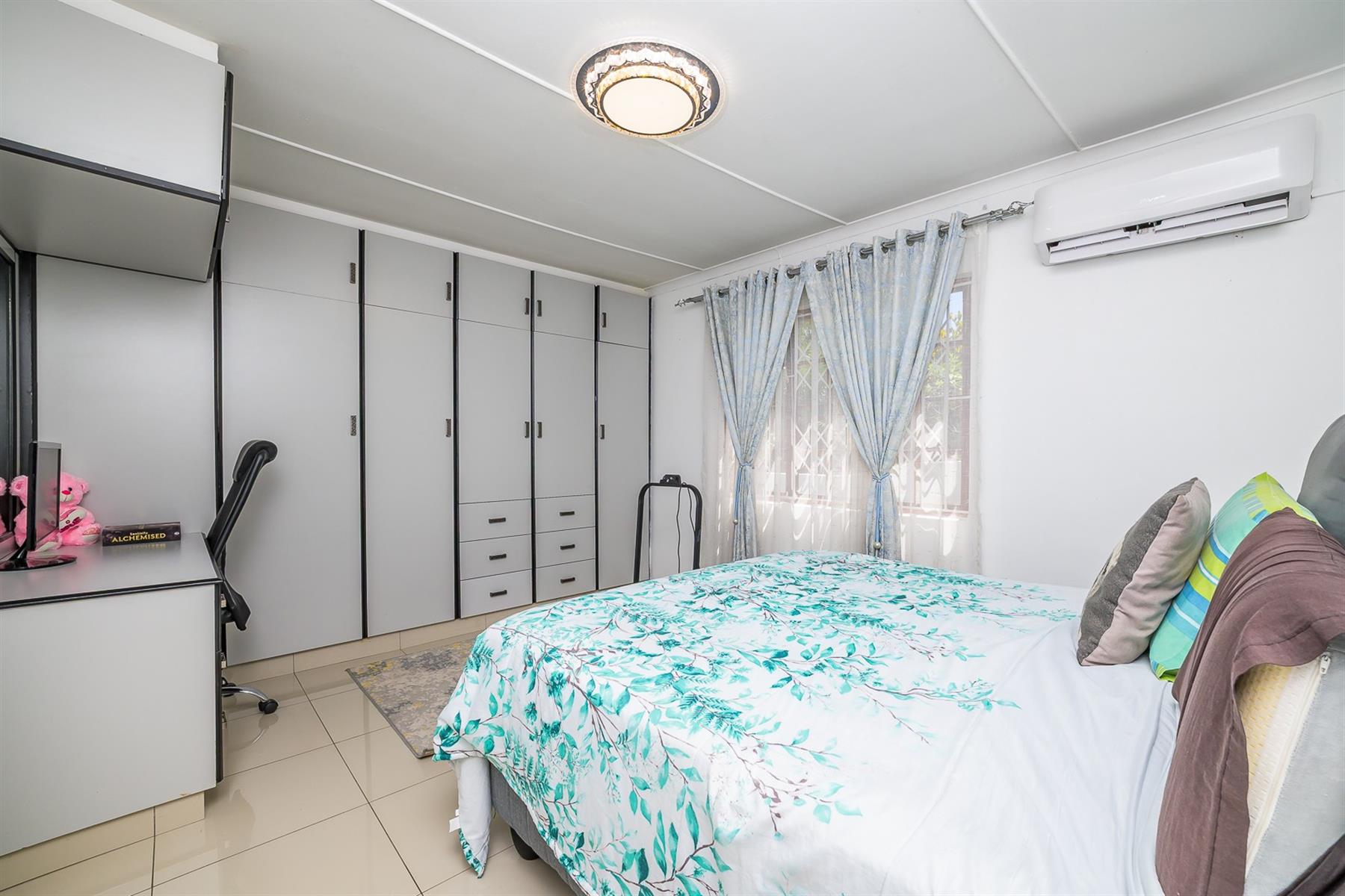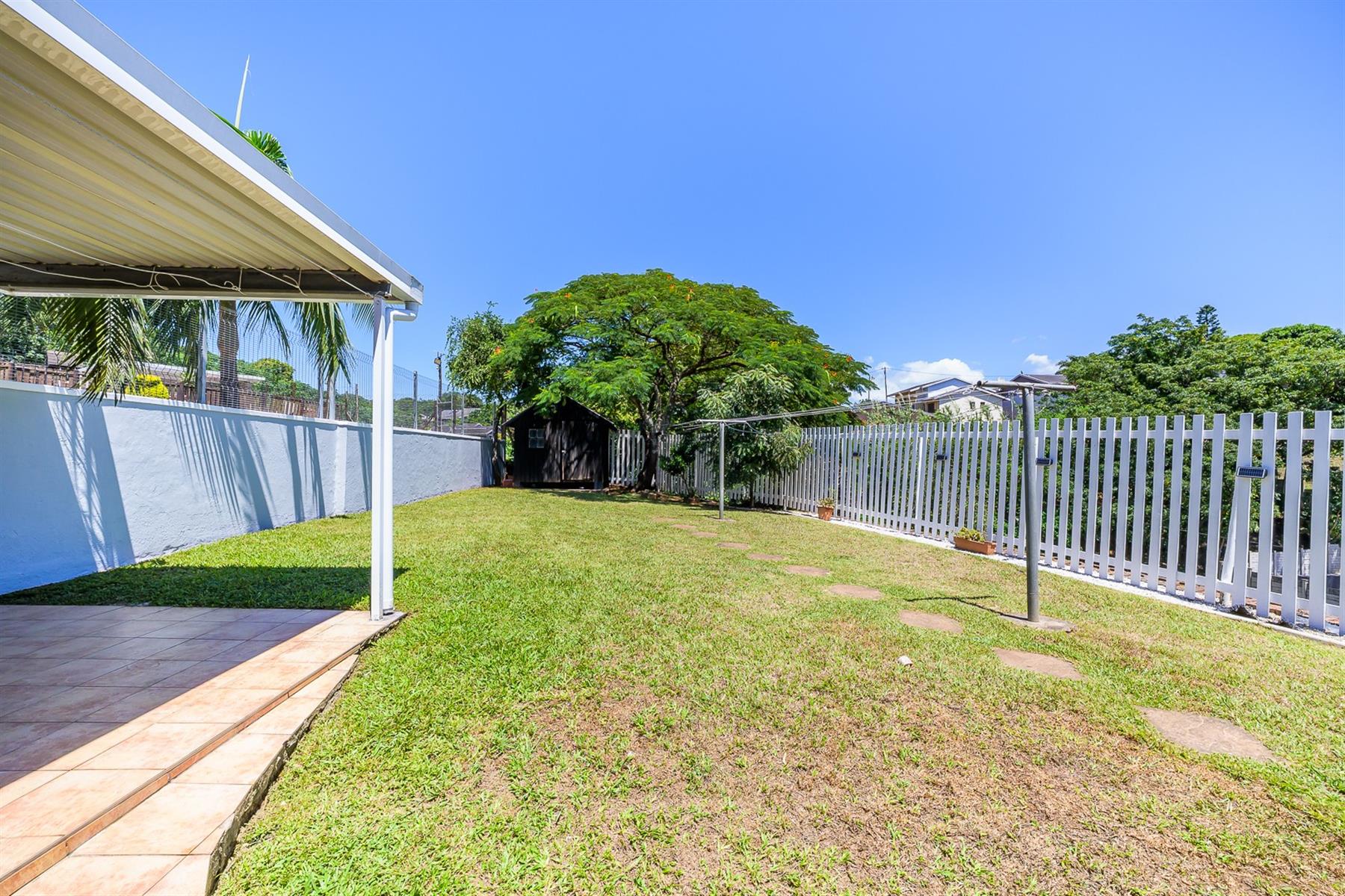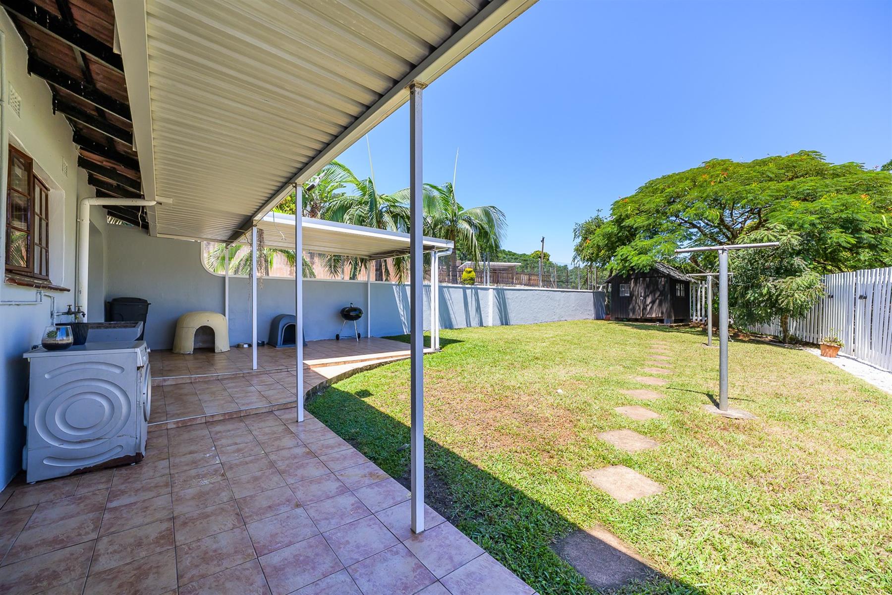 Security is prioritised with gates and bars on all access points, providing peace of mind for the whole family. Step outside into a generously sized, meticulously maintained garden—perfect for relaxation and play. At the back, an awning creates a fantastic entertainment space, ideal for gatherings and outdoor dining. Located in a quiet cul-de-sac with a guard stationed at the entrance, this property offers both privacy and safety in Durban North setting.