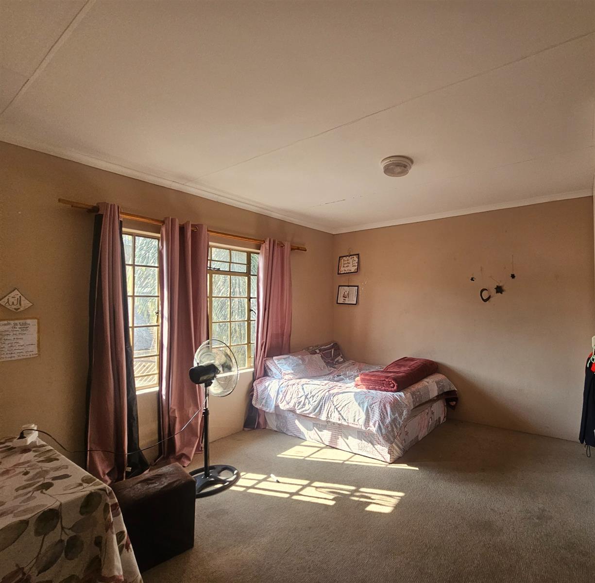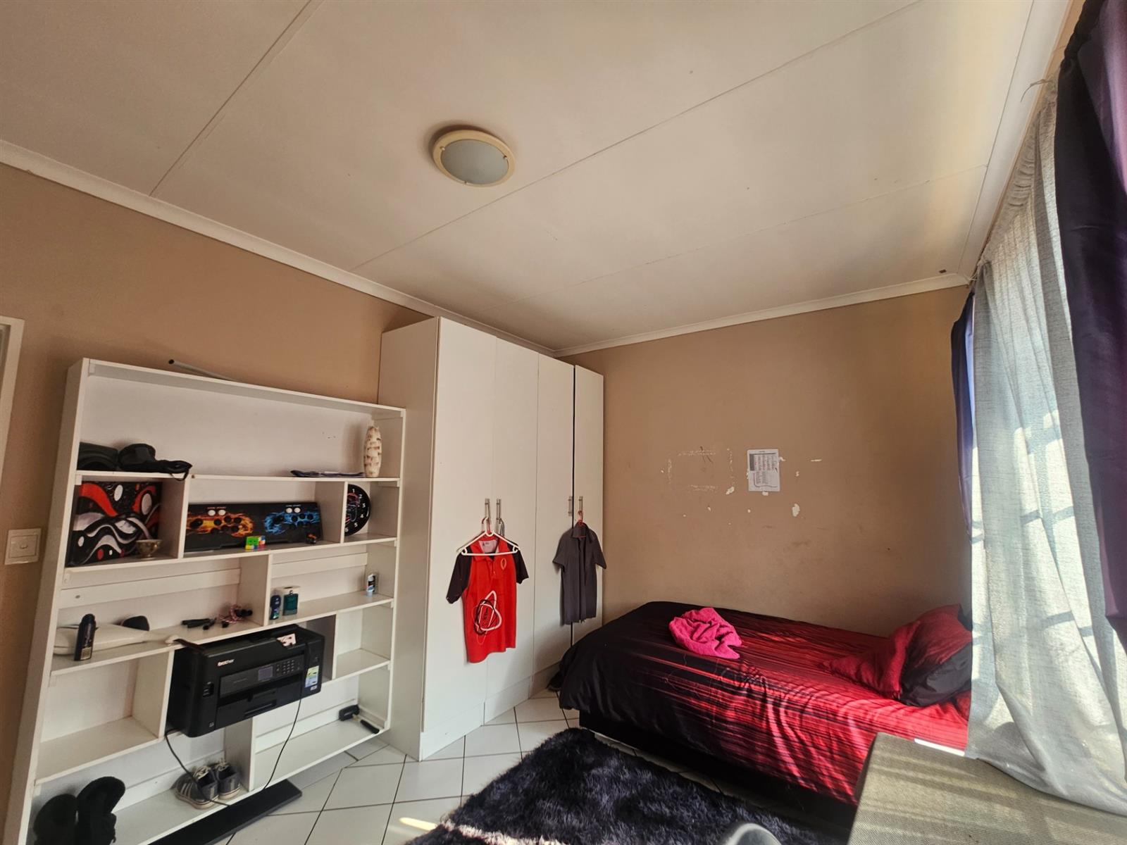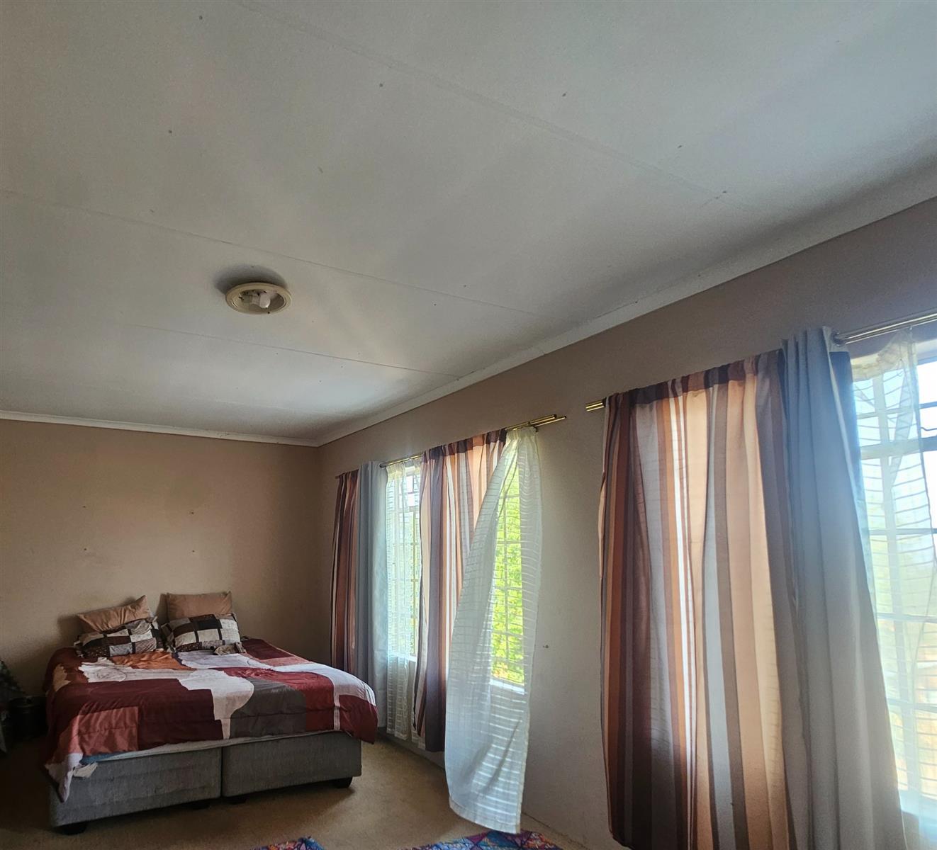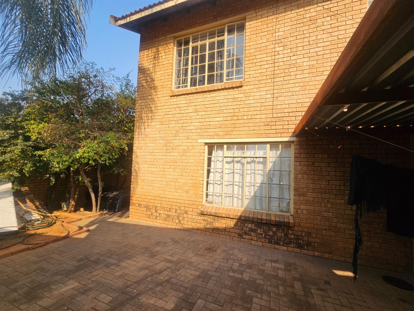 The bedrooms are all fitted with built-in cupboards, providing ample storage space for your belongings. The tiled floors throughout the house add a touch of elegance, while the carpeted bedrooms provide a cozy and comfortable feel. The steel windows and plaster walls give the house a modern and stylish look.